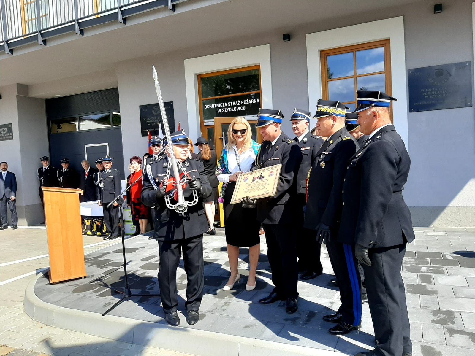 w Szydłowcu wyróżnienie honorowe oraz wyróżnił 5 druhów listem gratulacyjnym. Przekazał również lance gaśniczą, która znajdzie się na wyposażeniu nowego auta.