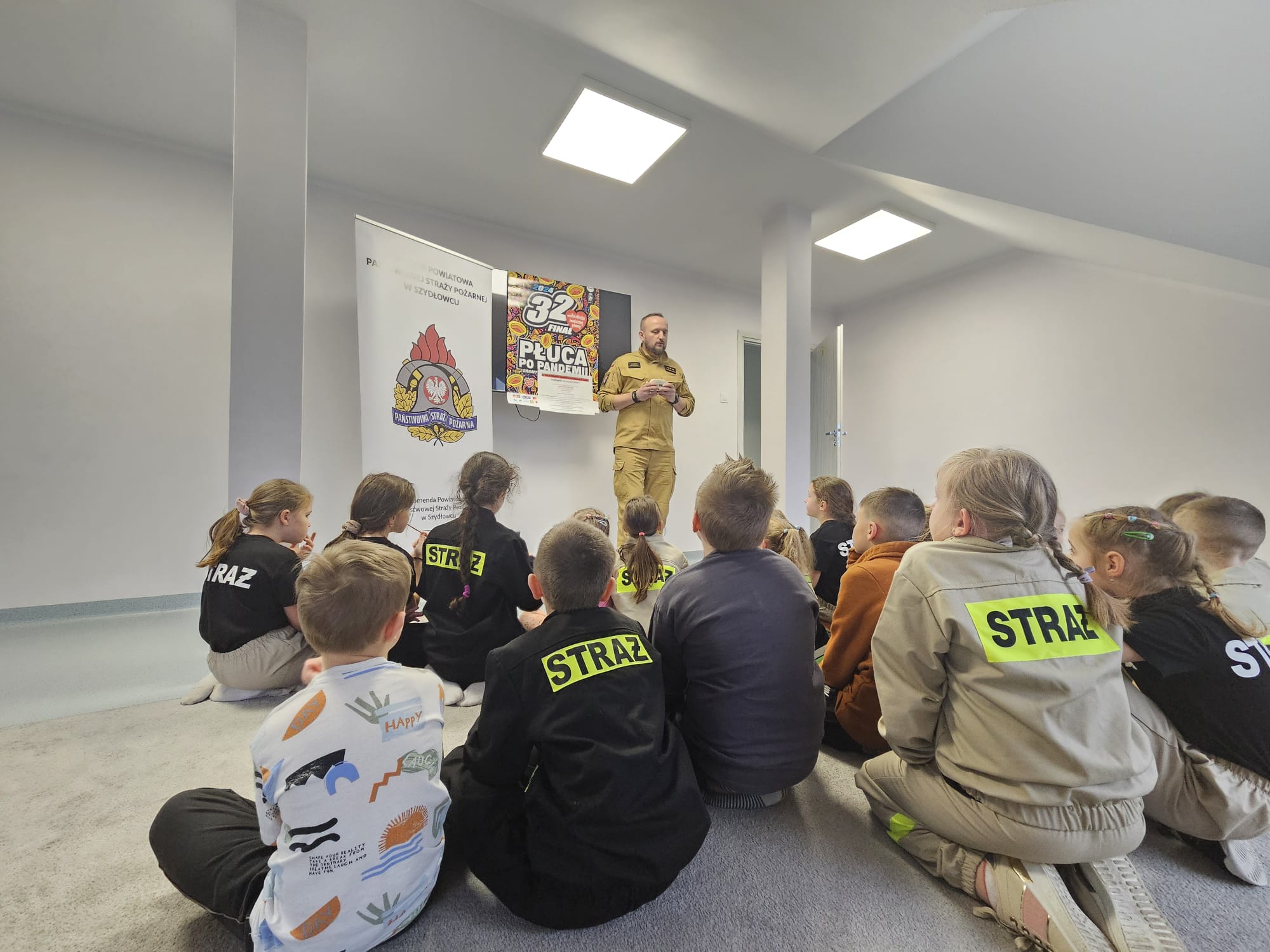 Funkcjonariusze opowiadali o zawodzie strażaka, dzieci dowiedziały się o zasadach bezpiecznego zachowania podczas ferii zimowych. Przestrzegano uczniów przed ślizganiem się na pokrytych lodem zbiornikach wodnych oraz uświadomiono o niebezpieczeństwach wynikających z zabaw na zamarzniętych stawach lub rzekach.