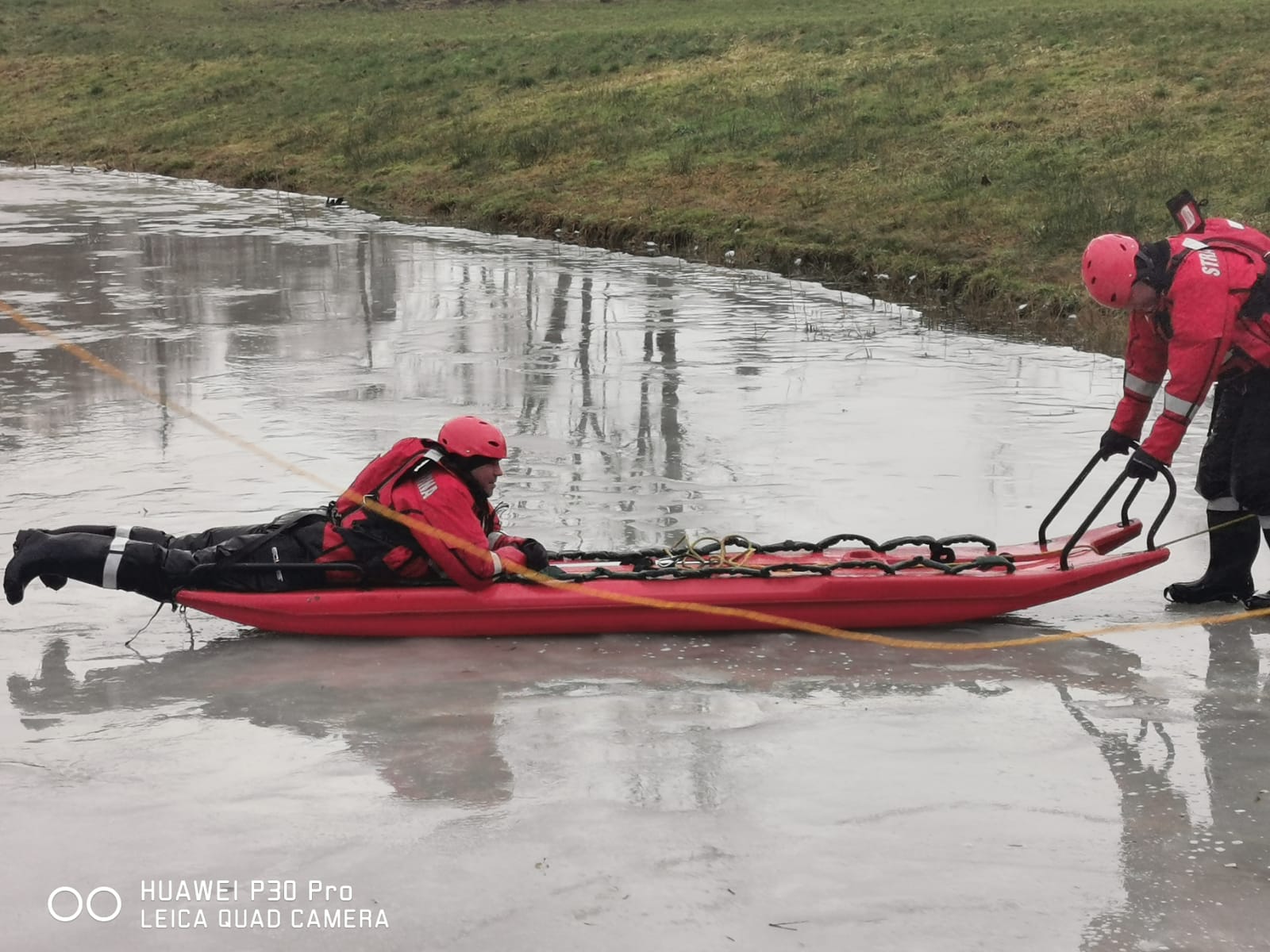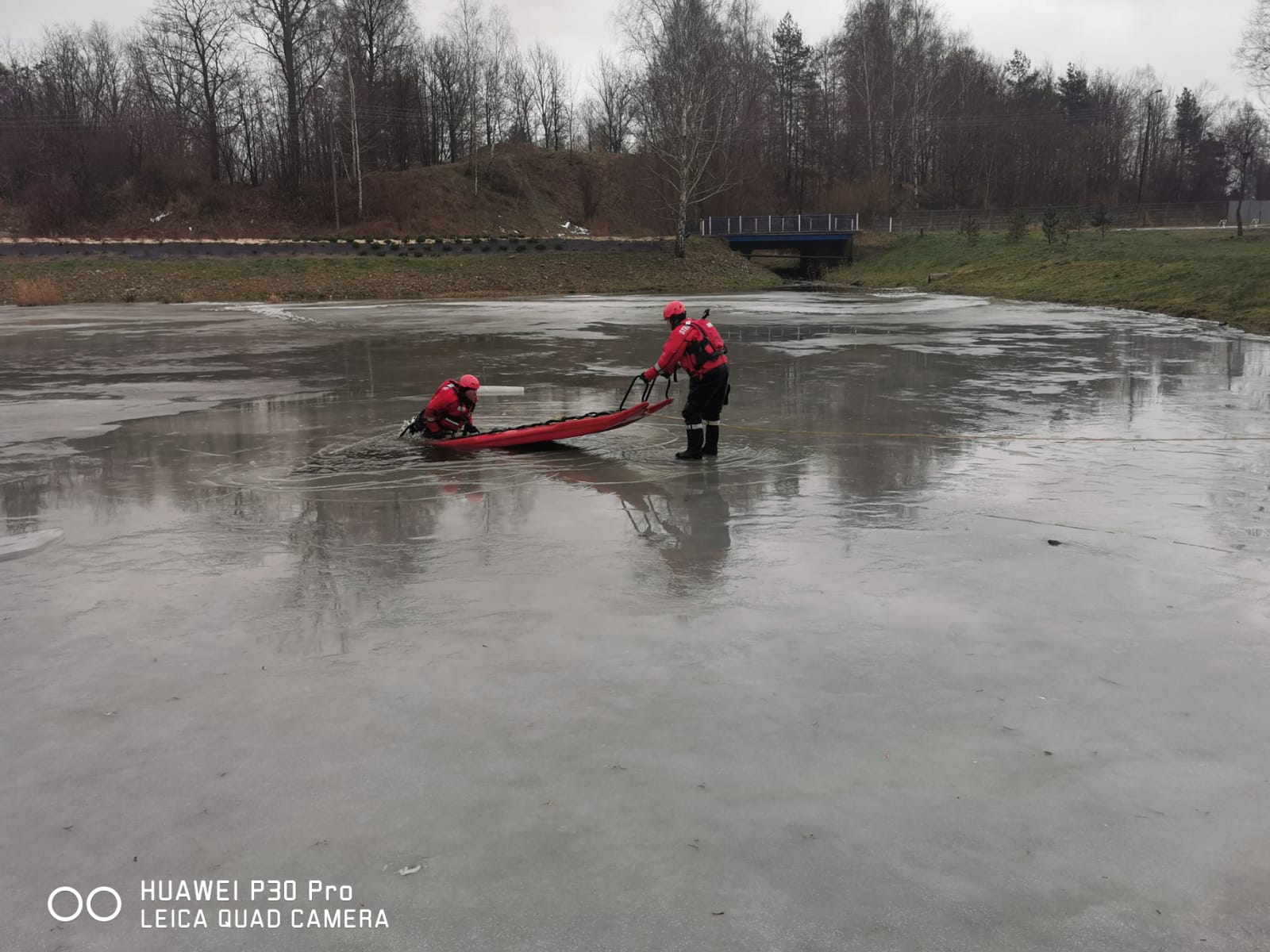 Mając na uwadze zimowy okres i możliwość przebywania dzieci i młodzieży przy zalodzonych akwenach, strażacy z Komendy Powiatowej PSP w Szydłowcu sprawdzili swoją gotowość do podejmowania działań ratowniczych na lodzie.