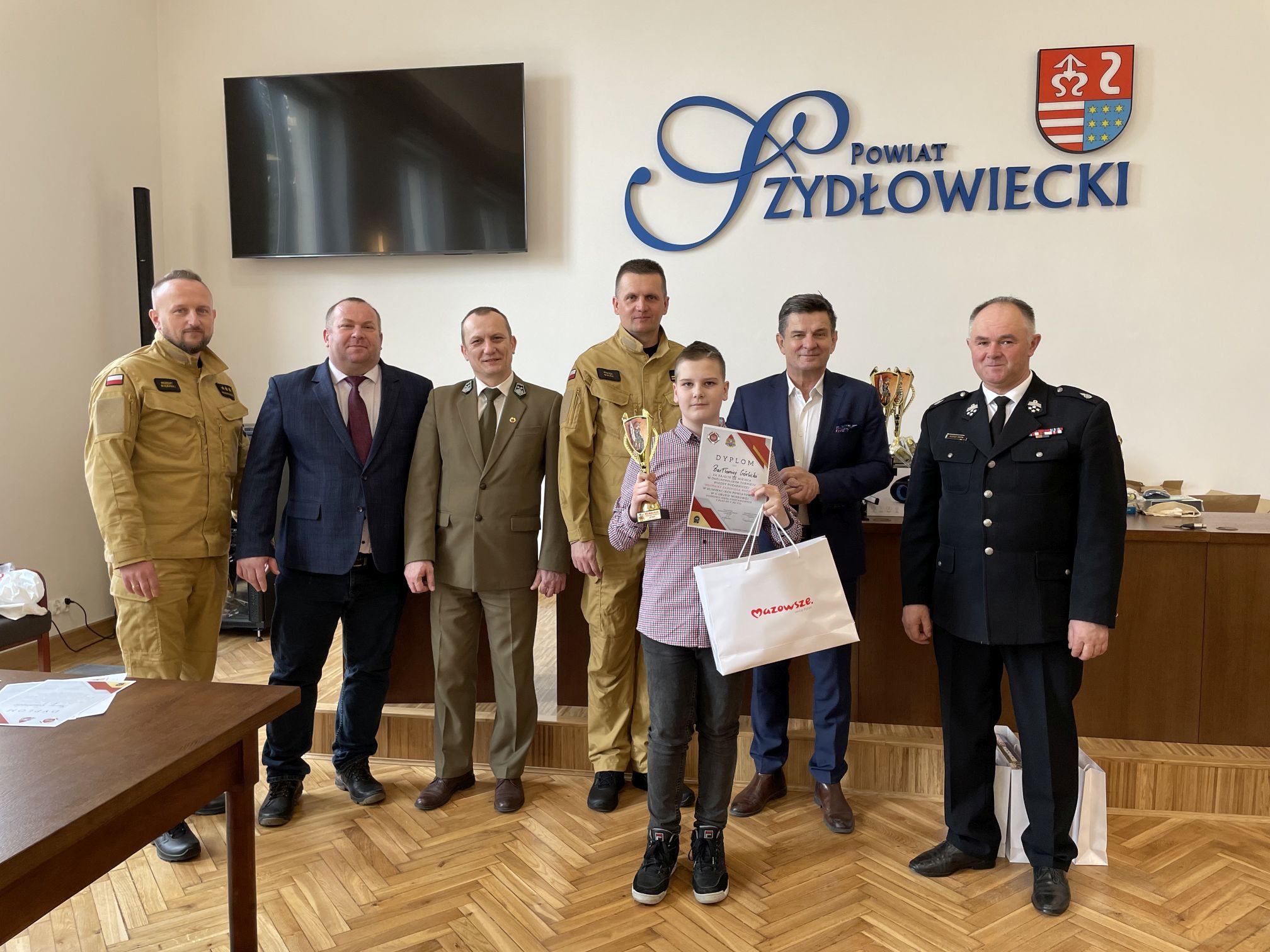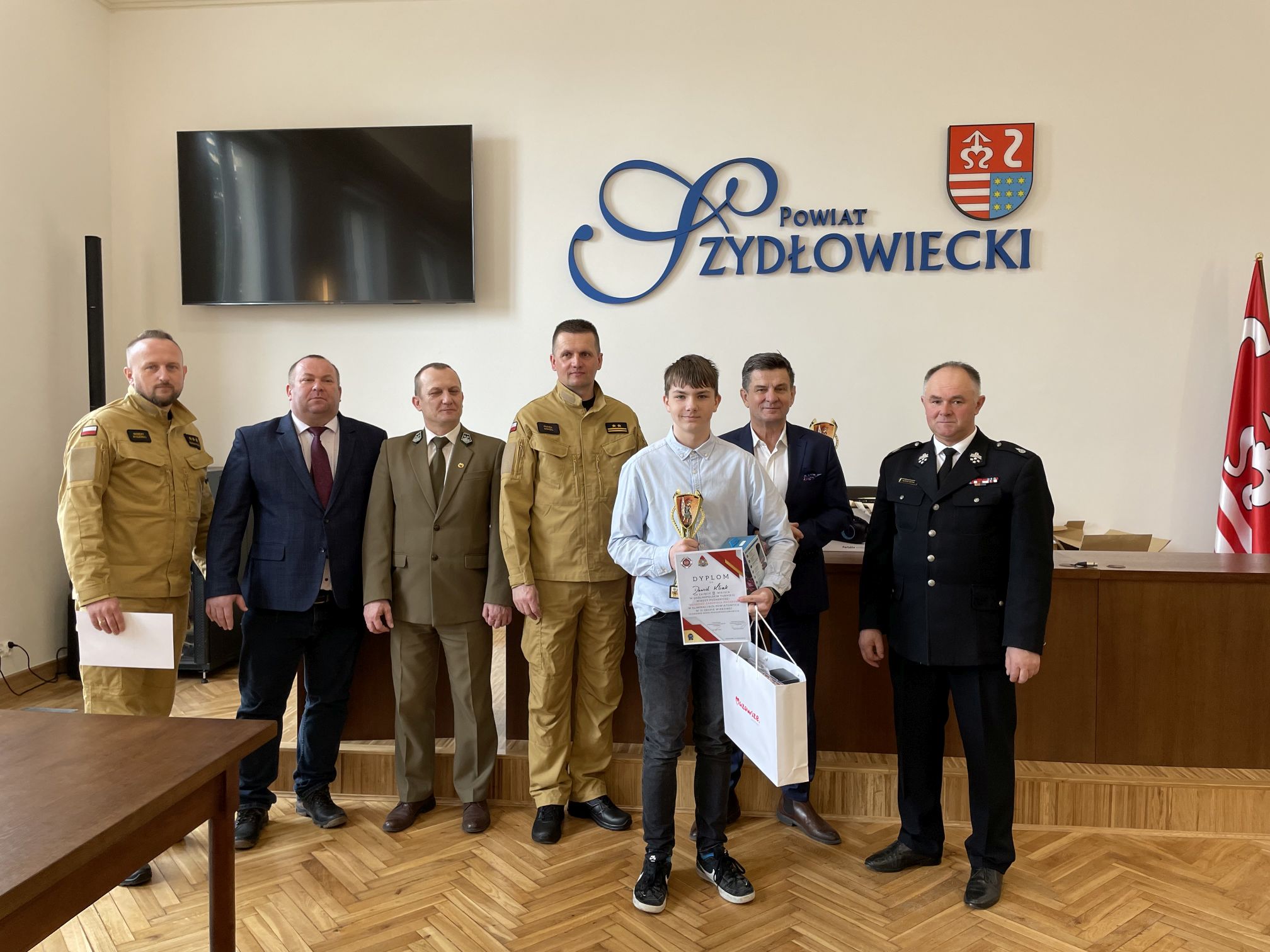 Wszyscy uczestnicy eliminacji powiatowych do Ogólnopolskiego Turnieju Wiedzy Pożarniczej otrzymali upominki, statuetki oraz dyplomy za zajęte miejsca, które wręczyli: Starosta Powiatu Szydłowieckiego Pan Włodzimierz Górlicki, Przedstawiciel Regionalnej Dyrekcji Lasów Państwowych w Radomiu Pan Karol Podsiadło, Komendant Powiatowy Państwowej Straży Pożarnej bryg. Paweł Sokół, Z-ca Komendanta Powiatowego Państwowej Straży Pożarnej w Szydłowcu st. bryg. Paweł Górski, Prezes Zarządu Powiatowego Ochotniczych Straży Pożarnych dh Aleksy Sasin, Radny powiatu szydłowieckiego Pan Krzysztof Rejczak.