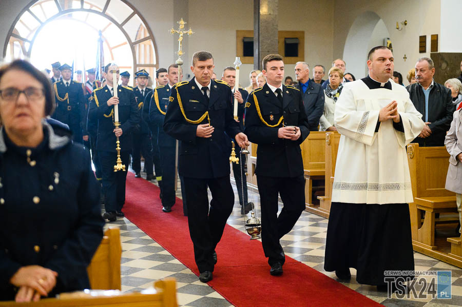 Po godzinie 12 formacje pocztów sztandarowych oraz pododdziały strażaków PSP i OSP przemaszerowały pod kaplicę z obrazem Matki Bożej Ostrobramskiej, gdzie zostały powitane przez kapelana skarżyskich strażaków księdza prałata Jerzego Karbownika. Następnie strażacy przemaszerowali na uroczystą mszę świętą. Po otrzymanym błogosławieństwie kończącym nabożeństwo, pielgrzymujący strażacy udali się na pobliski parking, na którym księża dokonali poświęcenia wozów strażackich.