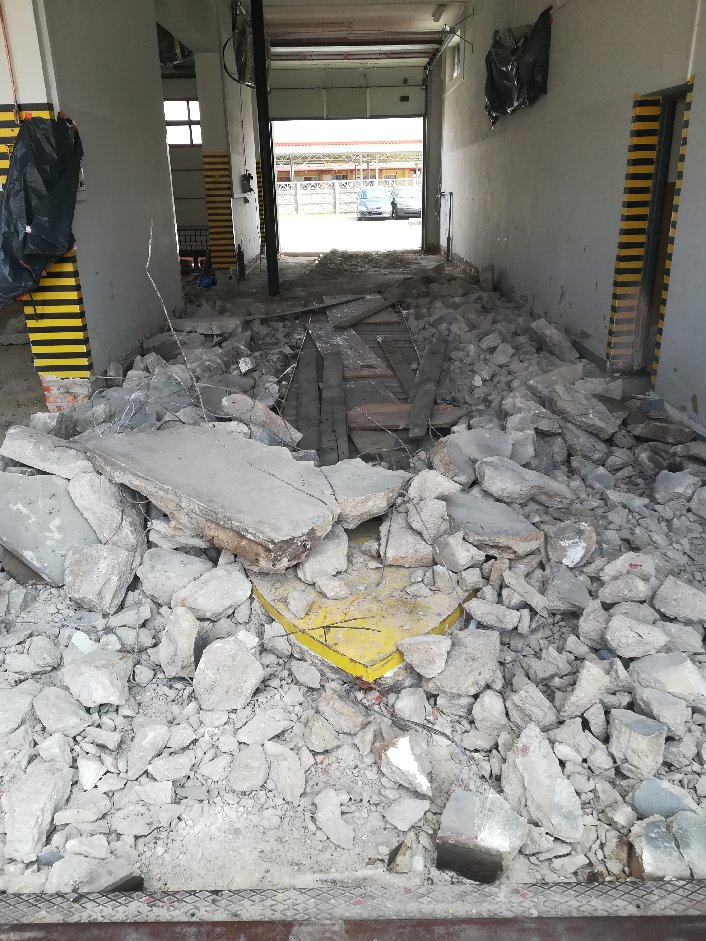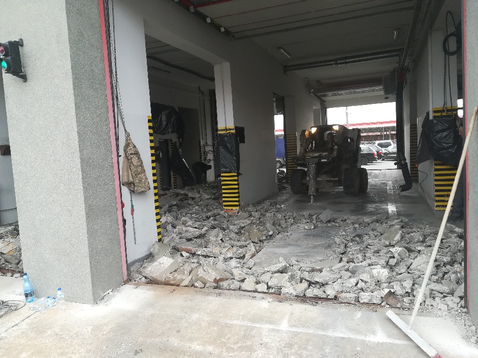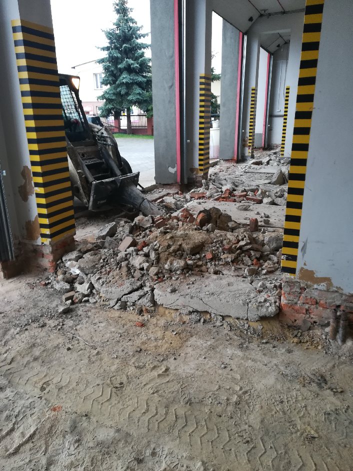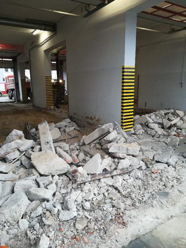 W dniu 09.04.2021 r. podpisana została umowa z wykonawcą na remont posadzki garażu w Komendzie Powiatowej PSP Szydłowcu. Od dnia 12.04.2021 r. rozpoczęły się prace rozbiórkowe starej posadzki.
