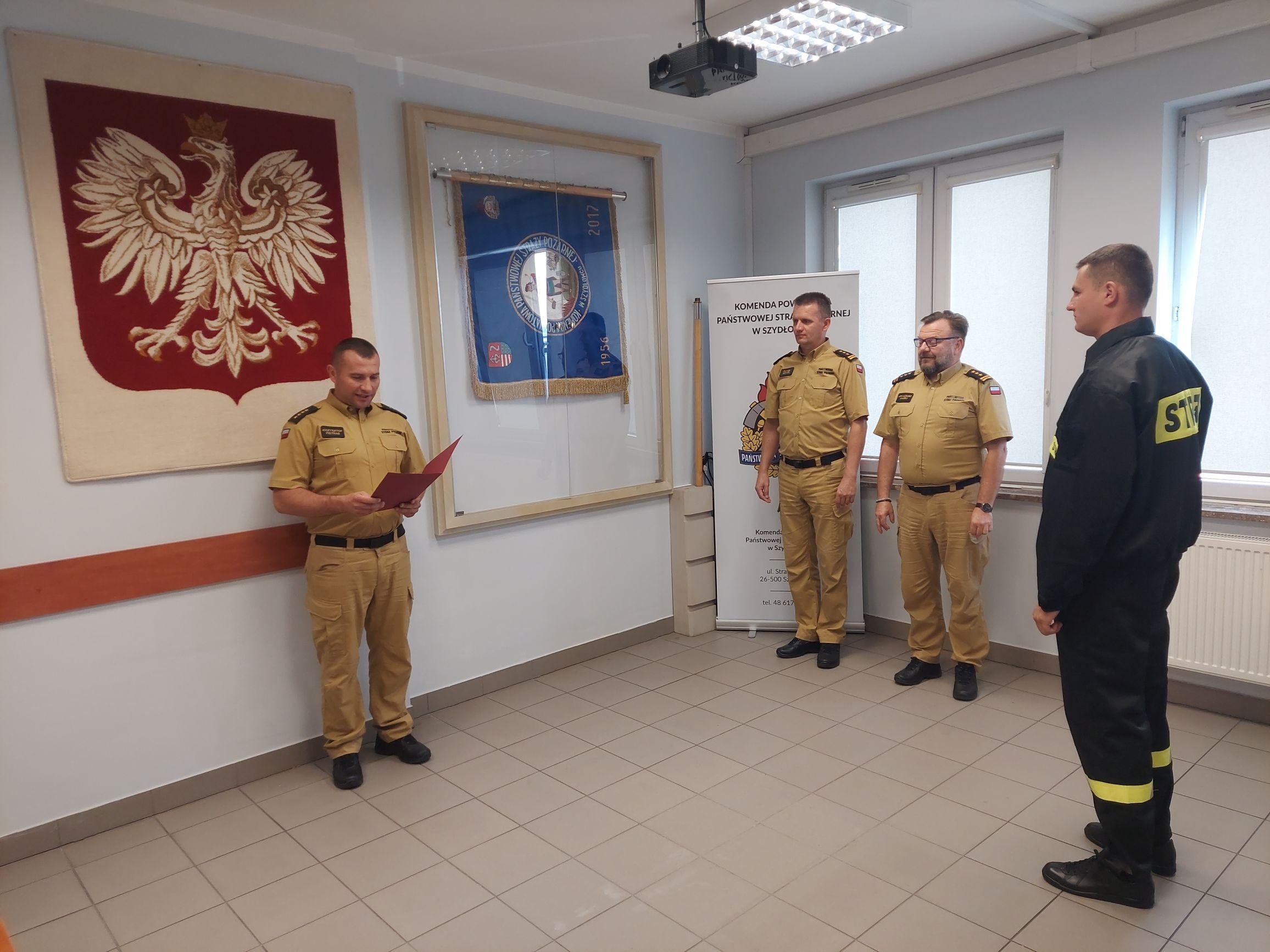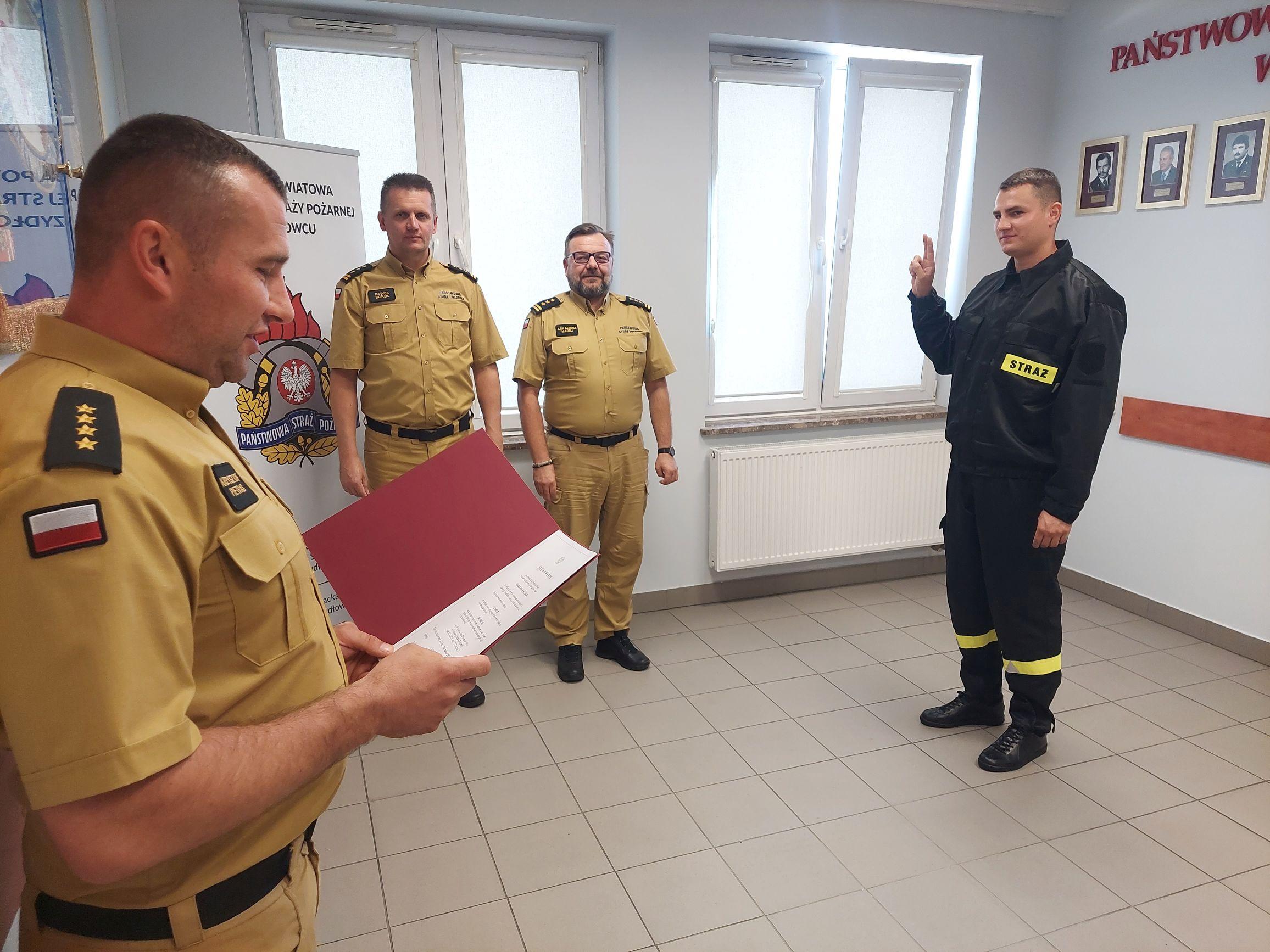 Nowo przyjętemu do służby strażakowi gratulujemy i życzymy samych sukcesów w życiu zawodowym.