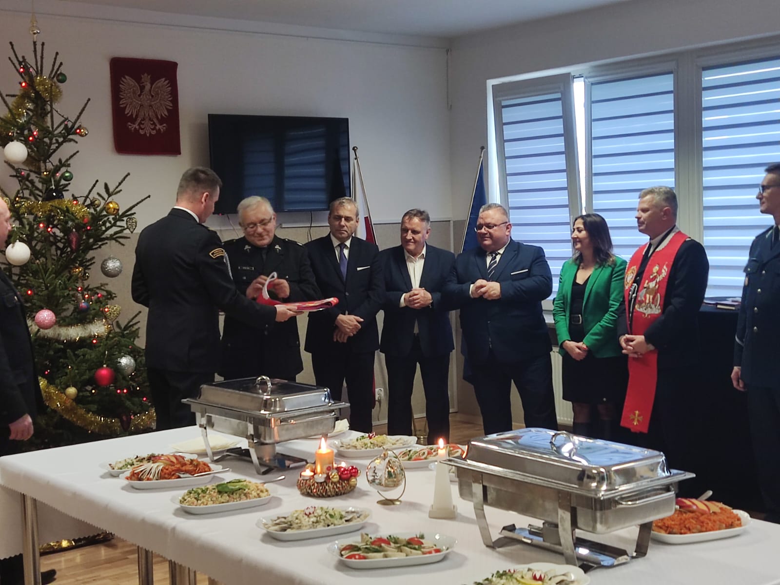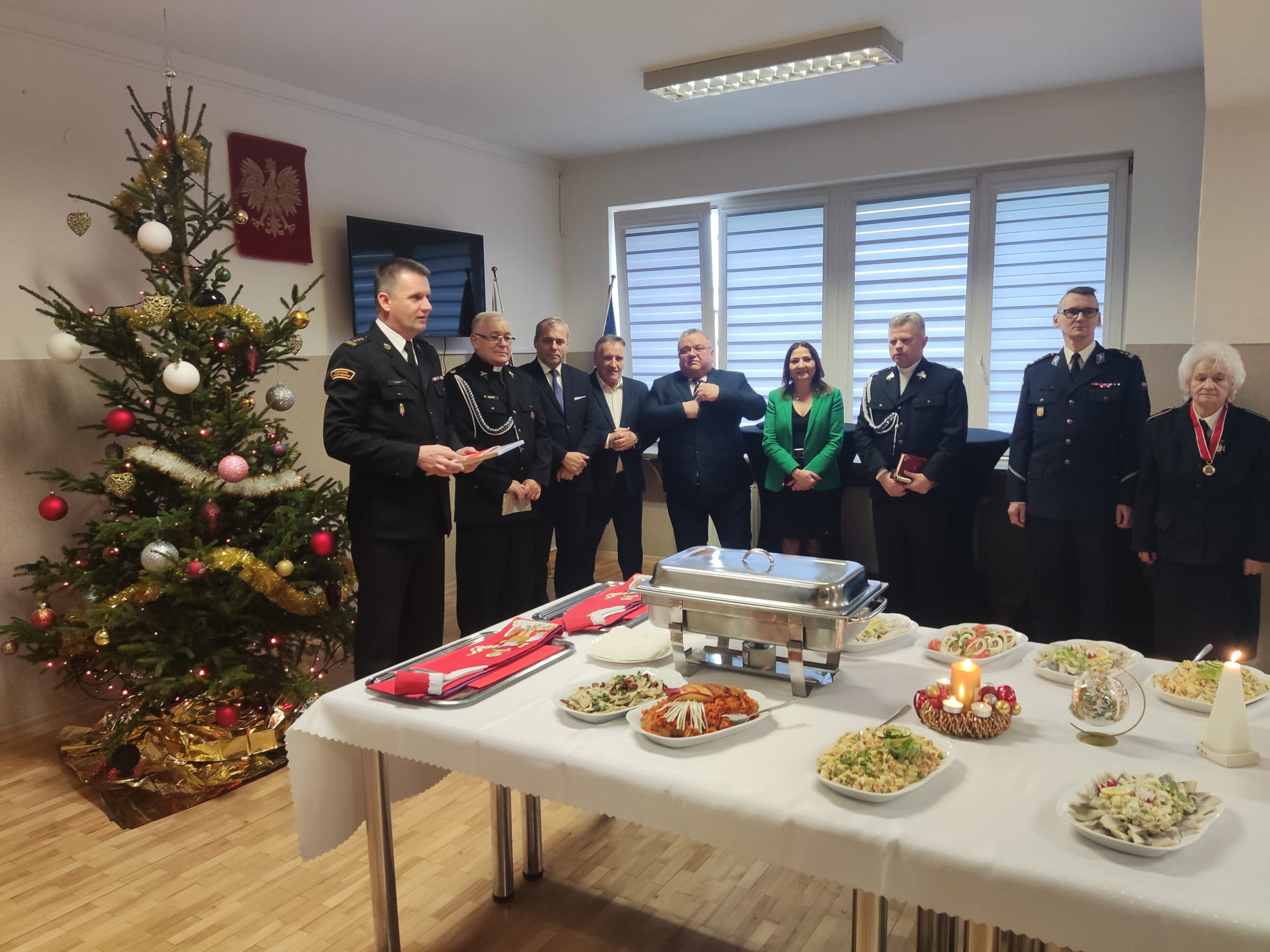 W dniu 21.12.2023 r. w Komendzie Powiatowej Państwowej Straży Pożarnej w Szydłowcu odbyło się spotkanie opłatkowe z okazji nadchodzących świąt Bożego Narodzenia. Komendant Powiatowy st. bryg. Paweł Sokół życzył wszystkim zgromadzonym zdrowych i spędzonych w rodzinnej atmosferze Świąt Bożego Narodzenia. Kapelan gminny strażaków ks. Artur Fura przekazał Słowo Boże i pobłogosławił uczestników spotkania. Spotkanie było okazją do przekazania funkcji Kapelana Powiatowego Strażaków dziekanowi dekanatu szydłowieckiego ks. Markowi Kucharskiemu.