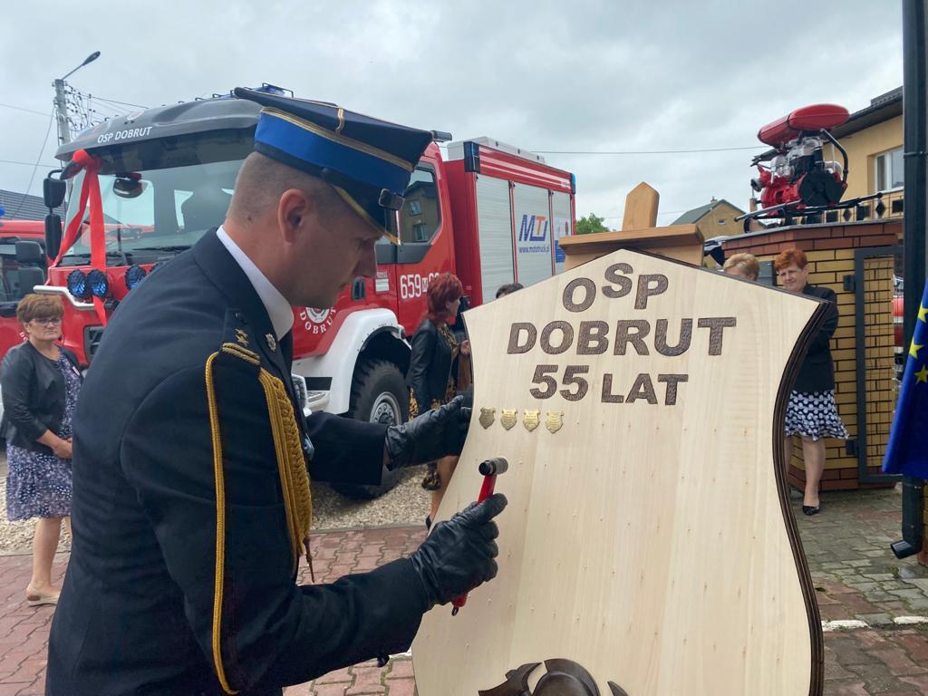 Uroczysty apel z okazji 55-lecia Ochotniczej Straży Pożarnej w Dobrucie oraz przekazani i poświęcenia nowego samochodu ratowniczo-gaśniczego