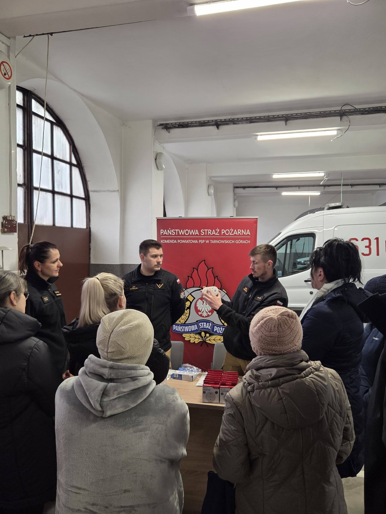 W dniu 5 lutego 2026 roku funkcjonariusze z Komendy Powiatowej Państwowej Straży Pożarnej w Tarnowskich Górach w ramach akcji "Czadowa Straż" rozdawali darmowe czujki tlenku węgla (czadu) oraz dymu a także przeprowadzali instruktaż, jak je właściwie zamontować i użytkować.