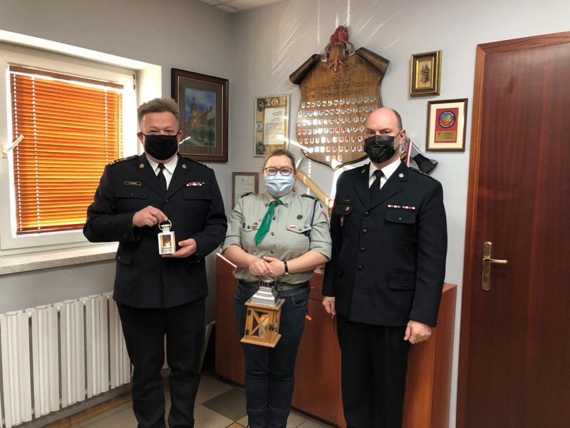 22 grudnia 2021 r. harcerze ZHP odwiedzili Komendę Powiatową PSP w Tarnowskich Górach, aby podzielić się Betlejemskim Światłem Pokoju, którego hasło towarzyszące w 2021 r. brzmi „ŚWIATŁO NADZIEI”. Betlejemskie Światło Pokoju to coroczna skautowa i harcerska akcja przekazywania przed Świętami Bożego Narodzenia symbolicznego ognia, zapalonego w Grocie Narodzenia Chrystusa w Betlejem. Dar przyjął Komendant Powiatowy PSP st. bryg. Piotr Krężel wraz z swoim zastępcą st. bryg. Adamem Lachowicz.