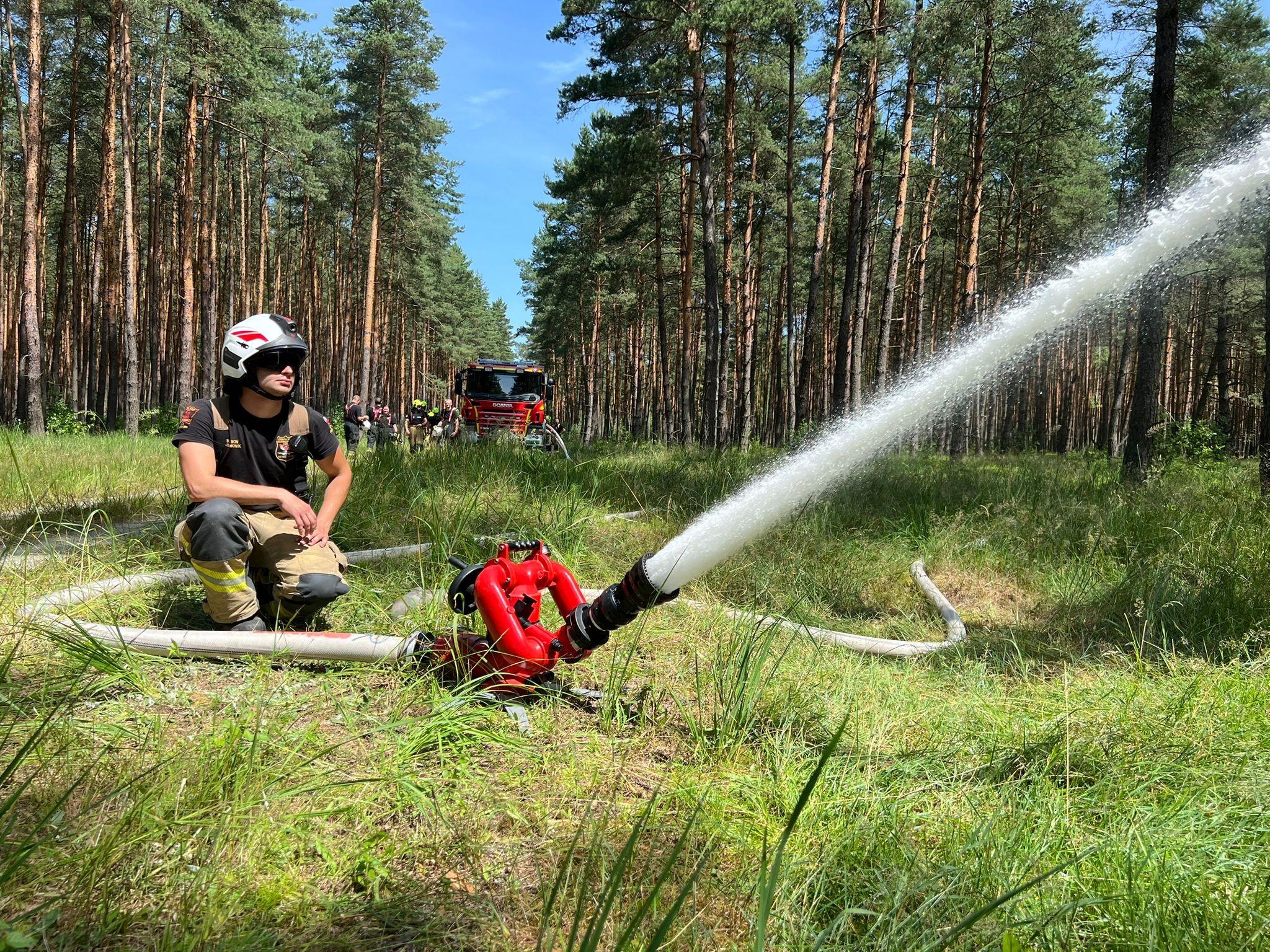 Podczas ćwiczeń zbudowano magistralę wodną z dwóch linii wężowych W-75. Celem było przetłaczanie wody na odległość 1100 m i uzyskanie efektu wydajności 2000l/min przy ciśnieniu 5 bar.