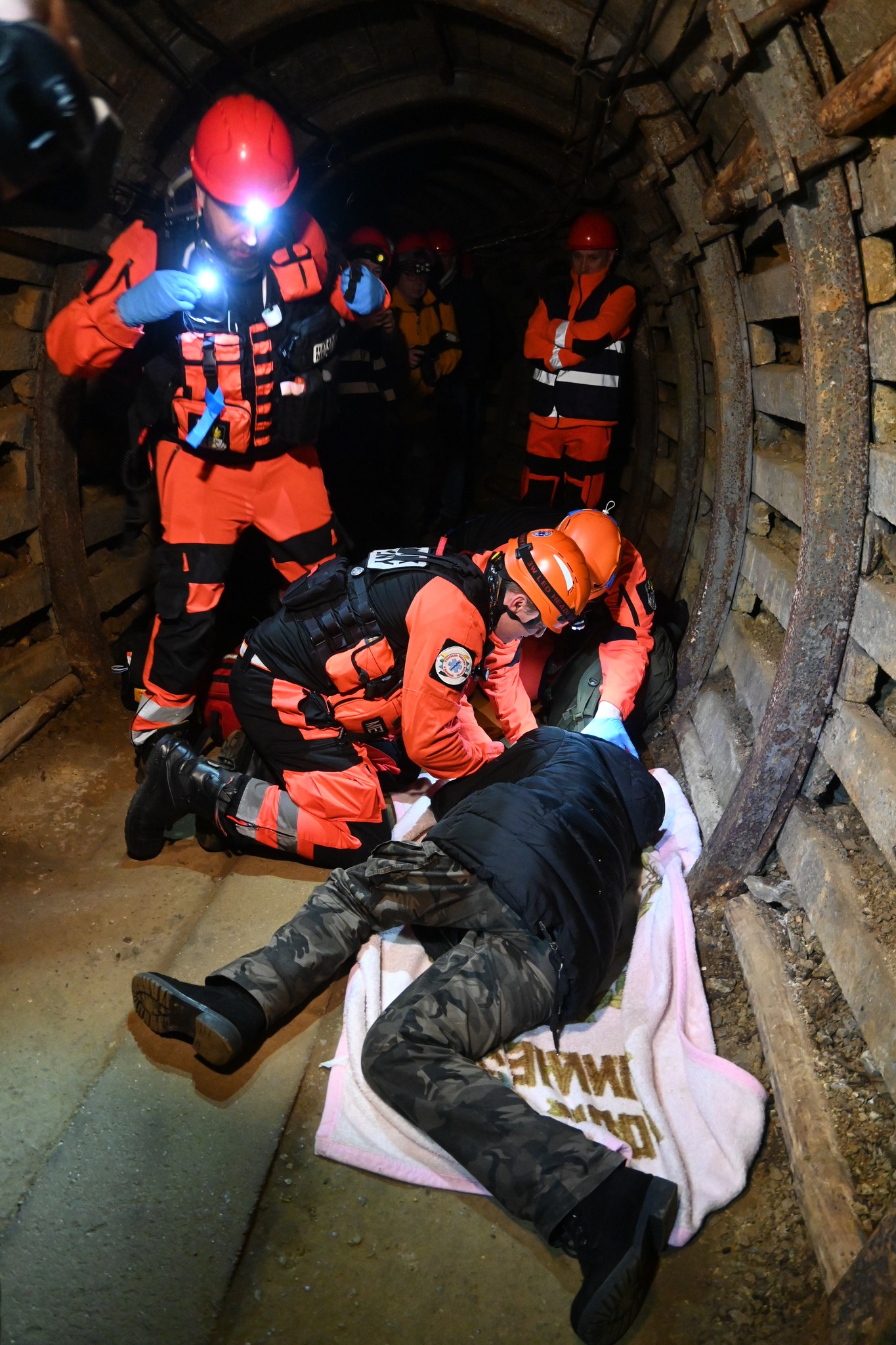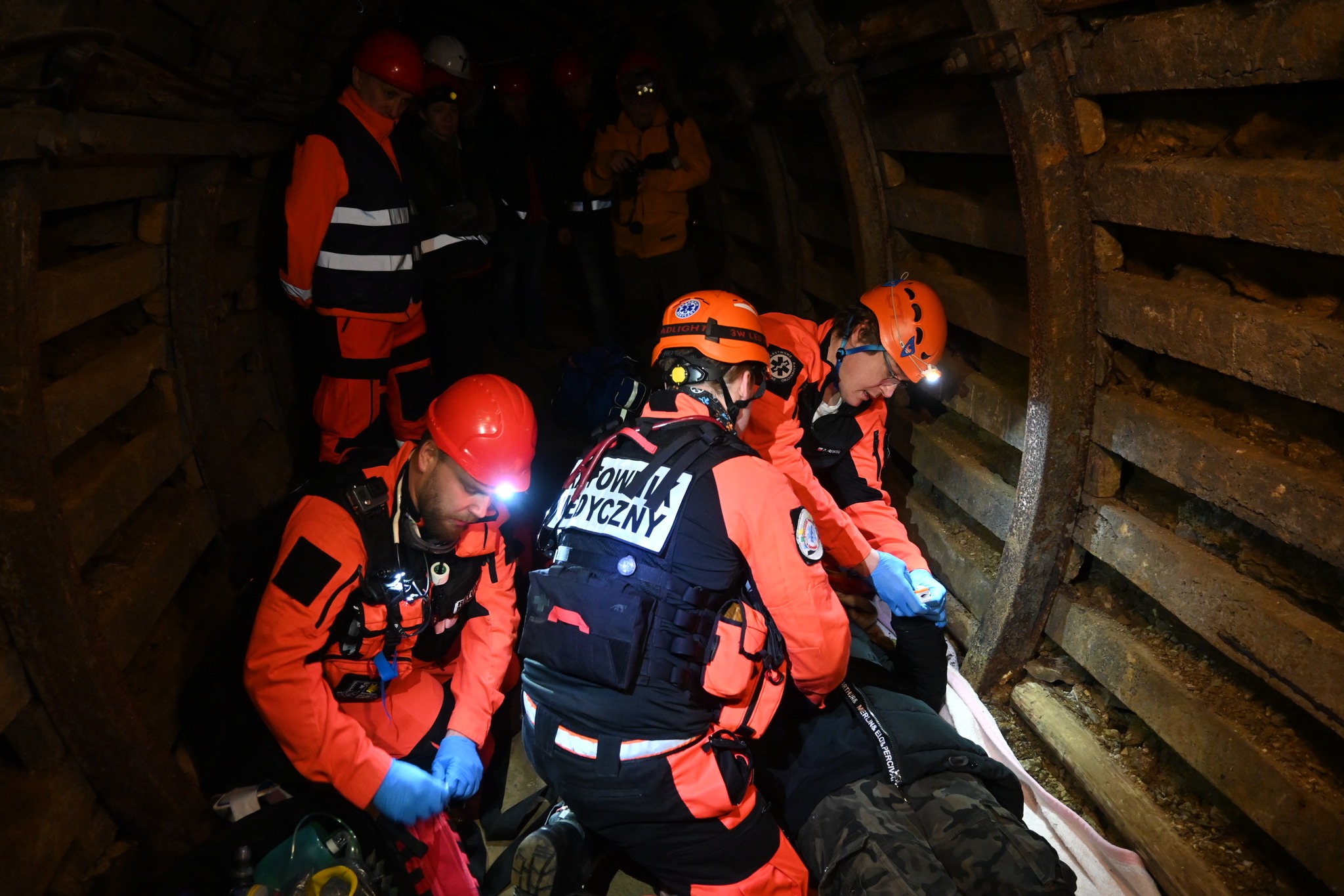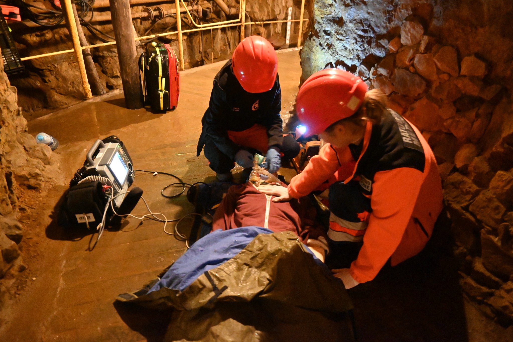 Zespoły ratownicze mierzyły się z serią pozorowanych zdarzeń medycznych m.in. NZK, urazy, złamania czy transport poszkodowanego w trudnych warunkach terenowych (40 metrów pod ziemią).