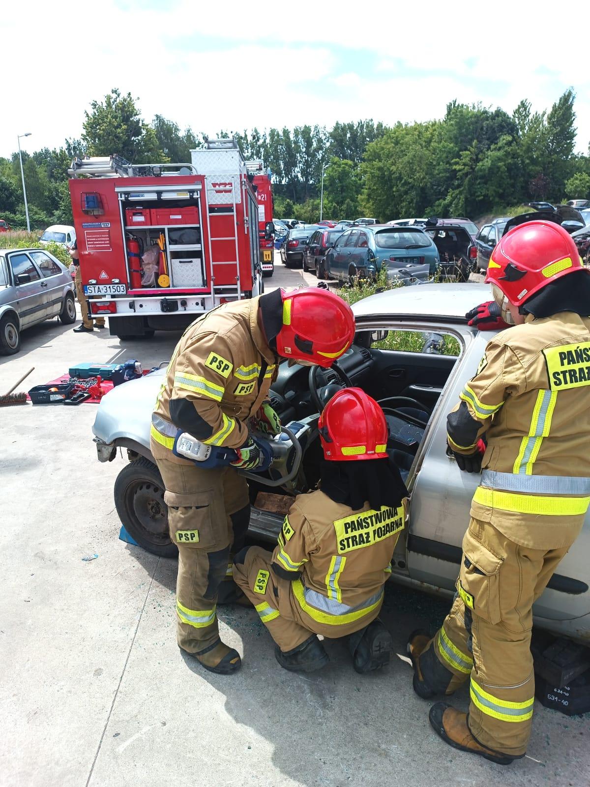 W dniu 20 czerwca 2024 roku na terenie zakładu "ROBAR RECYKLING" w Radzionkowie odbyły się ćwiczenia z zakresu taktyki ratownictwa technicznego. Celem ćwiczeń było doskonalenie umiejętności wykonywania dostępu do poszkodowanych w wypadkach drogowych. Zadania realizowane były różnymi metodami przy maksymalnym wykorzystaniu posiadanego sprzętu hydraulicznego oraz podręcznego sprzętu wykorzystywanego podczas tego typu działań.