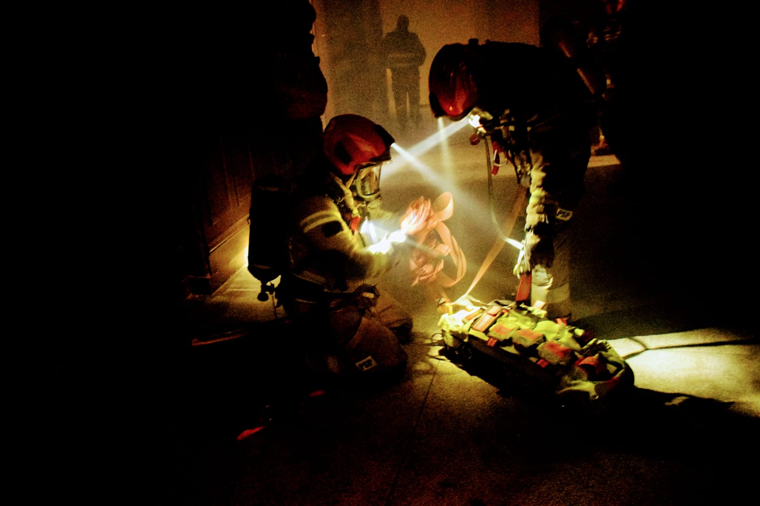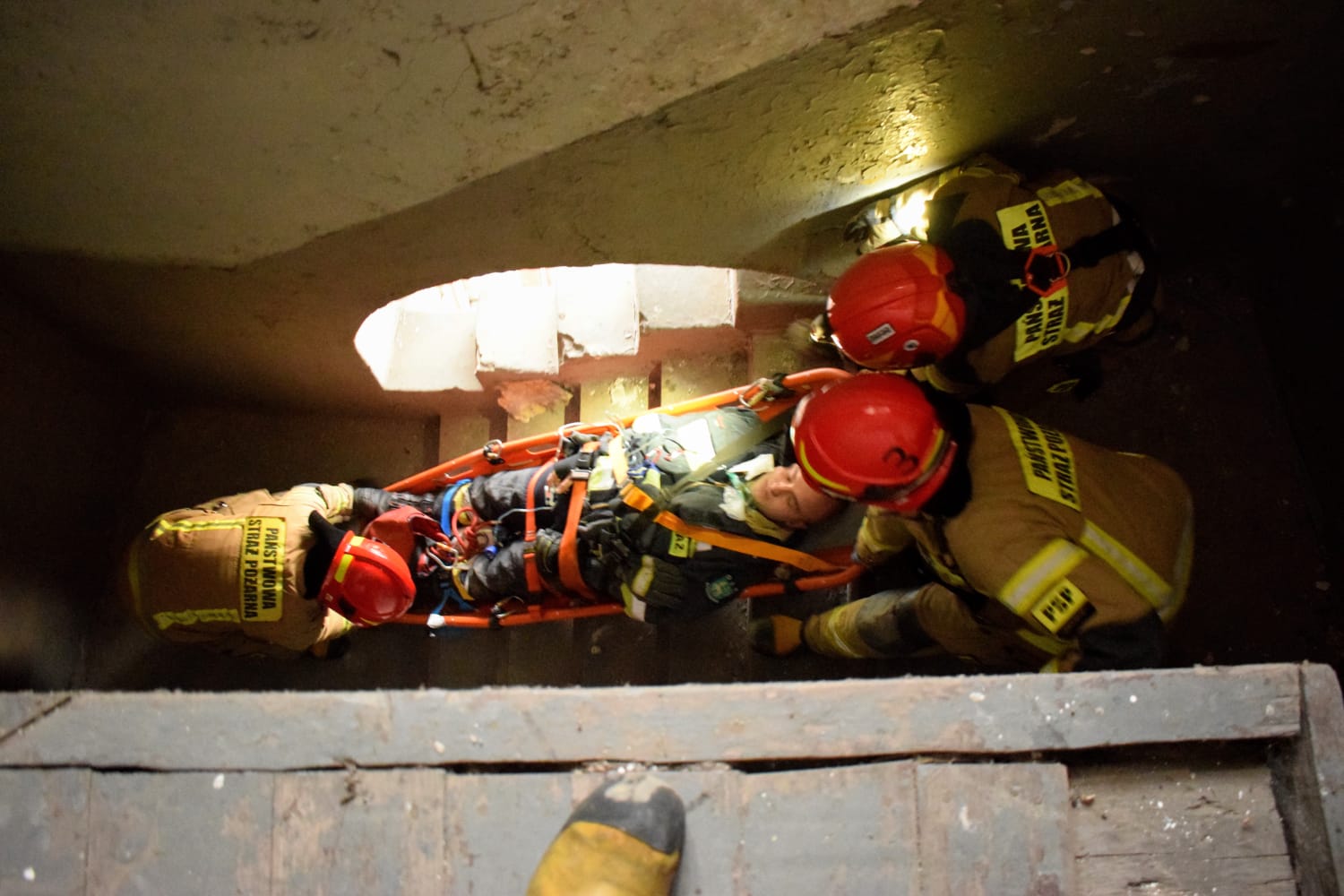 Strażacy działając w rotach ćwiczyli symulowane akcje m. in. poszukiwanie strażaka wewnątrz dużego obiektu, stosowanie ewakuacji pionowej oraz KPP w strefie zagrożenia, wymiana butli z powietrzem w zadymieniu oraz współpraca z innymi rotami asekuracyjnymi z uwzględnieniem podmiany ratowników.