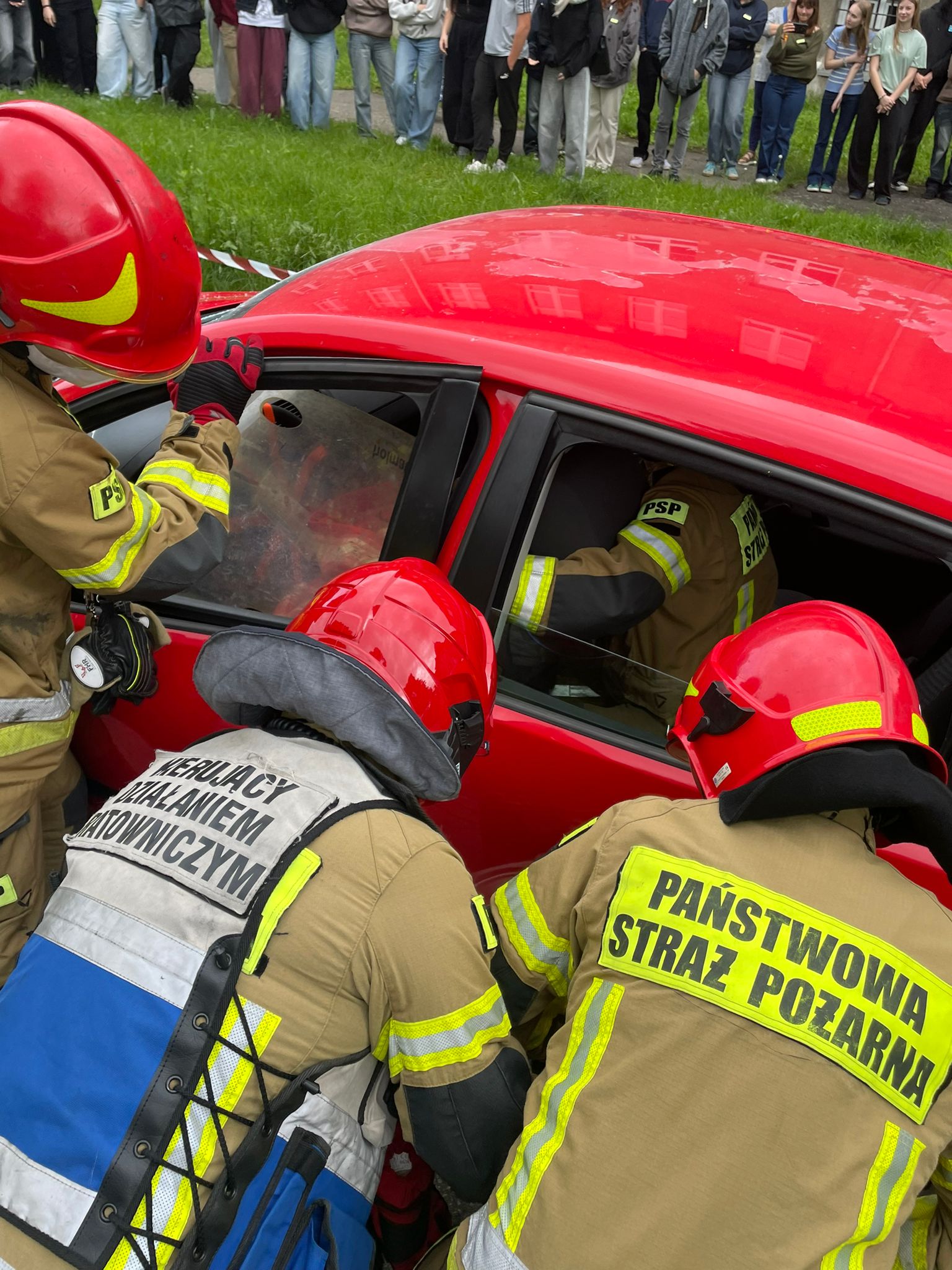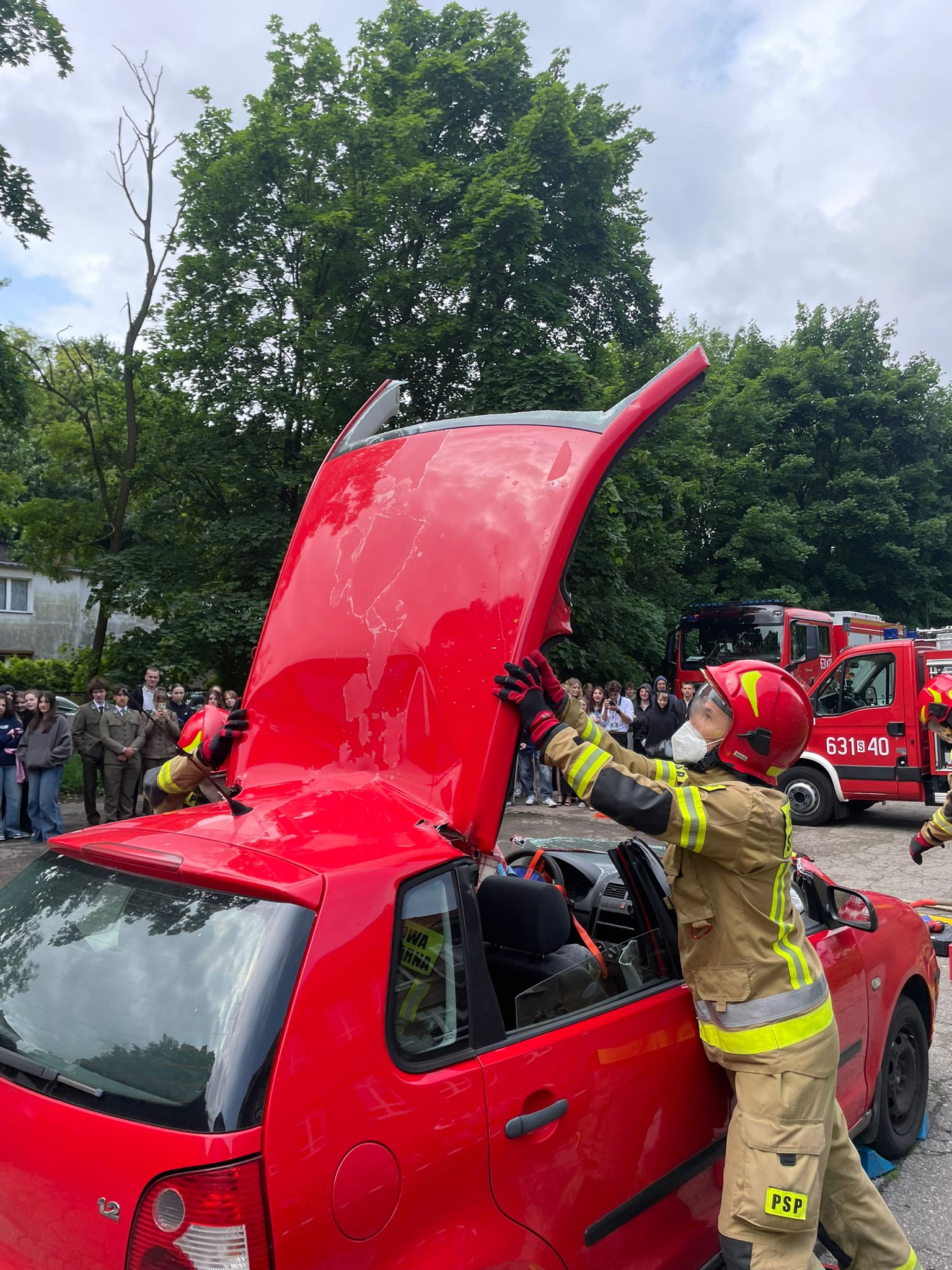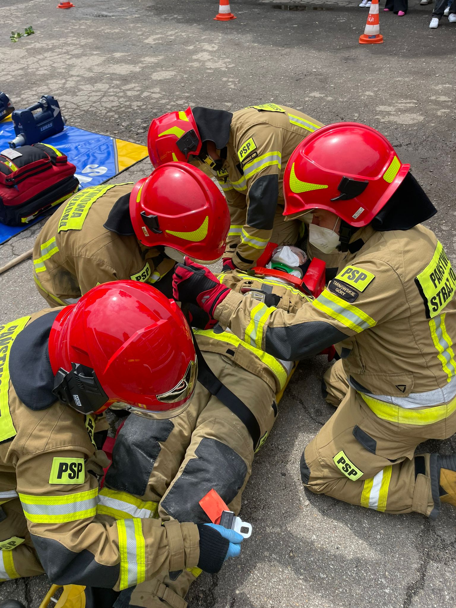 Strażacy z JRG w Tarnowskich Górach zaprezentowali techniki ratownictwa drogowego.