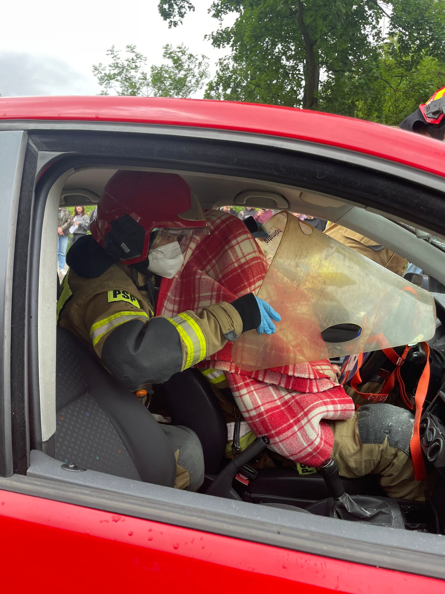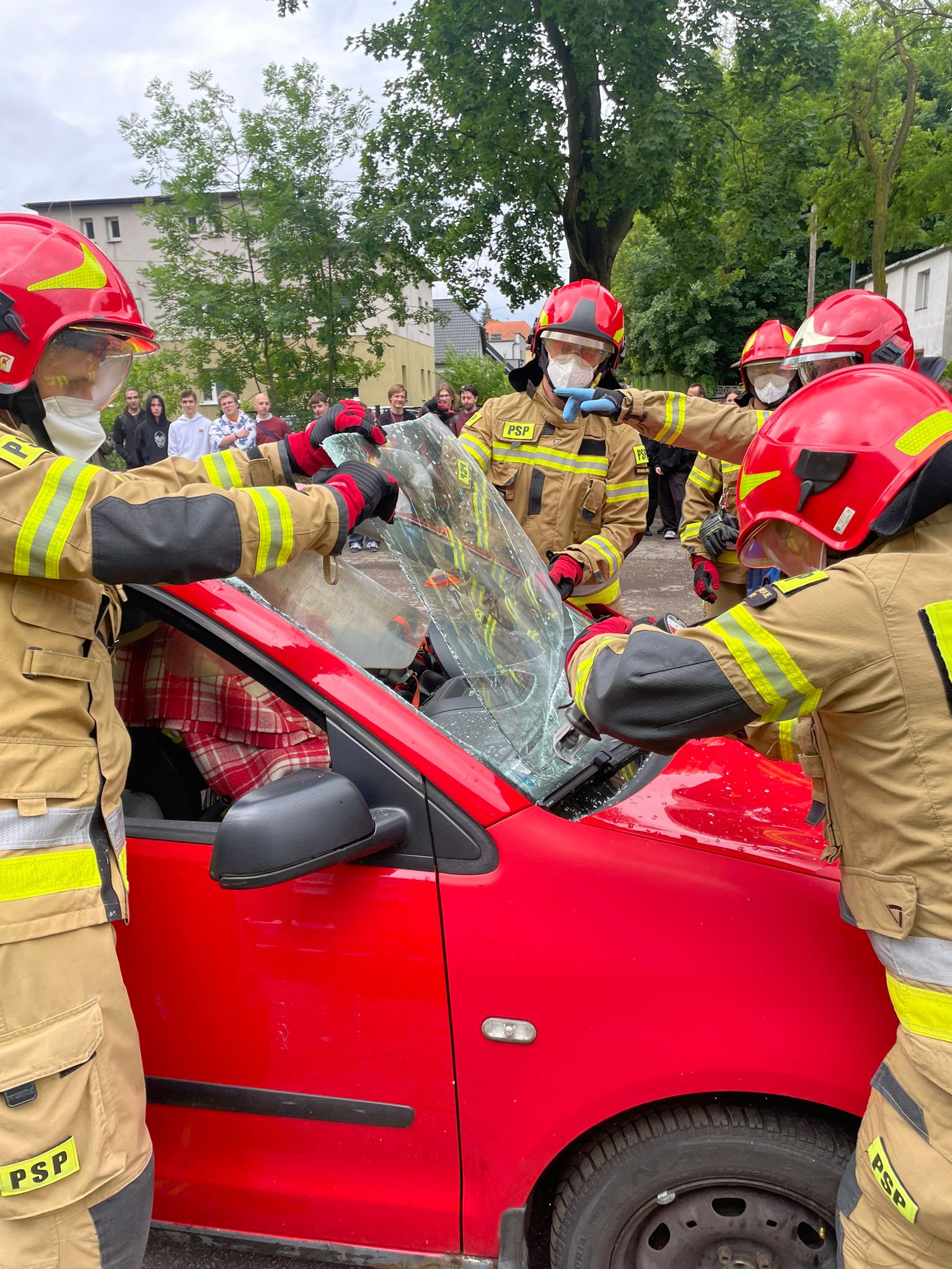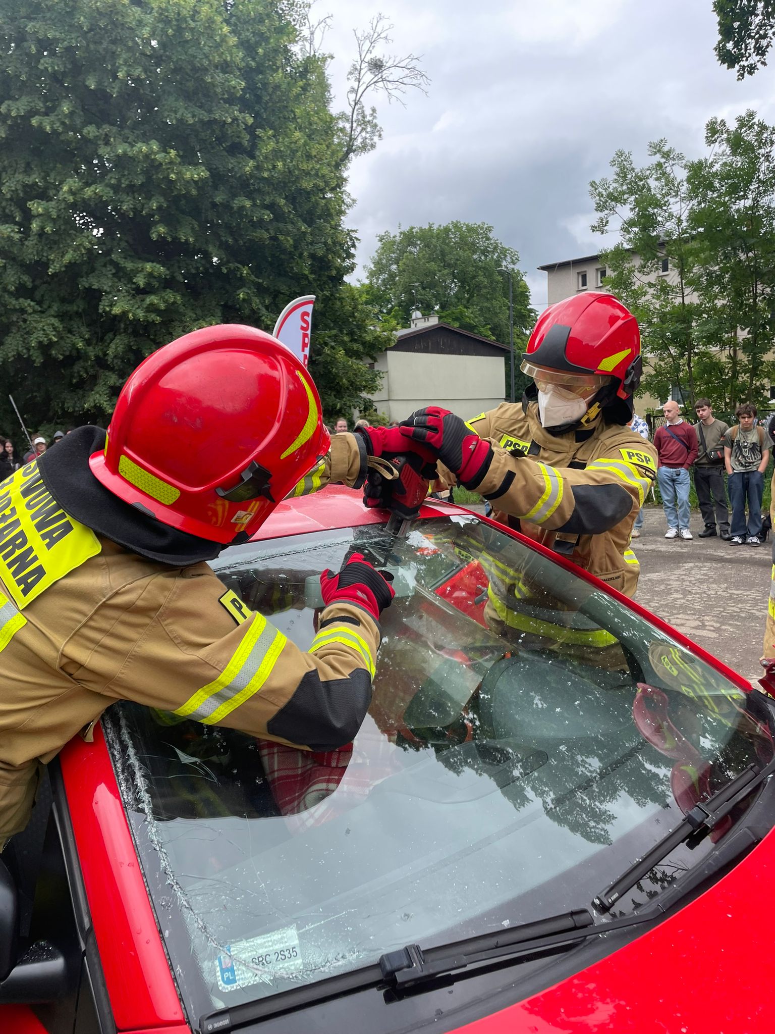 Strażacy z JRG w Tarnowskich Górach zaprezentowali techniki ratownictwa drogowego.