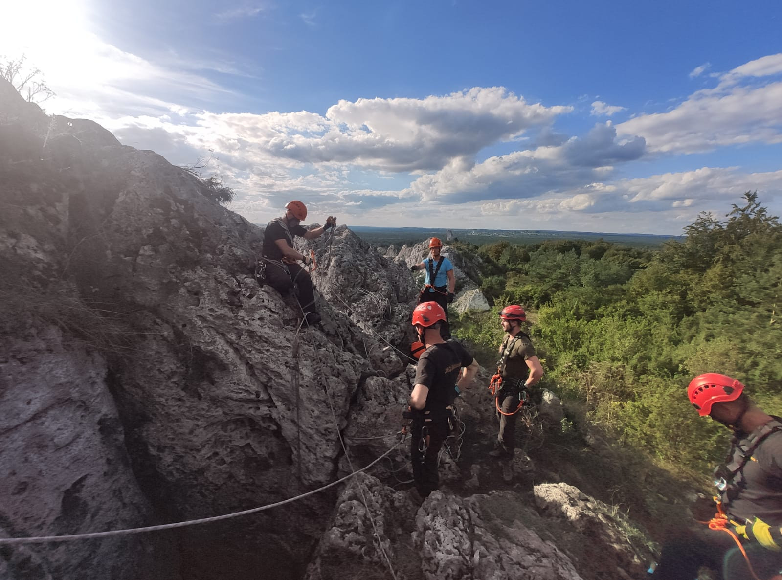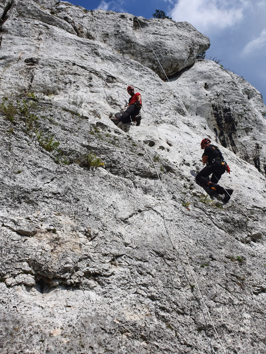 W dniach 7-10 i 27-30 września odbył się obozu kondycyjno-szkoleniowy dla naszych ratowników wysokościowych ze Specjalistycznej Grupy Ratownictwa Wysokościowego Radzionków. Obecna edycja zgrupowania została zlokalizowana na terenie Jury Krakowsko-Częstochowskiej z bazą w Podlesicach. Codziennie ratownicy mieli napięty grafik całodniowych zajęć, które odbywały się w trudnym, eksponowanym terenie skalnym. Ratownicy doskonalili umiejętności poręczowania i deporęczowania oraz poruszania się po linach w warunkach naturalnej ekspozycji, doskonaleniu metod dotarcia do poszkodowanego/poszkodowanych oraz technik ewakuacyjnych przy różnych kierunkach prowadzenia ewakuacji. W ćwiczenia SGRW zostały również wplecione zagadnienia z zakresu organizacji działań Specjalistycznej Grupy Poszukiwawczo Ratowniczej, topografii oraz systemu globalnej lokalizacji satelitarnej (GPS).