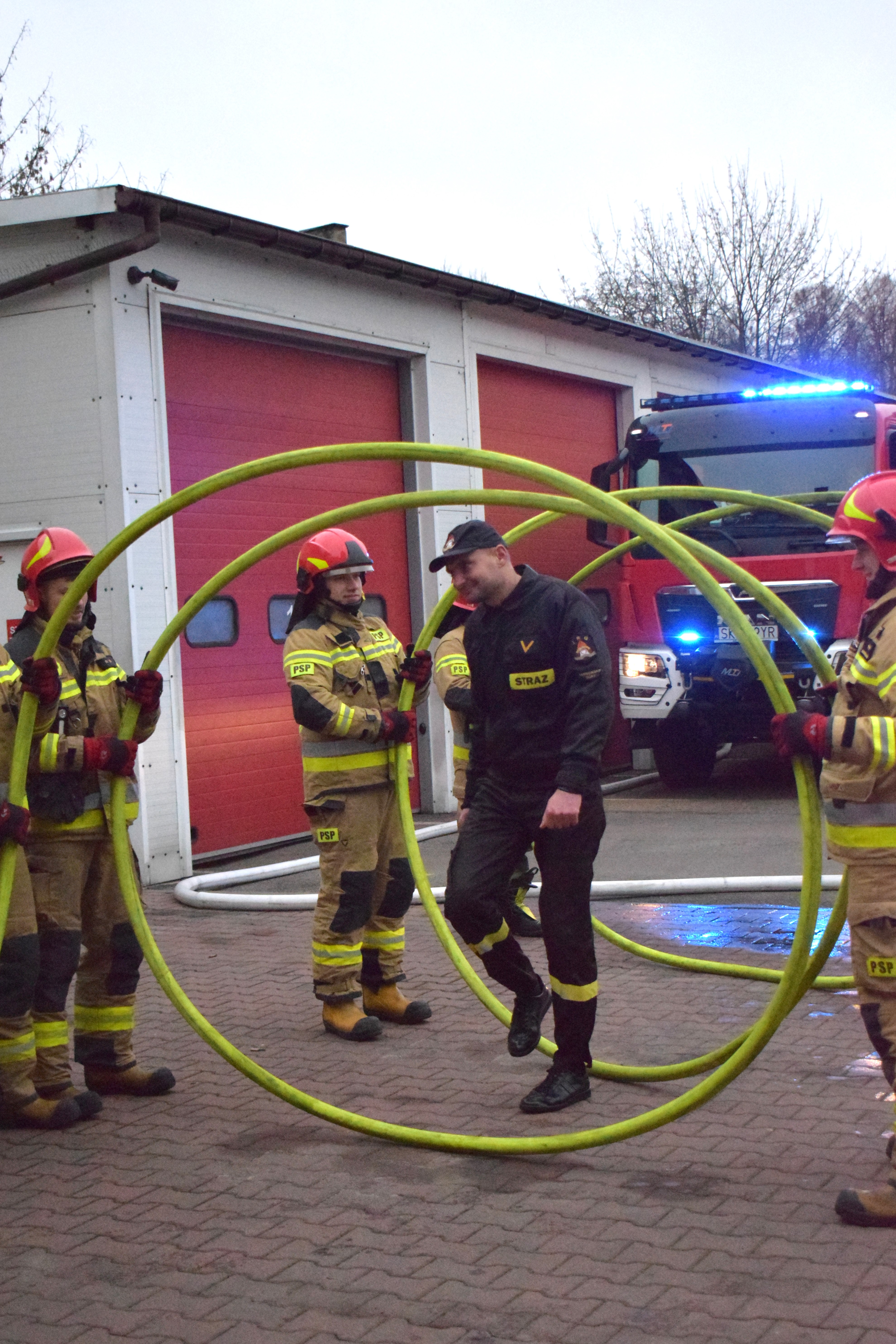 asp. Adam Gruca, st. ogn. Paweł Piwkowski, ogn. Krzysztof Gajewski pełniący służbę w JRG Tarnowskie Góry oraz st. ogn. Krzysztof Wręczycki i ogn. Zbigniew Fielek pełniący służbę w JRG Radzionków.