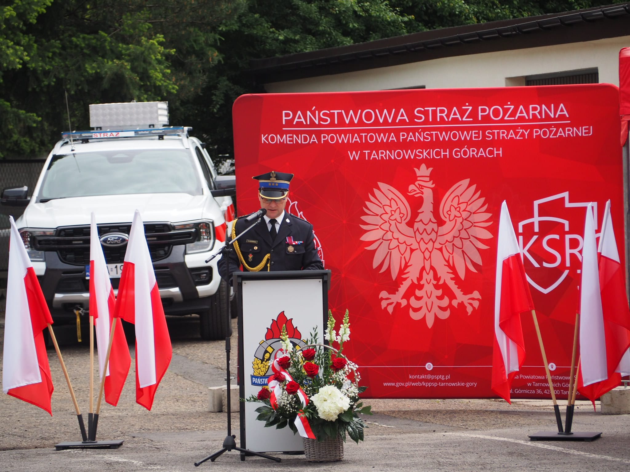 23 maja 2025 roku na placu wewnętrznym w Komendzie Powiatowej Państwowej Straży Pożarnej w Tarnowskich Górach odbyła się uroczysta zbiórka z okazji Powiatowych Obchodów Dnia Strażaka połączonych z jubileuszem 30 - lecia KSRG.