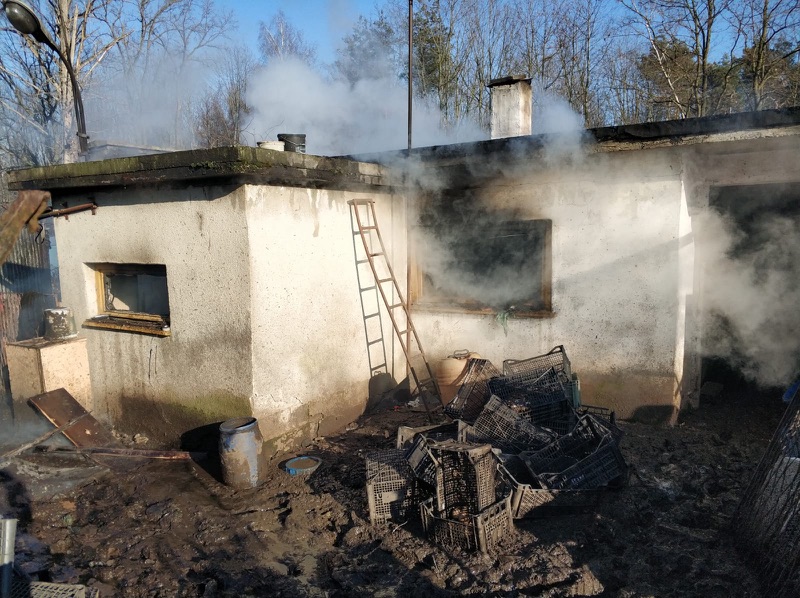 Po przybyciu na miejsce potwierdzono pożar budynku gospodarczego murowanego, 1-kondygnacyjnego.