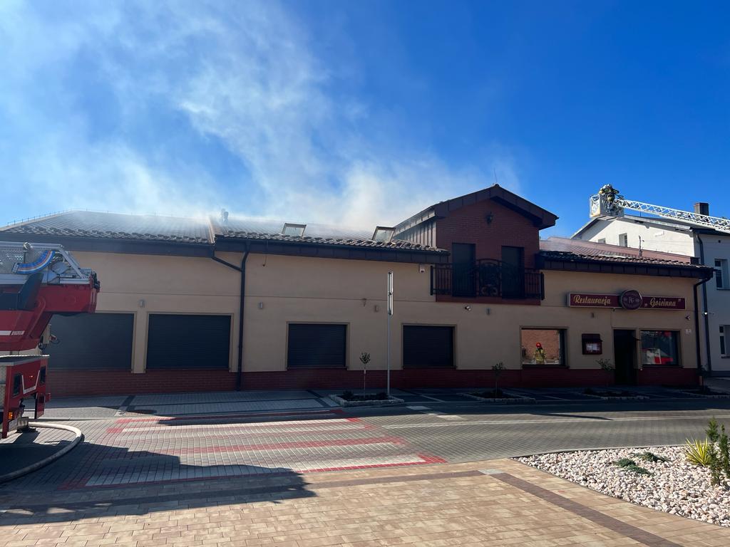 W dniu 20.09.2023 roku o godzinie 09:05 SK KP w Tarnowskich Górach przyjęło zgłoszenie dotyczące pożaru dachu budynku restauracji w Miejscowości Kalety.