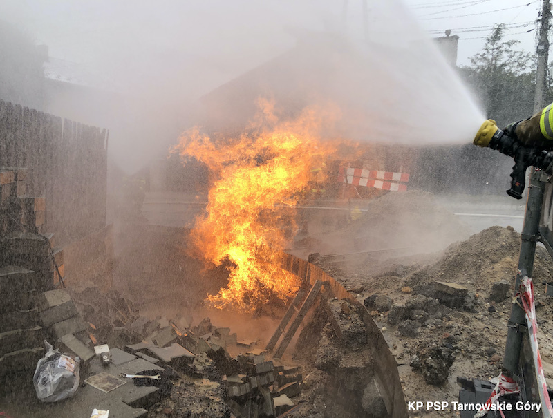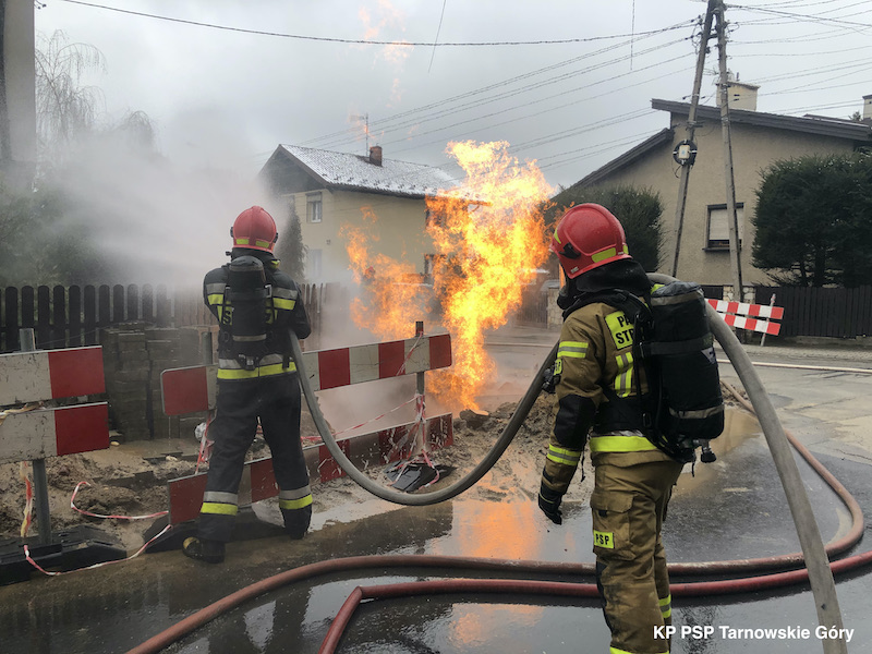 13 kwietnia o godz. 11:15 Stanowisko Kierowania Komendanta Powiatowego PSP w Tarnowskich Górach przyjęło zgłoszenie, że podczas prowadzonych prac uszkodzono rurociąg gazowy, wybuchł pożar.