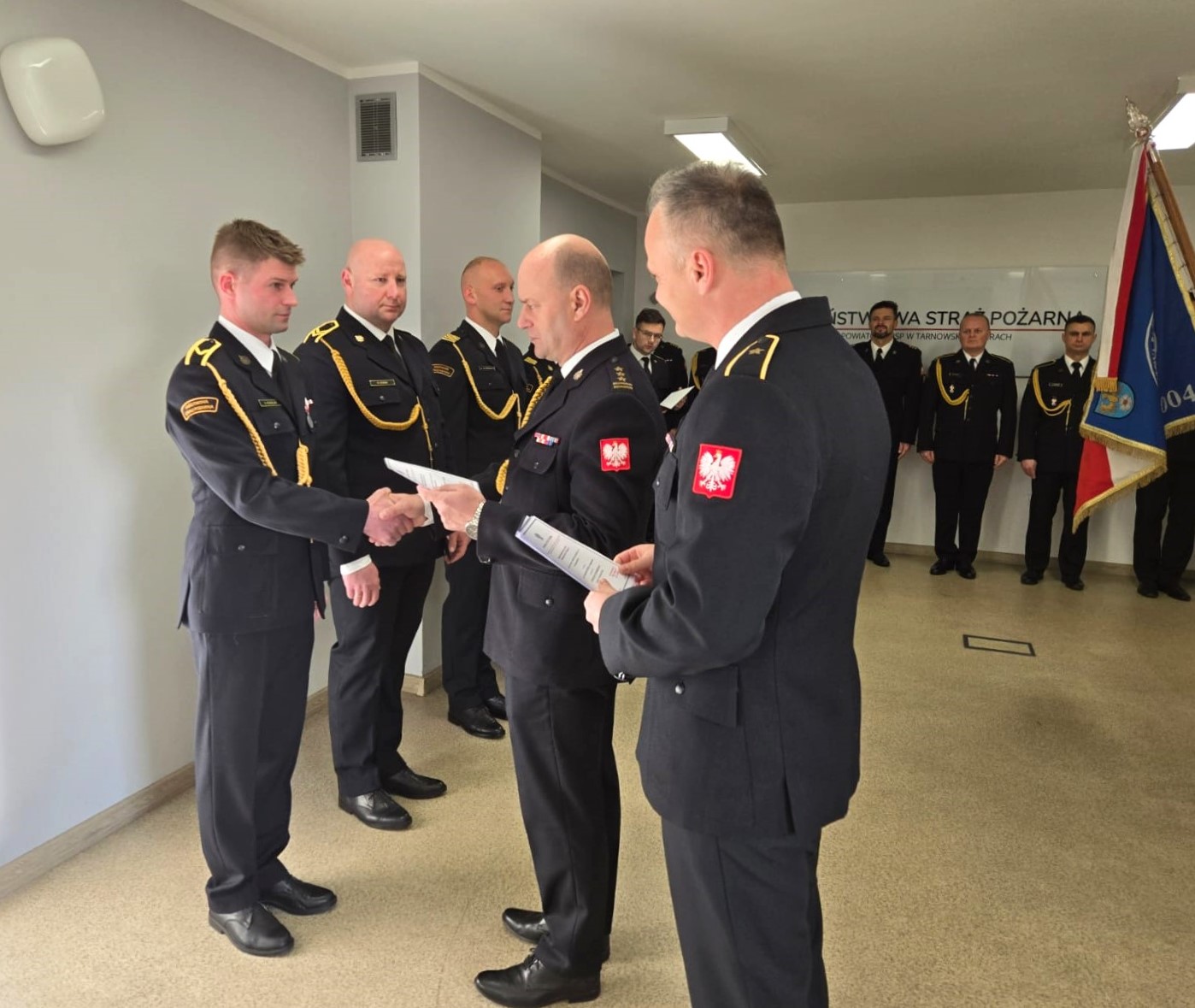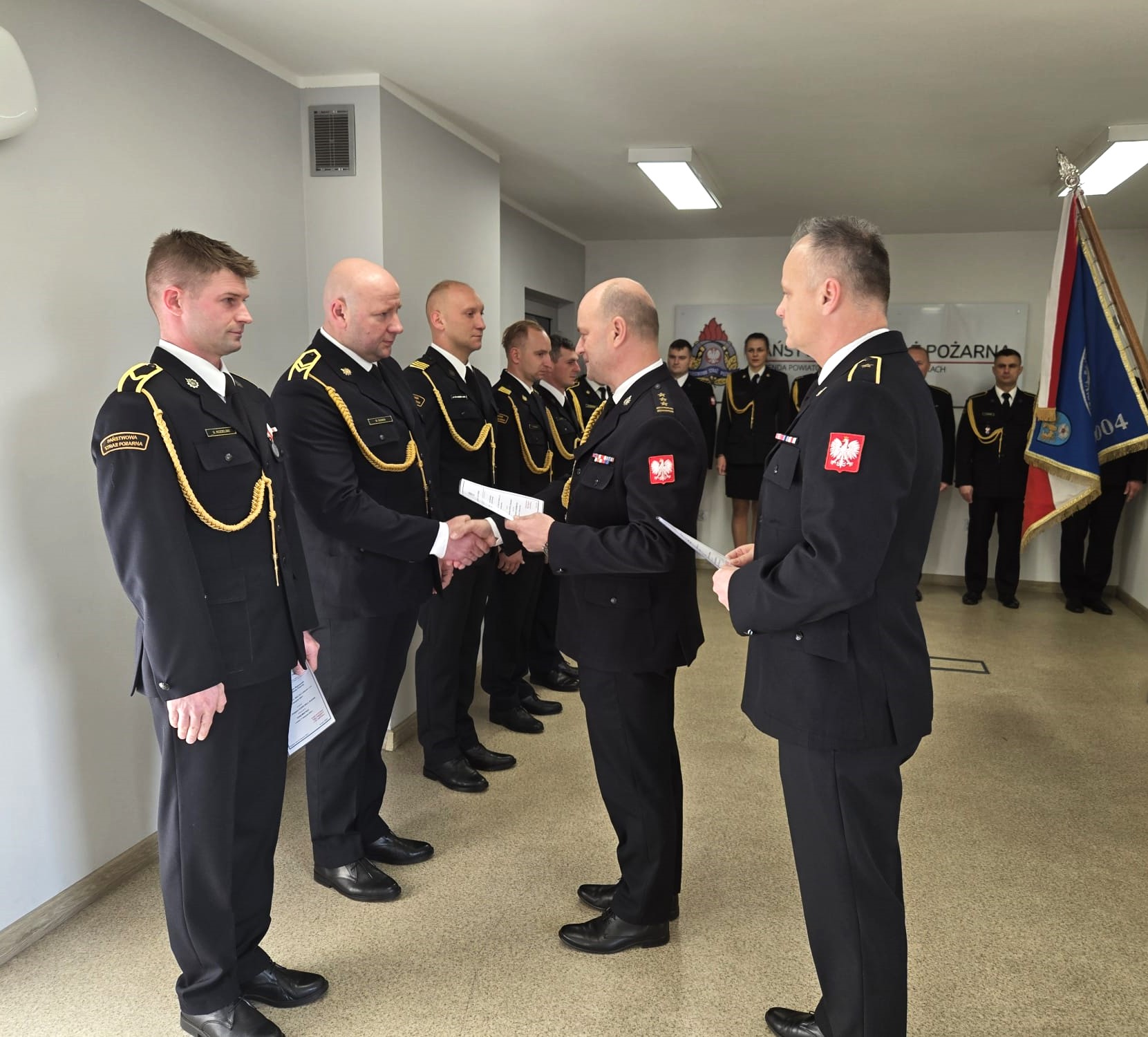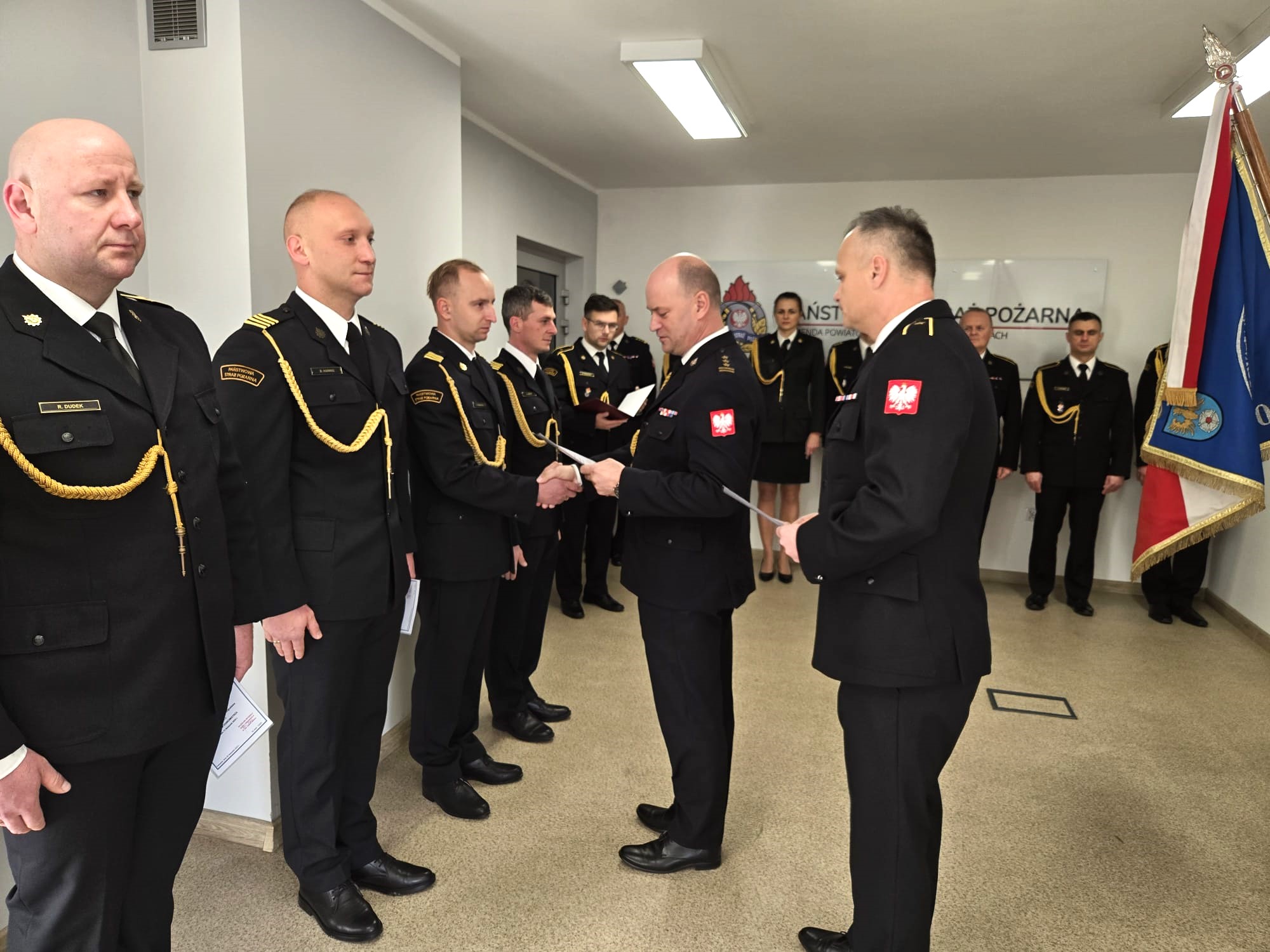 W dniu 21 listopada 2024r. z okazji Narodowego Święta Niepodległości, na sali sztabowej Komendy Powiatowej Państwowej Straży Pożarnej w Tarnowskich Górach, odbyła się uroczysta zbiórka, na której wręczone zostały awanse na wyższe stopnie służbowe.