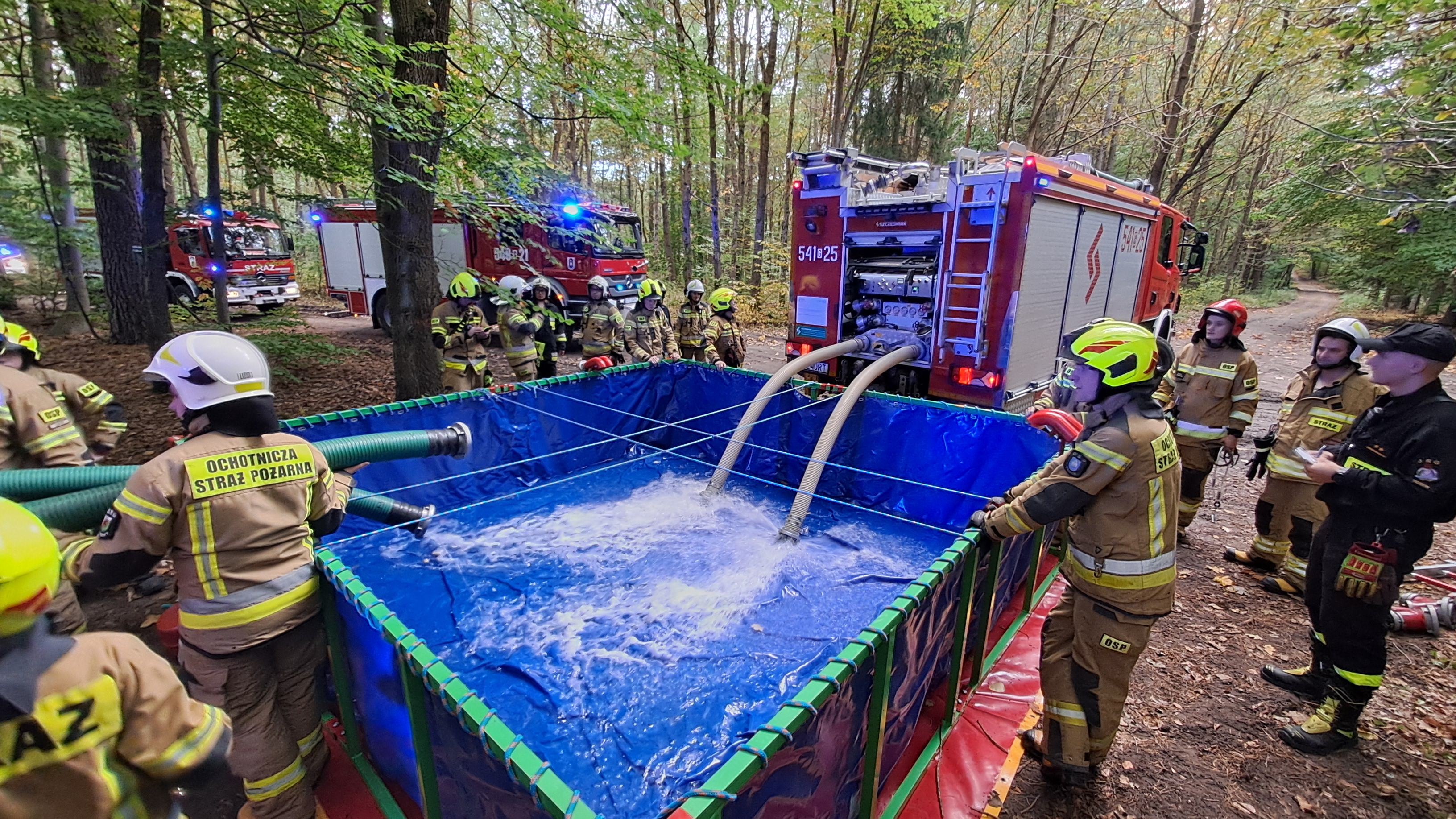 W godzinach popołudniowych odbyły się roczne ćwiczenia przeznaczone dla Wojewódzkiego Odwodu Operacyjnego Plutonu POŻAR. Przed przystąpieniem do działań omówione zostały założone cele oraz zasady BHP. Po odprawie zastępy udały się w okolice miejscowości Rajkowski Młyn, gdzie na terenach leśnych został upozorowany pożar na terenie dwóch oddziałów. Zadania dla zastępów polegały na rozwinięciu i budowie stanowisk gaśniczych oraz na dostarczaniu środka gaśniczego z najbliżeszego punktu czerpania wody poprzez dowożenie, a następnie wykorzystanie bufora wodnego w postaci zbiornika rozstawionego na stelarzu o pojemności 13 m3.