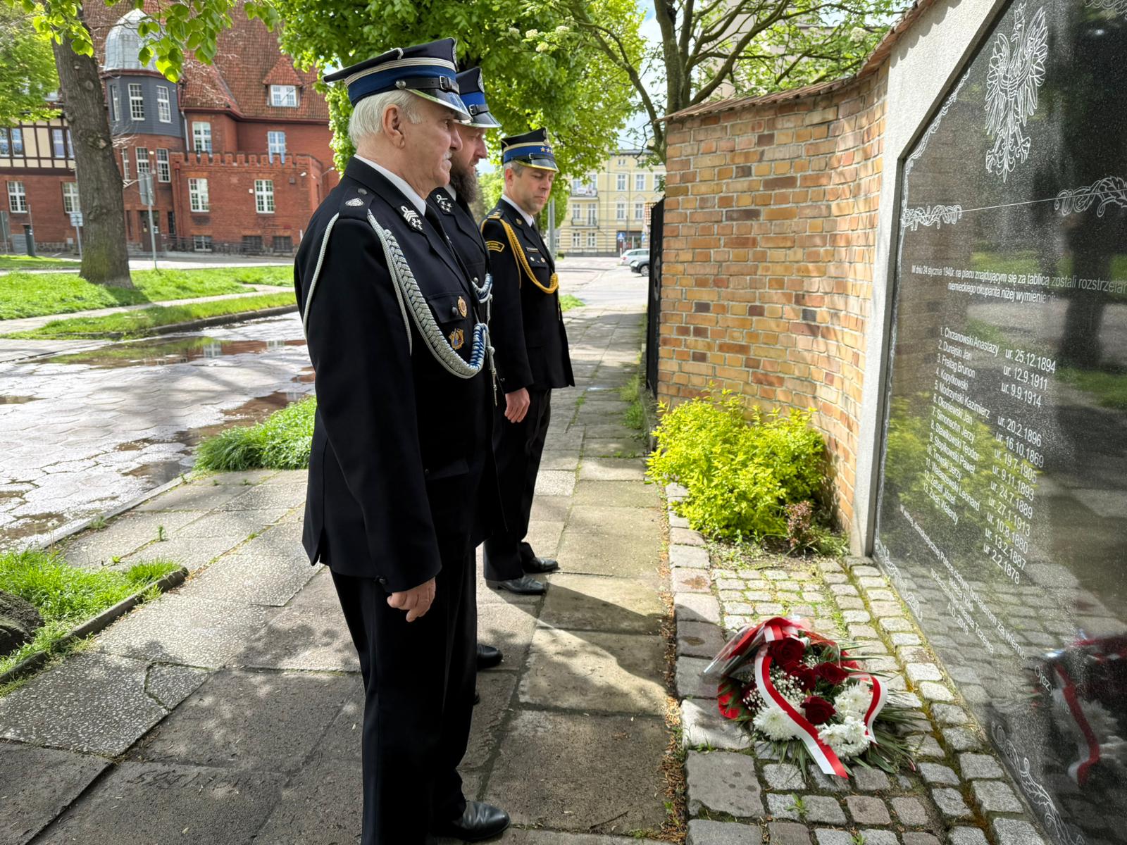 Po nabożeństwie, Zastępca Komendanta Powiatowego PSP w Tczewie st. bryg. Adam Tafliński, Prezes OSP w Tczewie dh Marcin Gibas oraz Naczelnik OSP w Tczewie dh Marian Lewandowski, złożyli pod Pomnikiem Polaków Rozstrzelanych przez Niemców w 1940 r. wieniec z kwiatami oddając hołd pomordowanym w tym miejscu mieszkańcom.