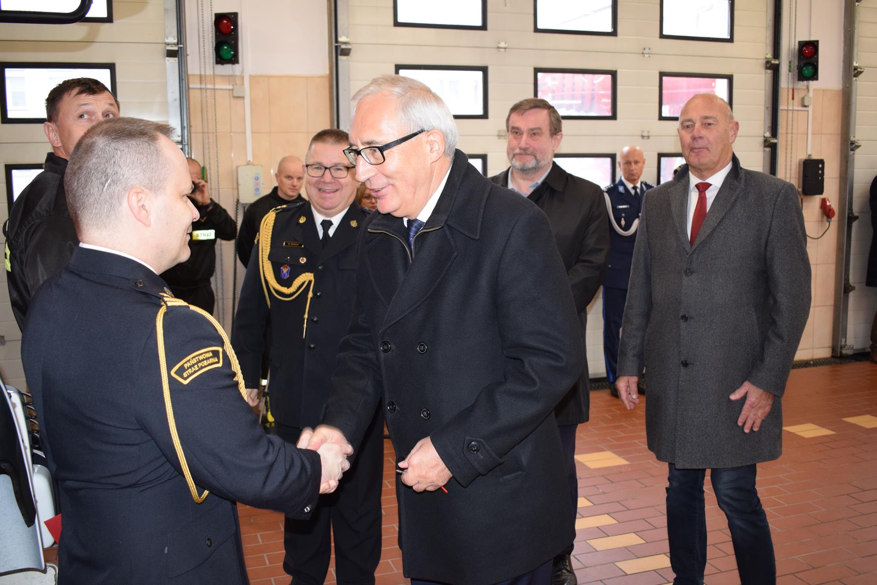 Podczas uroczystości bryg. Wojciech Berent w imieniu Pomorskiego Komendanta Wojewódzkiego PSP nadbryg. Piotra Sochy podziękował posłowi na Sejm RP Kazimierzowi Smolińskiemu za dotychczasową współpracę i pomoc w dofinansowywaniu zakupów realizowanych przez Państwową Straż Pożarną w województwie pomorskim, wręczając okolicznościową pamiątkę upamiętniającą 30-lecie Państwowej Straży Pożarnej.