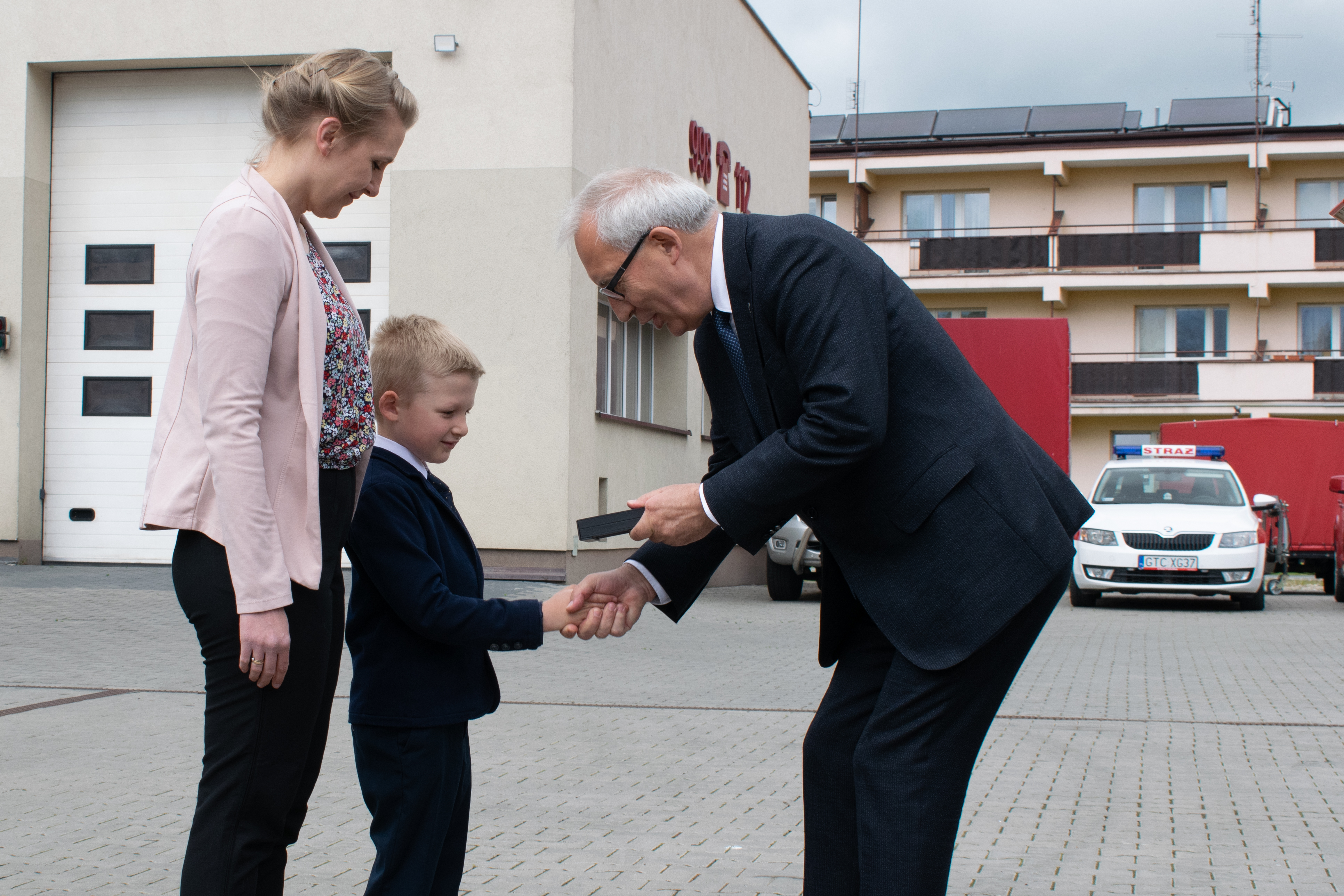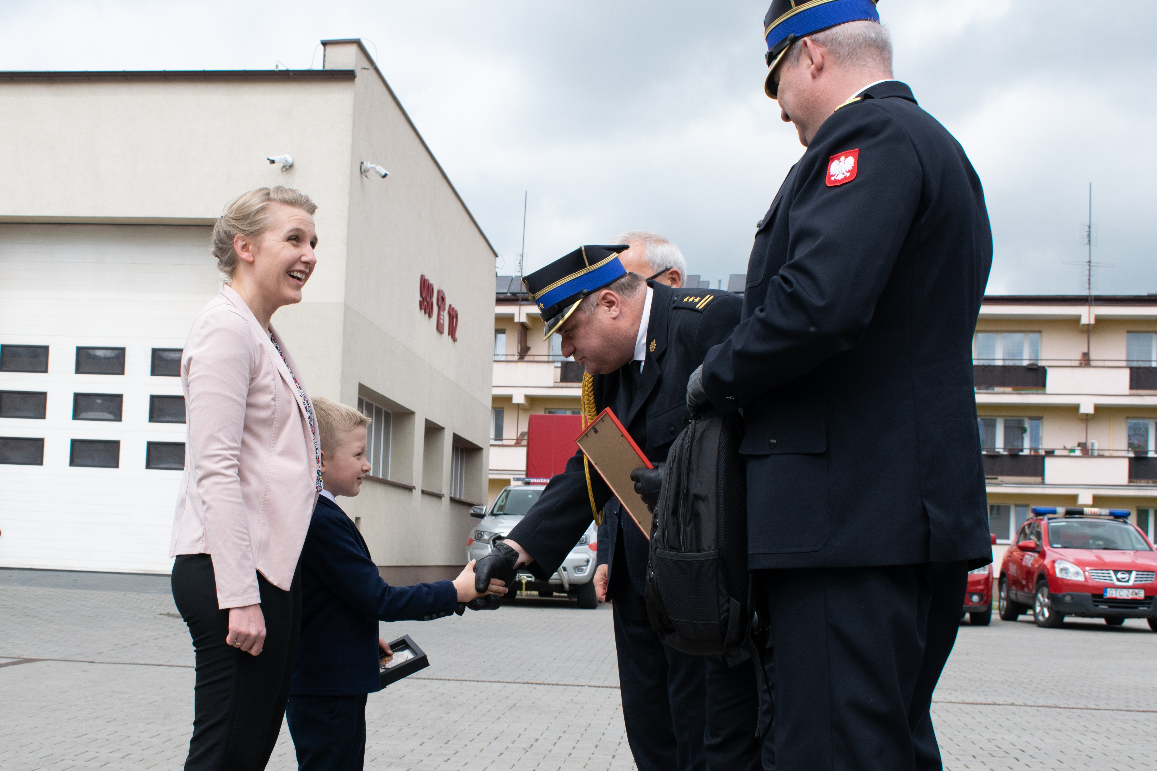 Odznaczenie i upominki zostały dziecku wręczone przez Posła na Sejm RP Pana Kazimierza Smolińskiego, Zastępcę Komendanta Wojewódzkiego Państwowej Straży Pożarnej st. bryg. Dariusza Żywickiego oraz Komendanta Powiatowego Państwowej Straży Pożarnej w Tczewie st. bryg. Andrzeja Mróz.