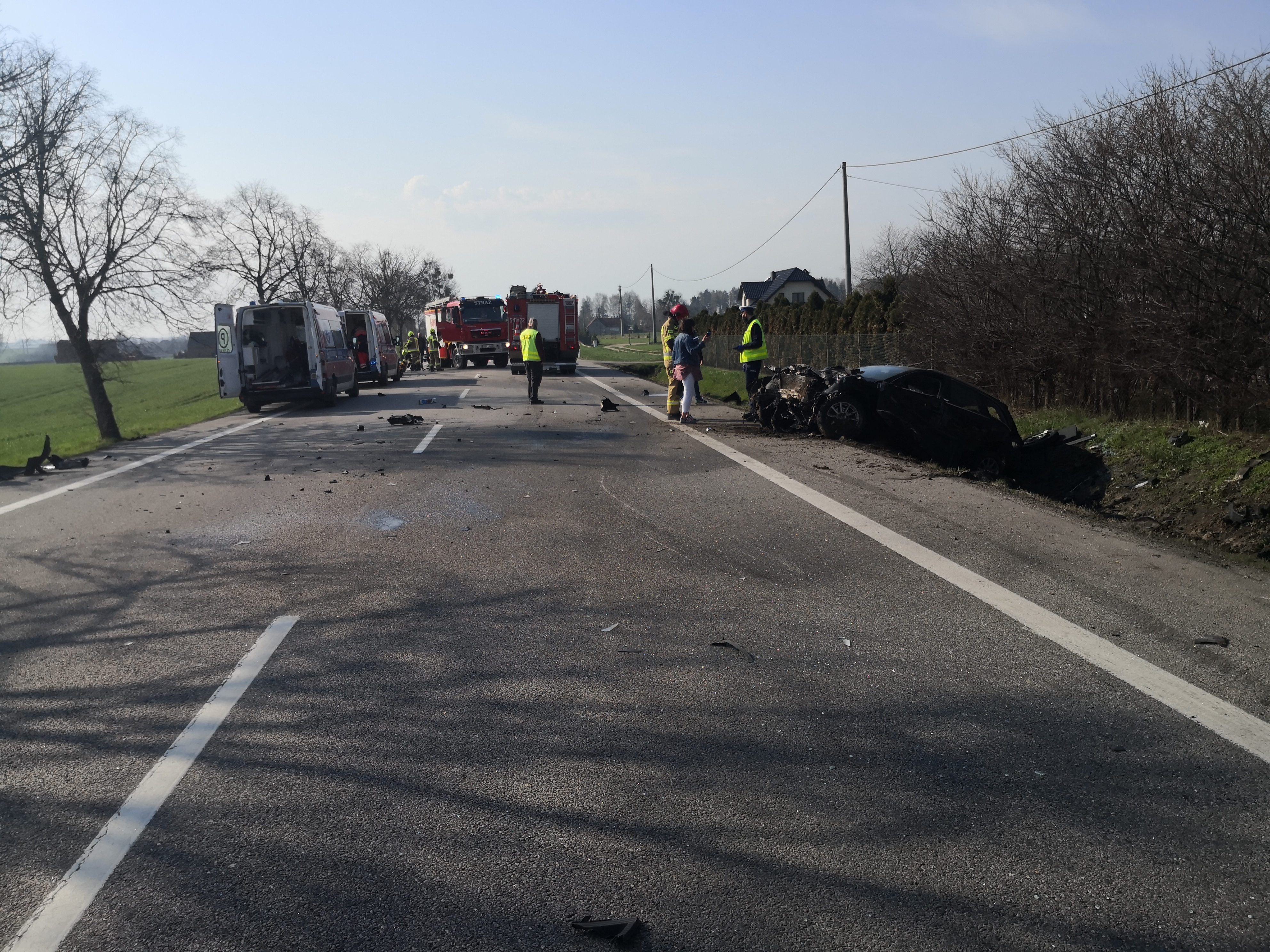 O godzinie 8:57 Stanowisko Kierowania Komendanta Powiatowego PSP w Tczewie otrzymało zgłoszenie o wypadku w miejscowości Narkowy, do którego doszło na drodze krajowej nr 91. W wyniku zdarzenia dwie osoby zostały poszkodowane. Strażacy wraz z policjantami udzielili pomocy osobom rannym do czasu przyjazdu zespołów ratownictwa medycznego. Po zabraniu rannych przez ZRM do szpitala oraz po przeprowadzeniu czynności przez technika poliocji, strażacy usunęli z jezdni elementy karoserii i części z uszkodzonych pojazdów, a następnie za pomocą neutralizatora oraz sorbentu usunęli rozlane płyny eksplatacyjne. W działaniach brało udział 5 zastępów straży pożarnej, 2 radiowozy, 3 ZRM, pomoc drogowa.
