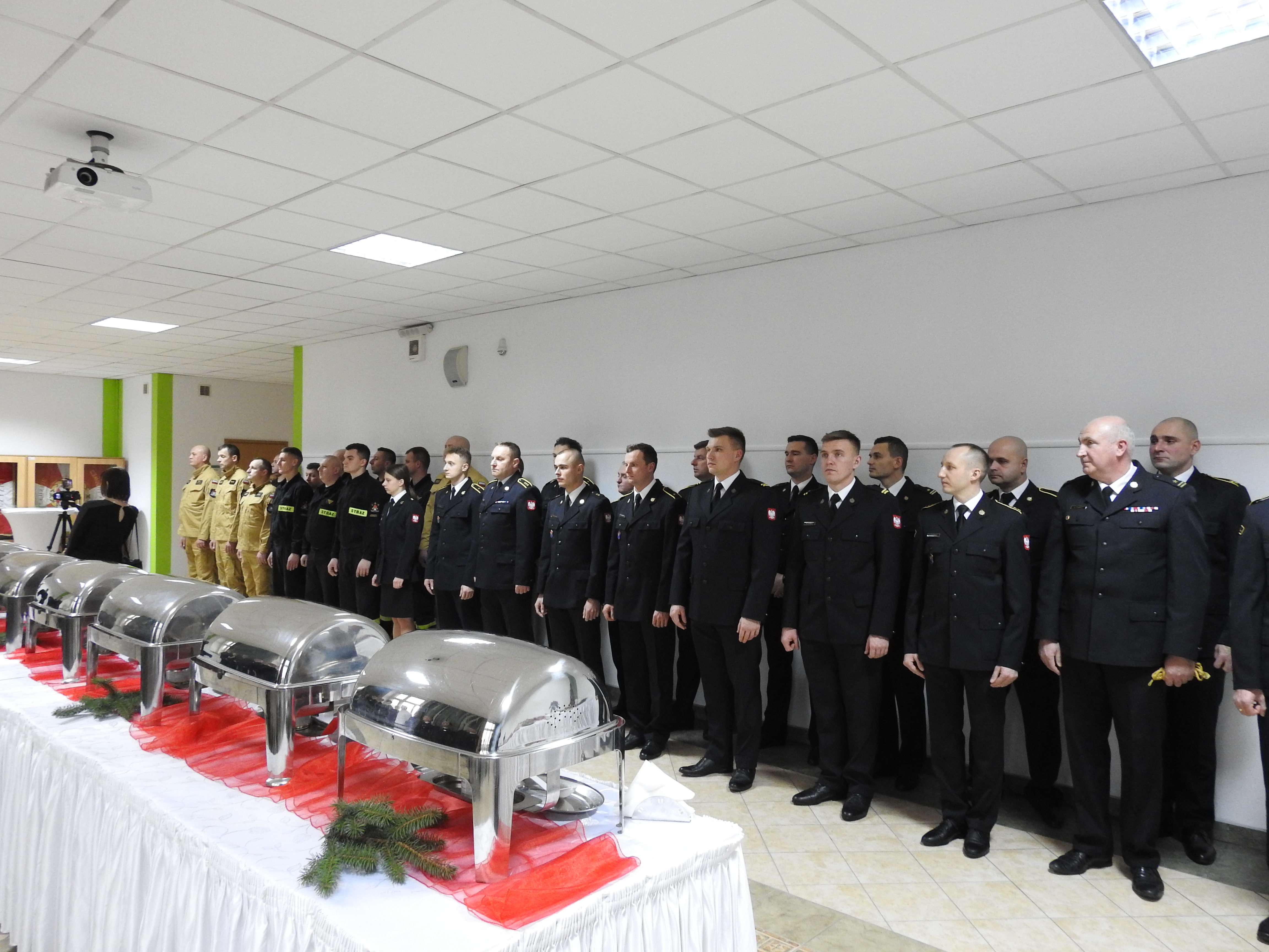 Zastępca łódzkiego komendanta wojewódzkiego PSP w Łodzi st. bryg. Paweł Malinowski w imieniu łódzkiego komendanta wojewódzkiego PSP w Łodzi nadbryg. Grzegorza Janowskiego przekazał życzenia bożonarodzeniowe i noworoczne. W swoim wystąpieniu, podziękował także za zaangażowanie w pracę w ciągu całego, mijającego roku. Życzenia złożył również starosta powiatu tomaszowskiego Pan Mariusz Węgrzynowski oraz komendant powiatowy PSP w Tomaszowie Mazowieckim st. bryg. Krzysztof Iskierka. Boże błogosławieństwo przekazał, obecny na spotkaniu kapelan powiatowy strażaków – ks. Zbigniew Kowalczyk, po czym nastąpiło wspólne odśpiewanie kolęd i przełamanie się opłatkiem.