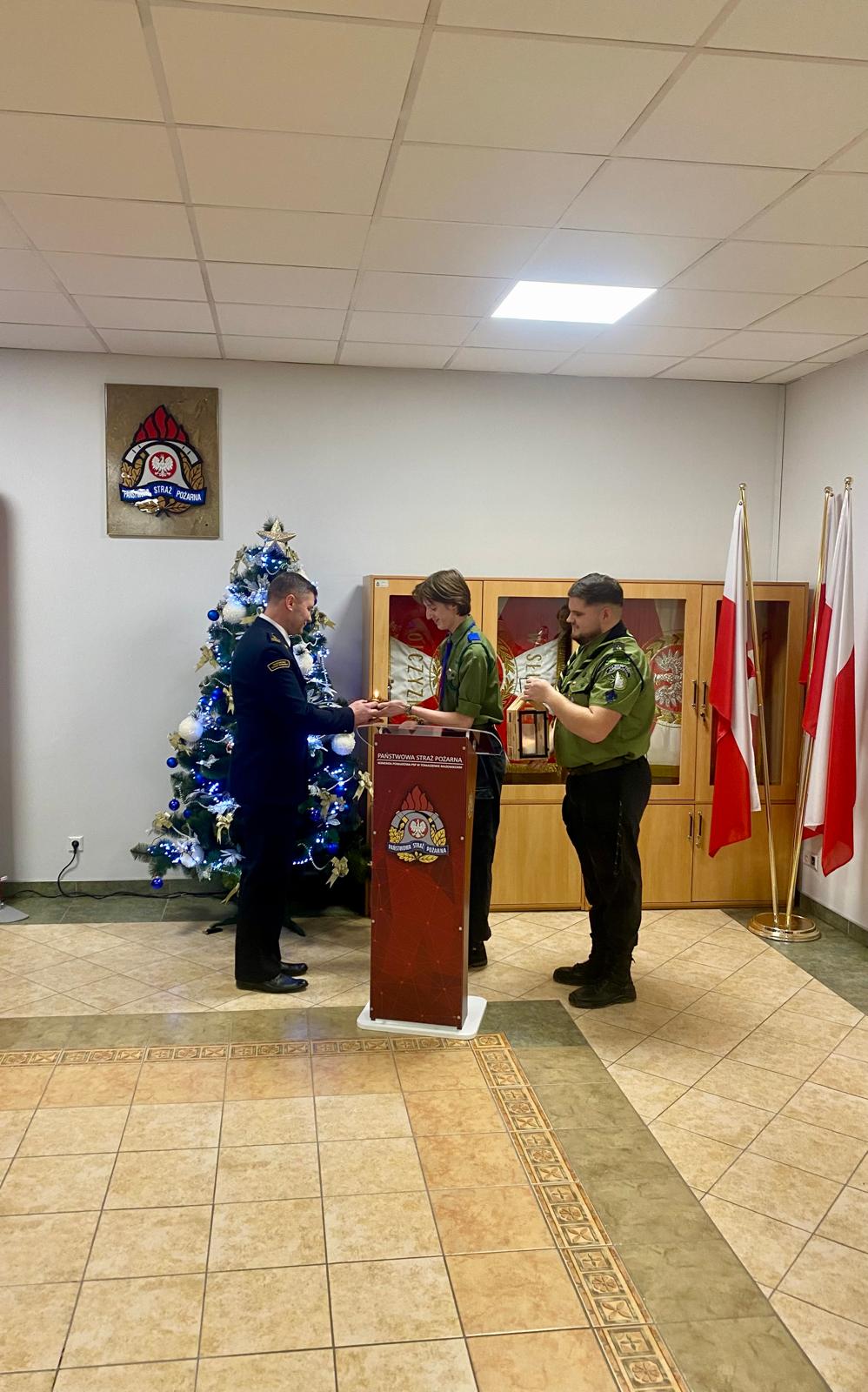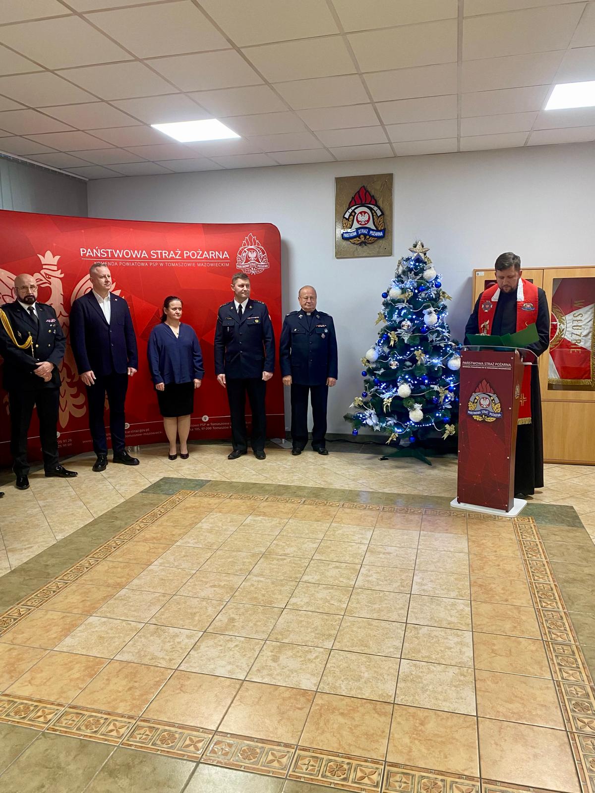 W dniu 22 grudnia 2025 roku w świetlicy Komedny Powiatowej PSP w Tomaszowie Mazowieckim odbyło się spotkanie wigiline. Uroczystość otworzył Komendant Powiatowy PSP w Tomaszowie Mazowieckim – bryg. Mariusz Kawnik, który przywitał zaproszonych gości oraz złożył świąteczne życzenia funkcjonariuszom i pracownikom cywlinym Komendy. Następnie Harcerze z Hufca ZHP w Tomaszowie Mazowieckim przekazali symboliczny ogień, niosący przesłanie pokoju, braterstwa i nadziei na ręce Komendanta Powiatowego. Wspólną modlitwę poprowadził ks. Grzegorz Chirk oraz ks. Zbigniew Kowalczyk. Życzenia świąteczne dla strażaków, pracowników cywilnych i ich najbliższych przekazali również zaproszeni goście.