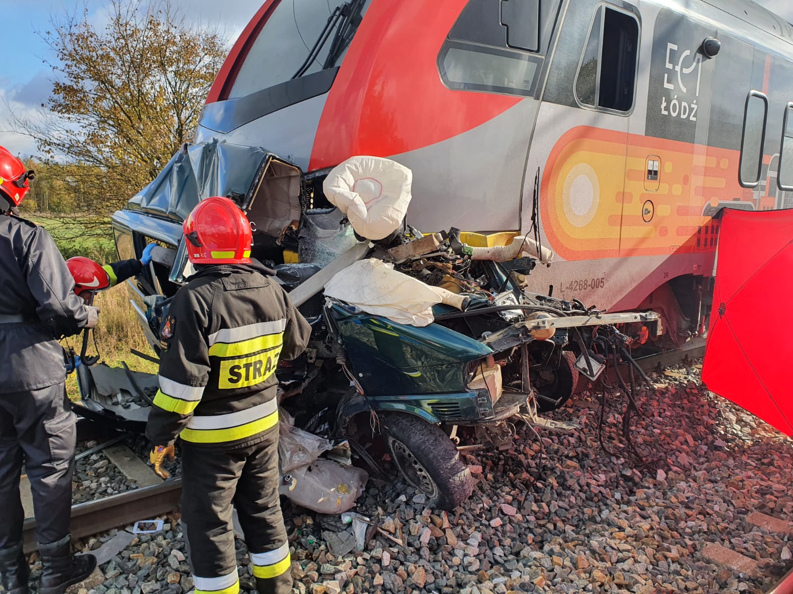 Z kolei w poniedziałek 18 października br. w miejscowości Cekanów, doszło do tragicznego wypadku na niestrzeżonym przejeździe kolejowym z udziałem samochodu dostawczego Volkswagen Transporter i pociągu osobowego relacji Drzewica - Łódź Fabryczna. Informację o zdarzeniu otrzymaliśmy o godzinie 11.07. W momencie przyjazdu pierwszych zastępów straży pożarnej wewnątrz uszkodzonego samochodu, który znajdował się pod przodem pociągu, przebywała jedna osoba. Strażacy przy użyciu sprzętu hydraulicznego wykonali dostęp do osoby poszkodowanej i ewakuowali ją z pojazdu. Pomimo podjętych medycznych czynności ratunkowych przez strażaków i zespół ratownictwa medycznego, osoby poszkodowanej nie udało się uratować. W trakcie prowadzonych działań ratowniczych, z pociągu ewakuowano 27 pasażerów pociągu i 3 osoby obsługi, którym zapewniono transport zastępczy.