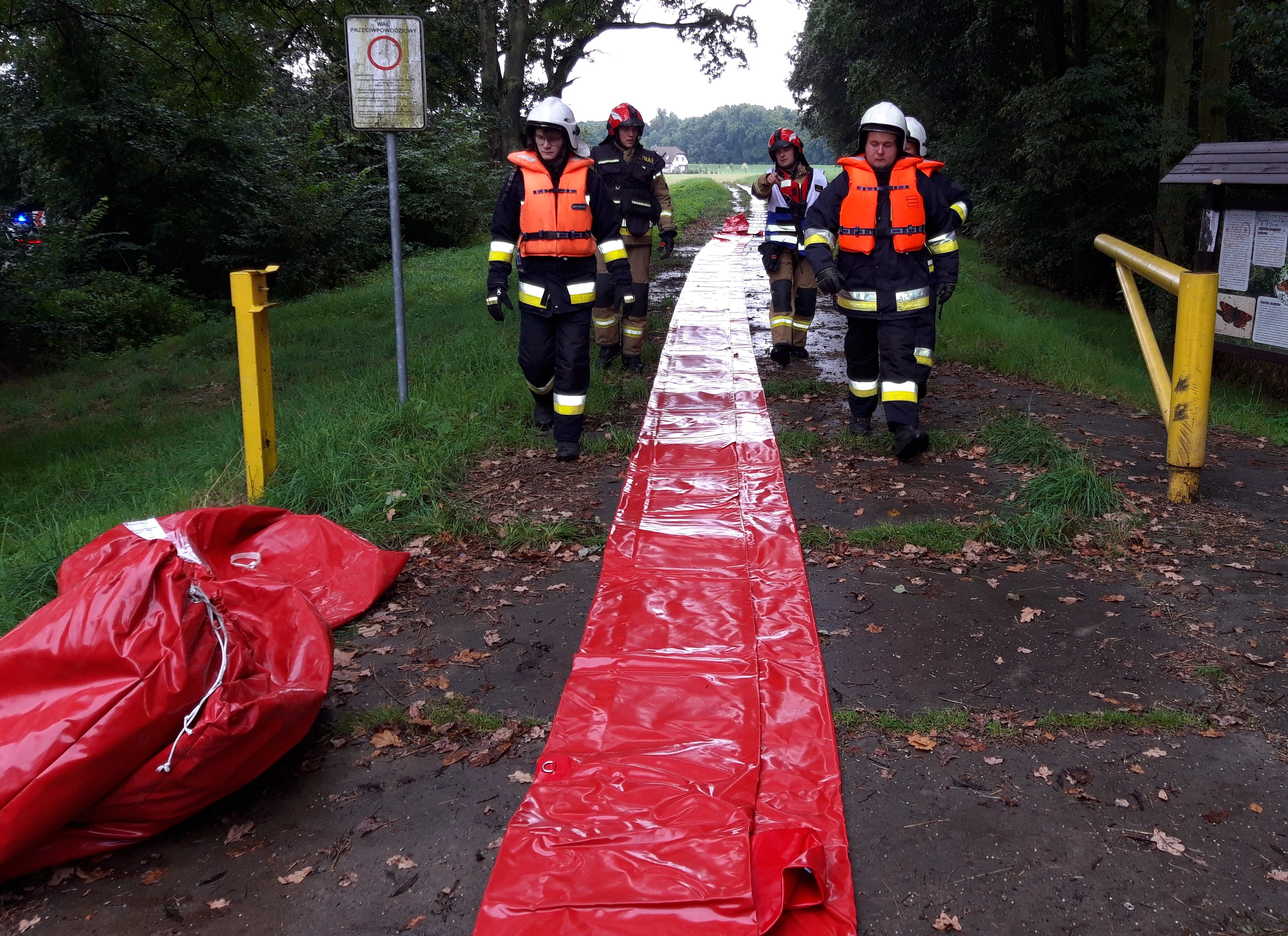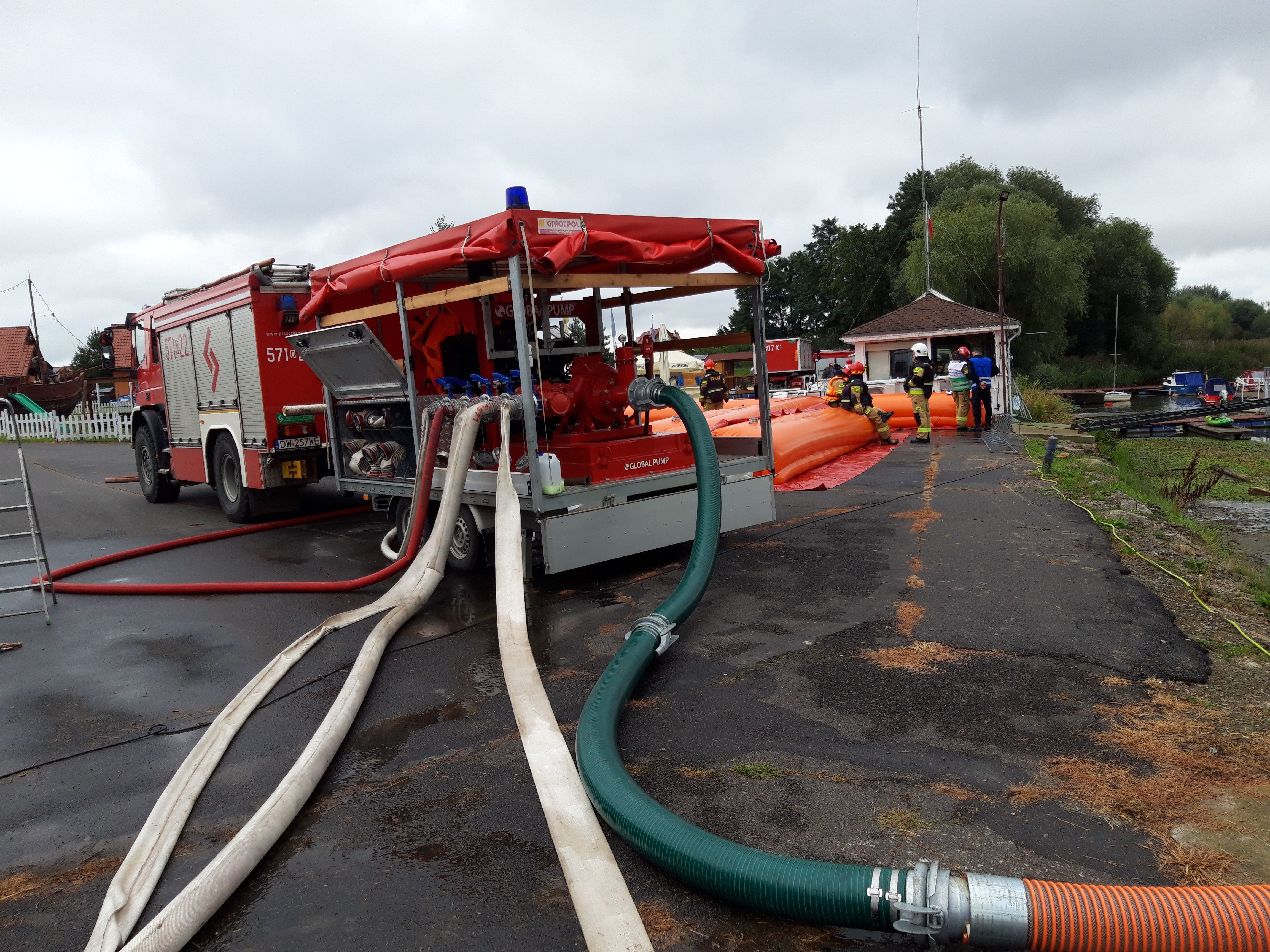 1. W porcie rzecznym w Urazie przepompowywano wodę pompami dużej wydajności oraz sprawiono wypełnione wodą rękawy, służące podniesieniu korony wały powodziowego;