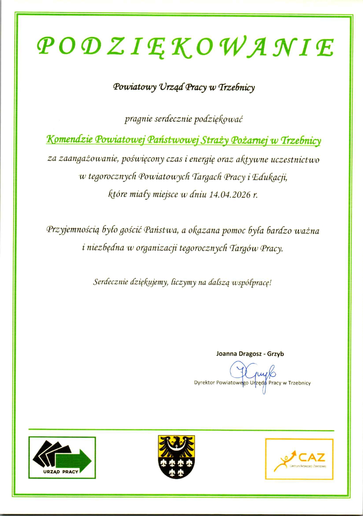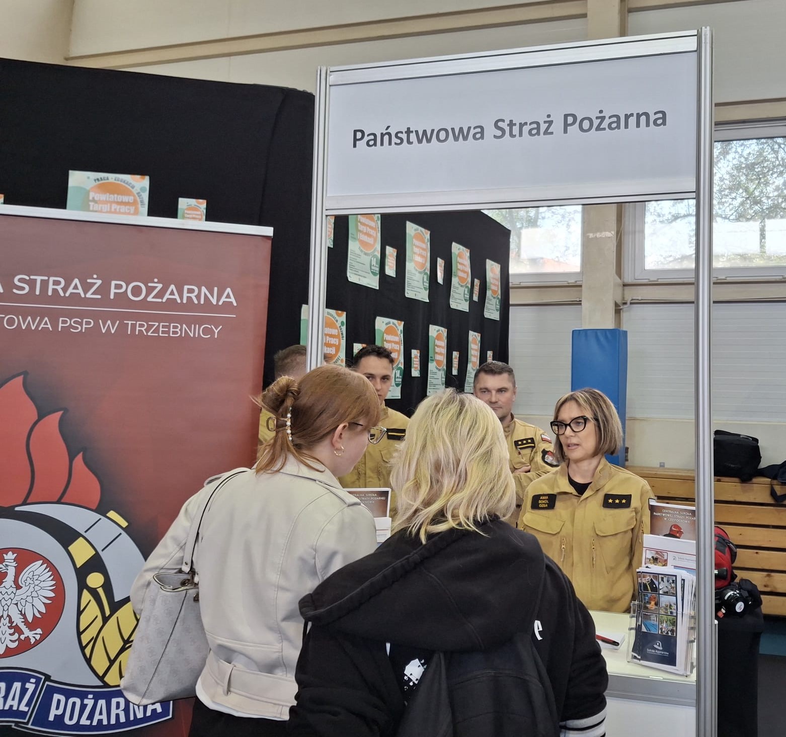 W dniu 14 kwietnia 2026 roku funkcjonariusze KP PSP w Trzebnicy wzięli czynny udział w Powiatowych Targach Pracy i Edukacji odbywających się w Hali Sportowej Młodzieżowego Centrum Sportu i Rekreacji Trzebnica-Zdrój.