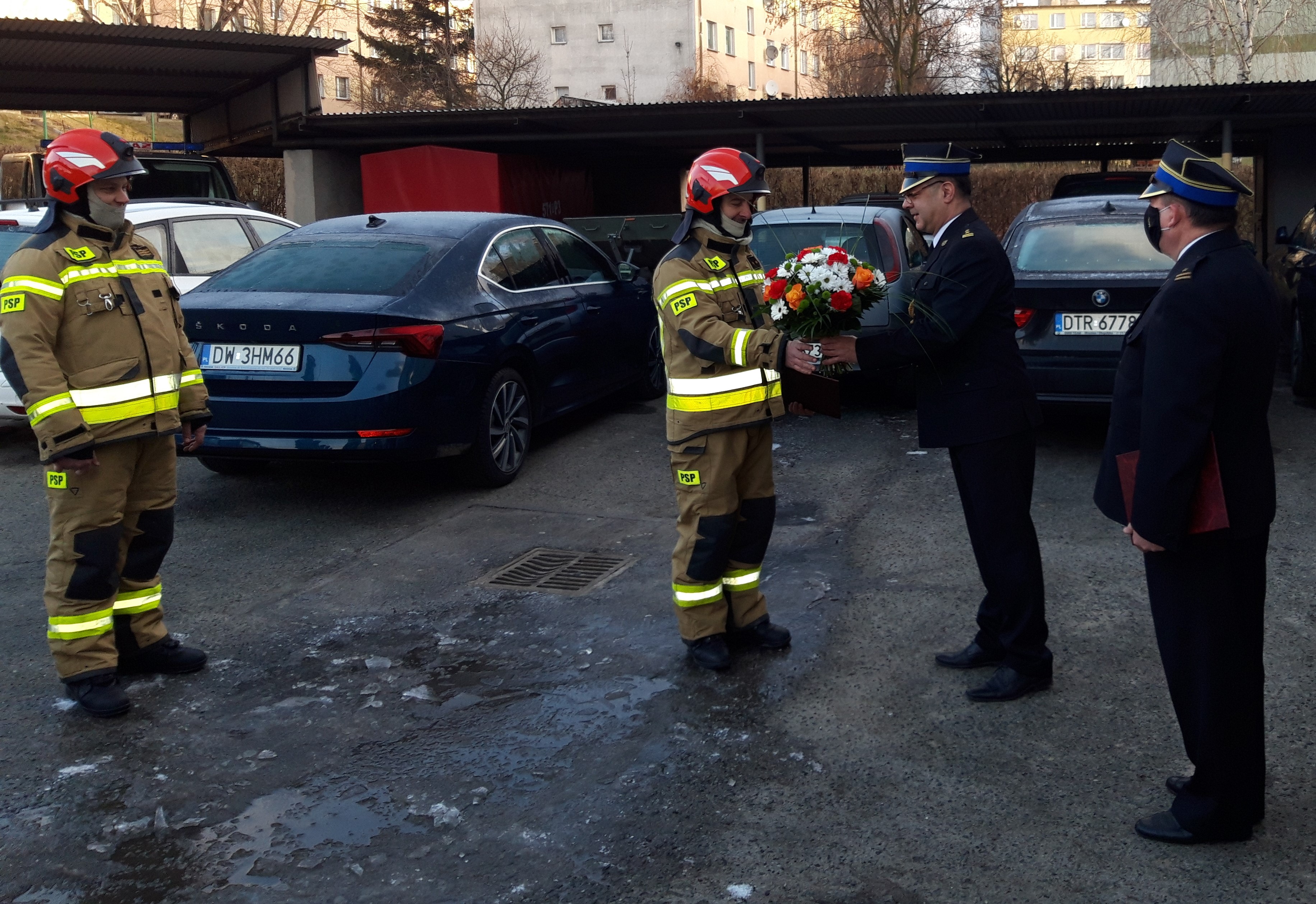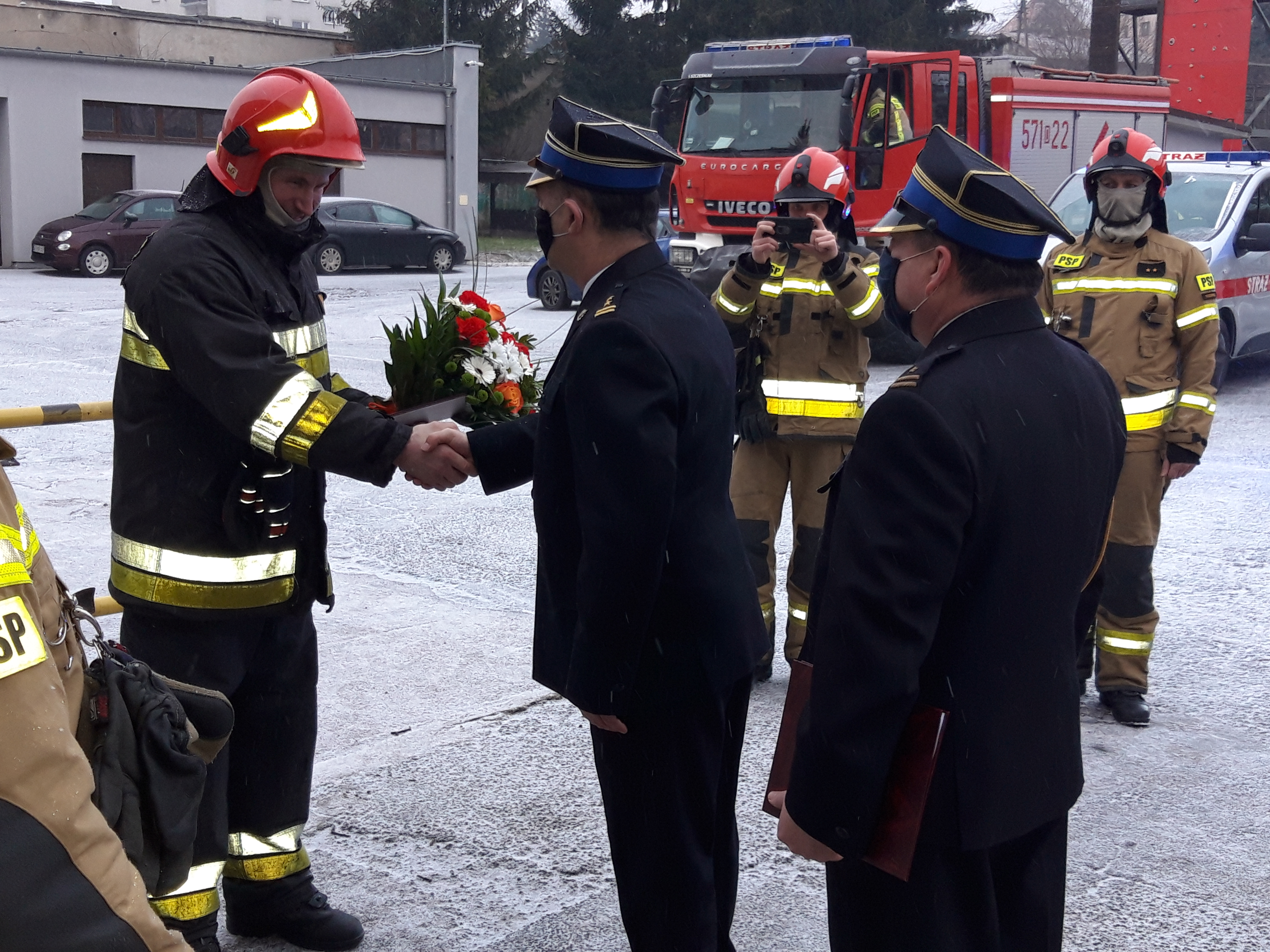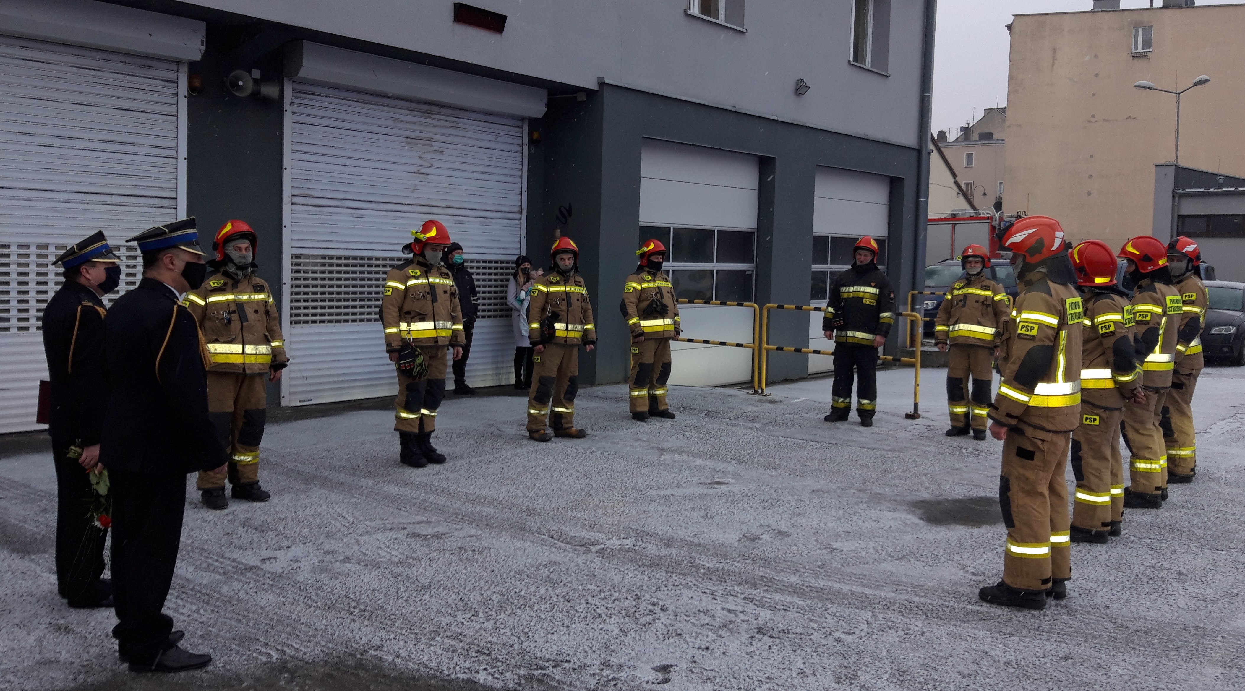 Odchodzących uroczyście pożegnał Komendant Powiatowy PSP w Trzebnicy bryg. mgr inż. Rafał Przybylok w asyście swojego Zastępcy mł. bryg. mgr inż. Konrada Ciska, strażaków i pracowników cywilnych. Padły słowa podziękowania, w których podkreślono ofiarność w czasie licznych działań ratowniczych oraz wkład obu funkcjonariuszy w rozwój i życie KP PSP w Trzebnicy w ciągu ostatnich ponad dwudziestu lat. Wszyscy życzyli powodzenia, realizacji marzeń, podkreślając, że drzwi Komendy pozostają zawsze otwarte