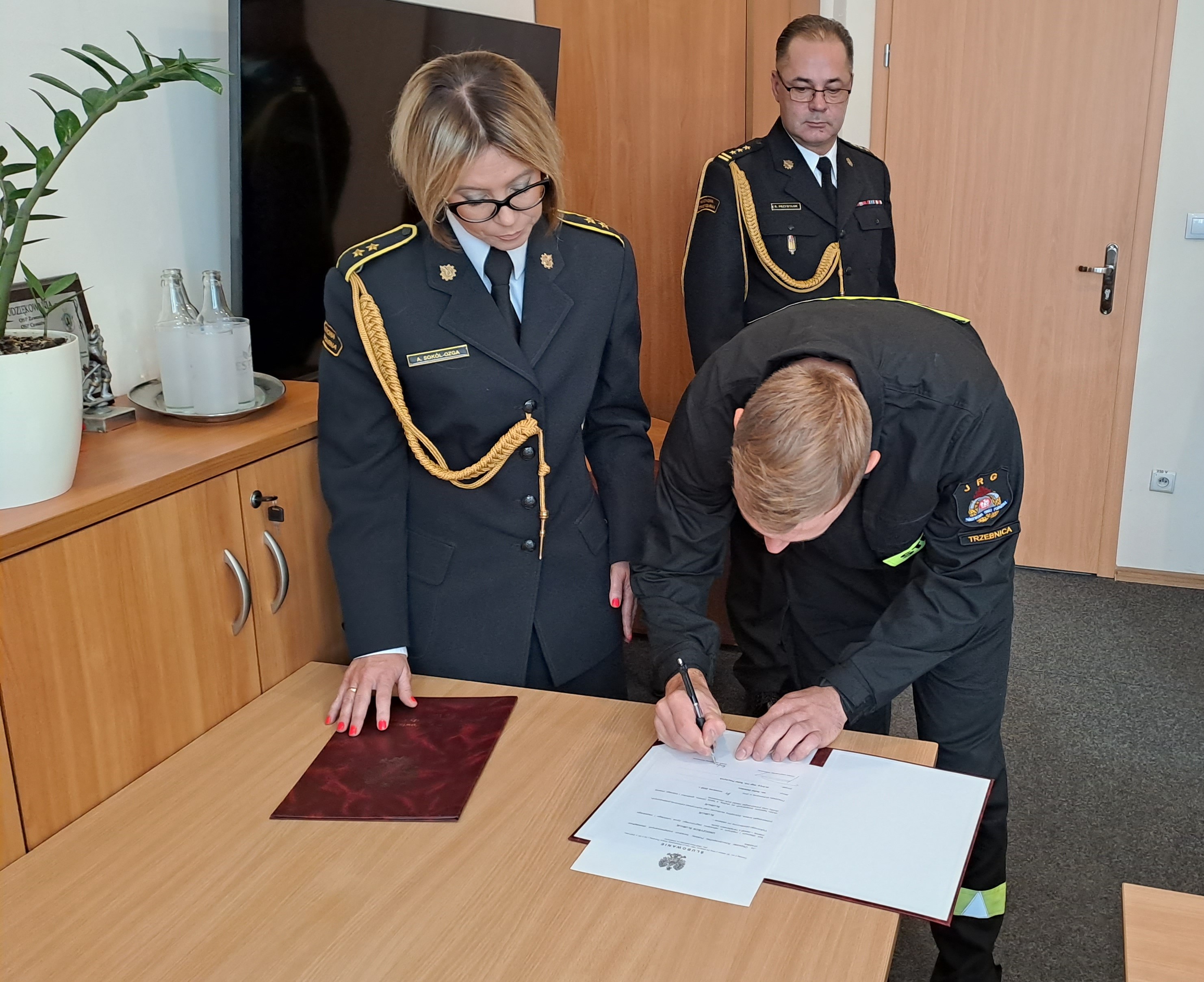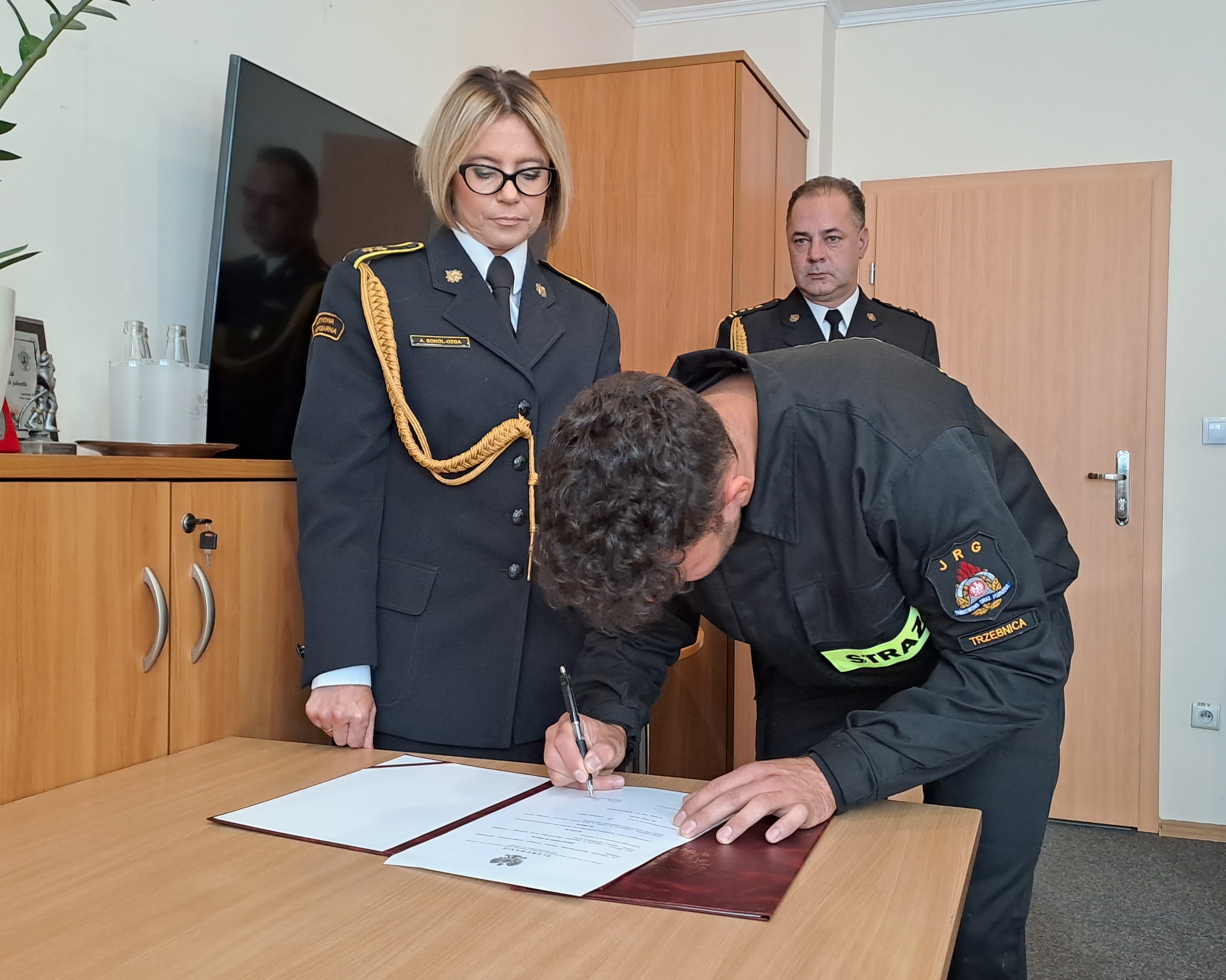 W dniu 14 września 2022 roku w siedzibie KP PSP w Trzebnicy odbyło się uroczyste ślubowanie dwóch strażaków, którzy od lipca bieżącego roku rozpoczęli pracę w KP PSP