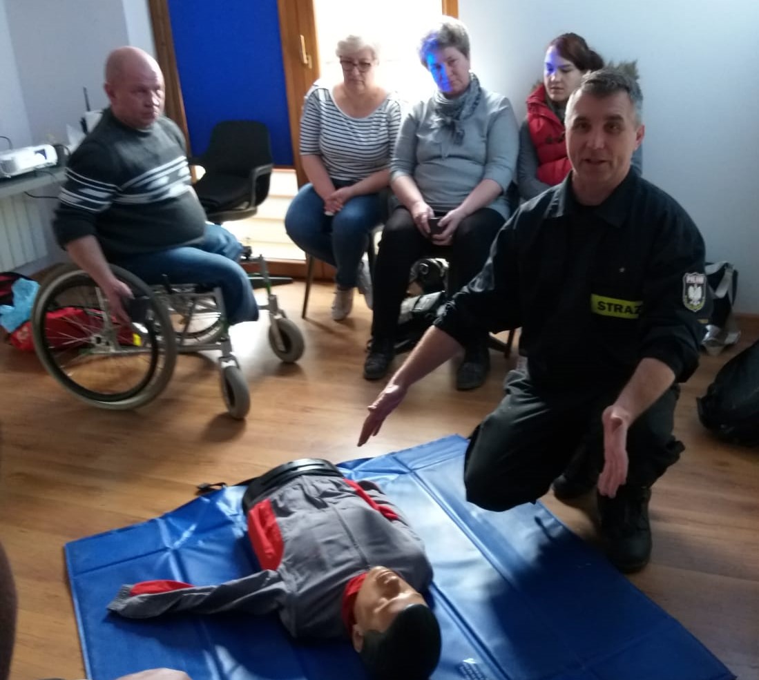 W dniu 29.03.2022 roku członkowie Klubu Integracji Społecznej w Trzebnicy uczestniczyli w praktycznych zajęciach z zakresu pomocy przedmedycznej. Spotkanie zostało zorganizowane przez p. Małgorzatę Wojtkowiak – Jakacką oraz Justynę Koralewską przy wolontariackim wsparciu p. Dariusza Boczara. Do inicjatywy dołączyła Komenda Powiatowa Państwowej Straży Pożarnej w Trzebnicy i warsztaty poprowadził asp. Tomasz Raduchowski.