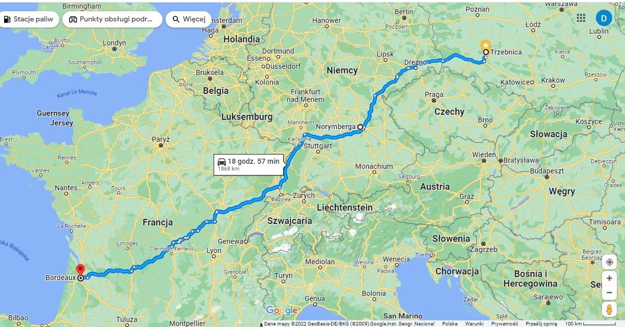 W dniu wczorajszym zgrupowanie 146 strażaków i 49 pojazdów, składające się z dwóch modułów GFFFV Wrocław i Szczecin wyruszyło do Francji, by wesprzeć tamtejszych ratowników walce z pożarami jakie mają miejsce w południowej Francji. W składzie tej ekipy znalazło się również trzech strażaków i GCBA z KP PSP w Trzebnicy. Po noclegu w Akademii Policji w Norymberdze grupa ratowników z Polski wyruszyła rano w stronę Francji. Udają się na miejsce koncentracji, które wyznaczono w pobliżu Bordeaux. Jest to 37 Międzynarodowa Misja Państwowej Straży Pożarnej - na dzień dzisiejszy zaplanowana na 10 dni.