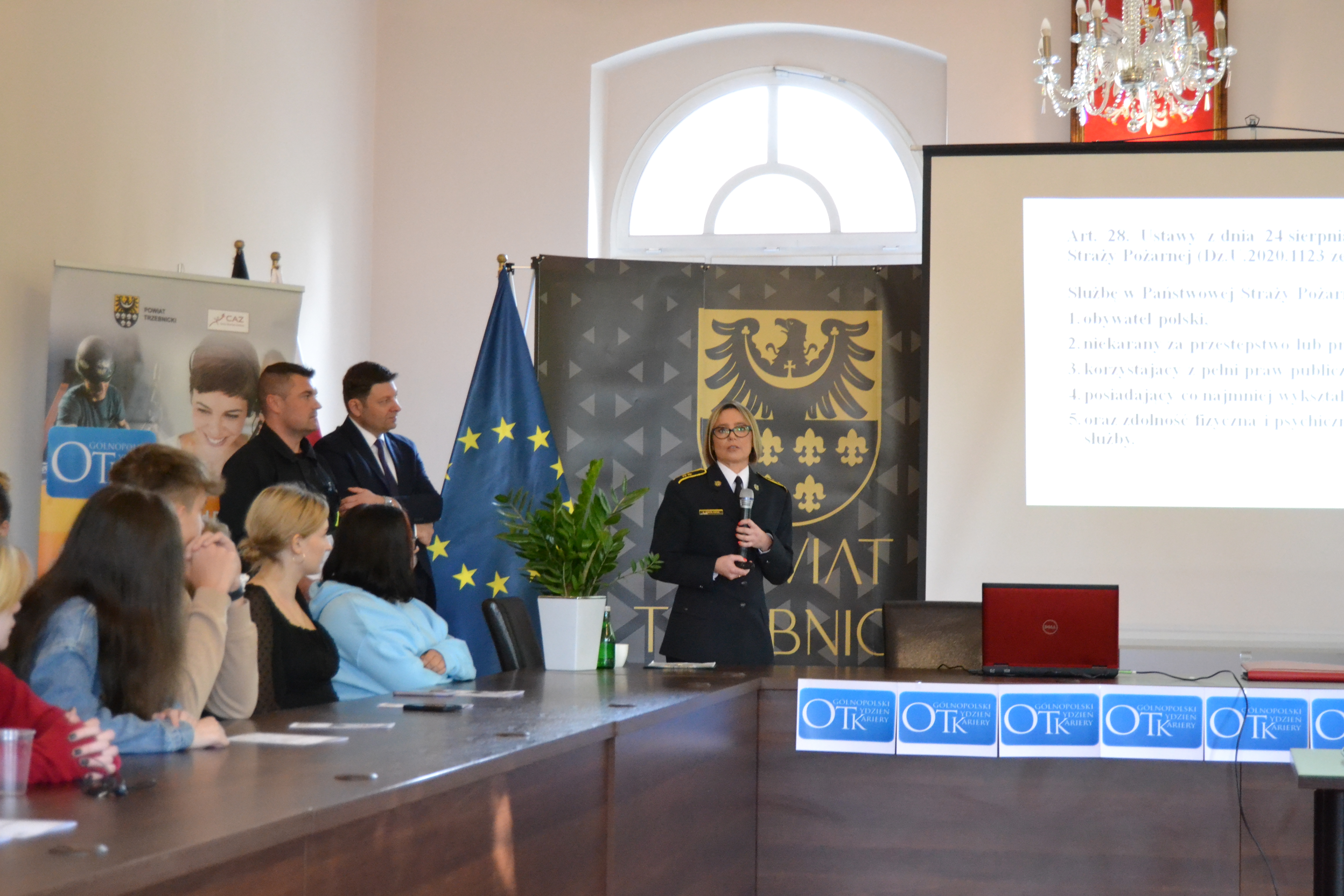 Komenda Powiatowa PSP w Trzebnicy została zaproszona do udziału w przedsięwzięciu. Komendant Powiatowy PSP w Trzebnicy oddelegował do zadania asp. Annę Sokól - Ozga oraz mł. kpt. Łukasza Dziedzińskiego, którzy przedstawili zgromadzonym procedury naboru do służby, możliwości dalszego kształcenia oraz opisali codzienne życie strażaków.