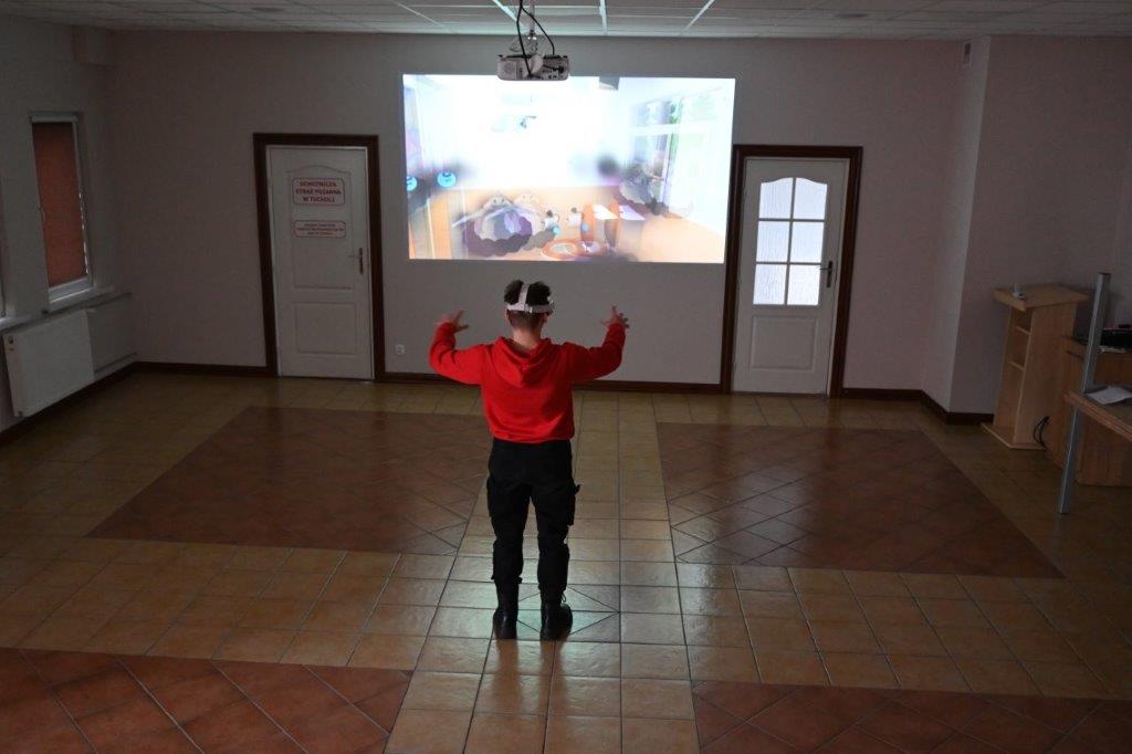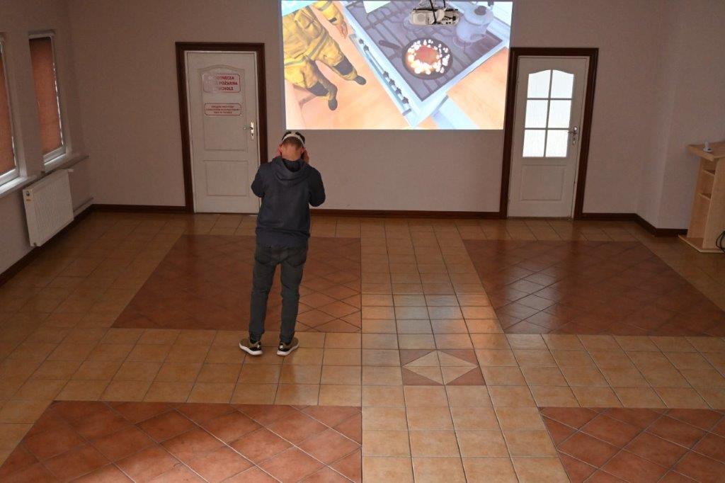 Dużą atrakcją wśród uczniów okazały się być gogle VR. Komenda Powiatowa PSP w Tucholi od niedawna posiada sprzęt pozwalający przenieść się w wirtualną rzeczywistość, a młodzież miała okazję po raz pierwszy przetestować go w naszej komendzie. Tego typu sprzęt pozwala przenieść się w świat gier wideo i materiałów filmowych 3D, a także prezentacji czy testów nowych rozwiązań. VR to skrót od ,,virtual reality” czyli rzeczywistości wirtualnej. Gogle VR pozwalają rozglądać i poruszać się w wirtualnej rzeczywistości w zakresie 360 stopni. W ramach prewencji społecznej nasza komenda wykorzystuje gogle do edukacji dzieci i młodzieży z zakresu ppoż. Prezentowane za pomocą gogli aplikacje składają się z różnych pomieszczeń, w których są przedstawione zagrożenia pożarowe oraz zasady bezpiecznego postępowania. Zadaniem użytkownika jest podjęcie działania prewencyjnego w celu uniknięcia zagrożenia.