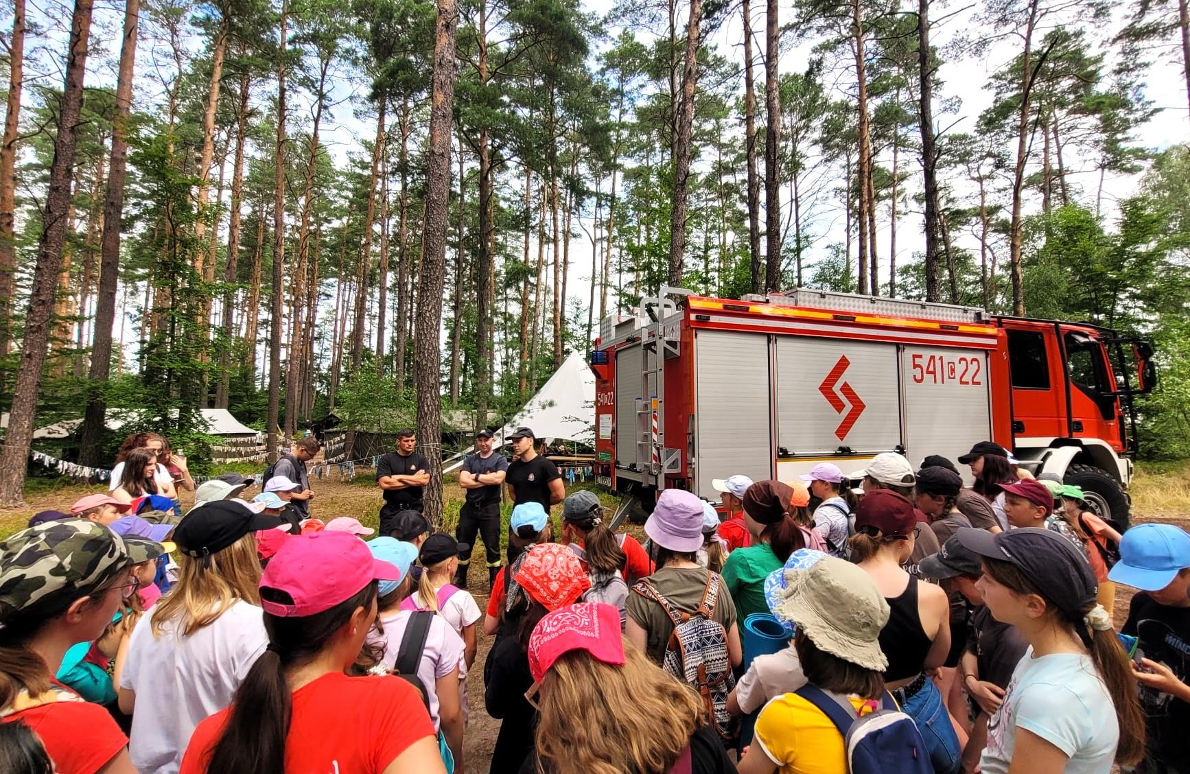 W dniach 08-10.07.2024r. funkcjonariusze z Komendy Powiatowej Państwowej Straży Pożarnej w Tucholi po raz kolejny odwiedzili uczestników obozów harcerskich: w leśnictwie Skrajna, Białej oraz obóz młodzieżowych drużyn pożarniczych w Pile. Zapoznano nowych uczestników z procedurami bezpieczeństwa w tym z zasadami ewakuacji w przypadku zagrożeń atmosferycznych. Pierwszy sprawdzian nabytych umiejętności miał miejsce w dniu 10.07.2024r. po godzinie 17.00. Przez teren powiatu tucholskiego przeszła burza połączona z silnym wiatrem i opadami deszczu. Strażacy interweniowali 47 razy. Dzięki sprawnej komunikacji o zagrożeniach meteorologicznych osoby zarządzające obozami z wyprzedzeniem zarządziły ewakuacje do miejsc bezpiecznego schronienia wszystkich uczestników obozów. Łącznie ewakuowano 305 harcerzy oraz 104 członków młodzieżowych drużyn pożarniczych. Komendanci obozów pozostają w stałym kontakcie ze służbami, dzięki czemu dzieci mogą kontynuować letni wypoczynek na terenie Borów Tucholskich.