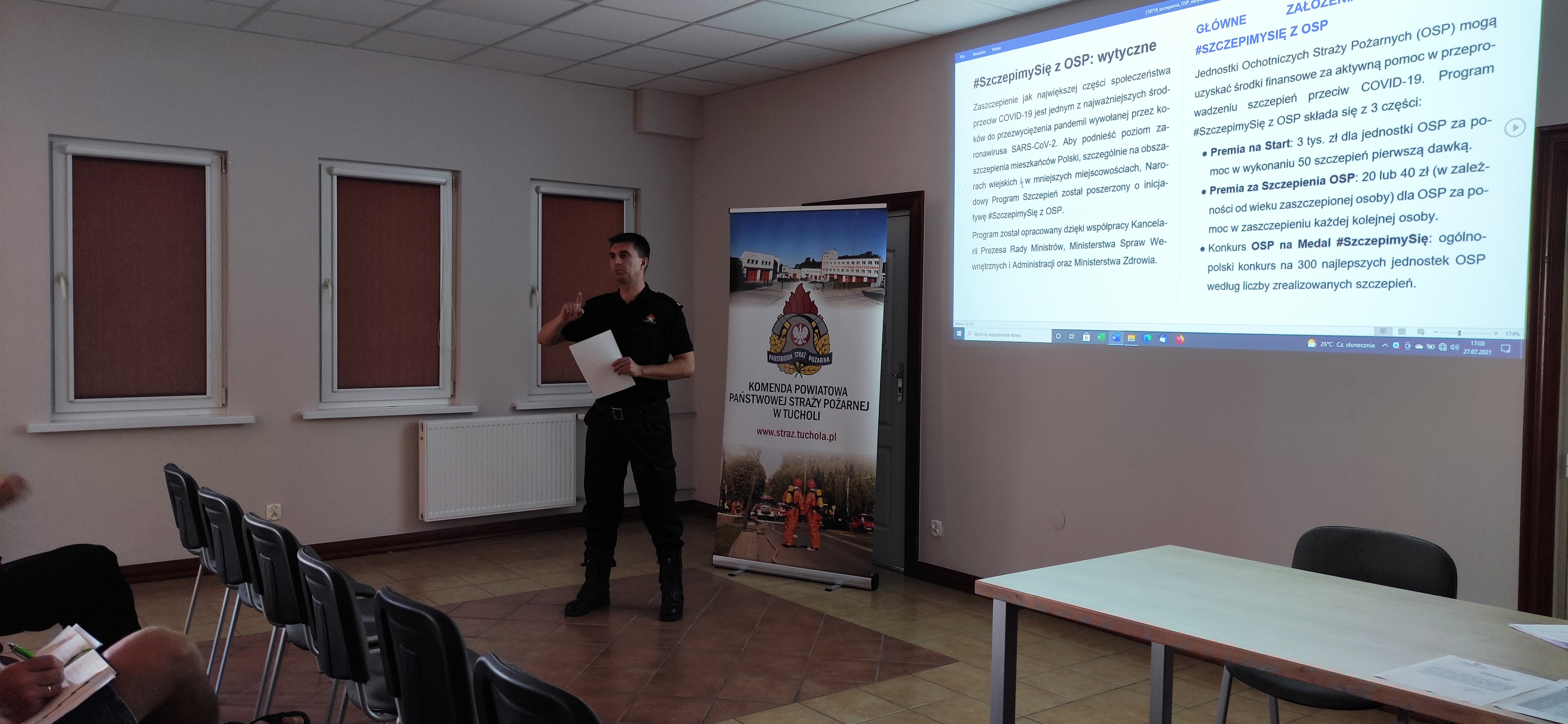 We wtorek 27 lipca 2021 r. w Komendzie Powiatowej PSP w Tucholi odbyło się spotkanie z przedstawicielami jednostek OSP poświęcone realizacji programu #SzczepimySię z OSP. Na spotkanie zaproszeni zostali druhowie ze wszystkich jednostek OSP z powiatu tucholskiego.