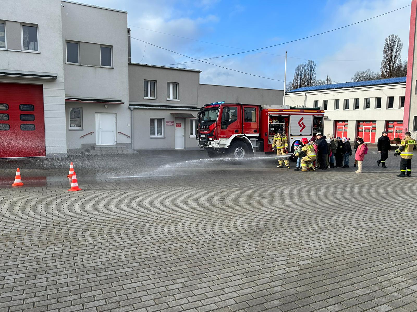 W ramach akcji #BezpieczneFerie 2024 w dniu 13 lutego 2024 roku naszą komendę odwiedziła pierwsza grupa dzieci. Funkcjonariusze zaprezentowali wozy i sprzęt strażacki, pokazali jak wygląda strażackie umundurowanie oraz opowiedzieli o specyfice służby strażaka. Dzieciom zostały udzielone również praktyczne porady jak unikać niebezpiecznych sytuacji i w jaki sposób postępować w sytuacji kryzysowej. Strażacy tucholskiej komendy zapewnili gościom trochę atrakcji, a największą z nich okazało się lanie wody z węża strażackiego.