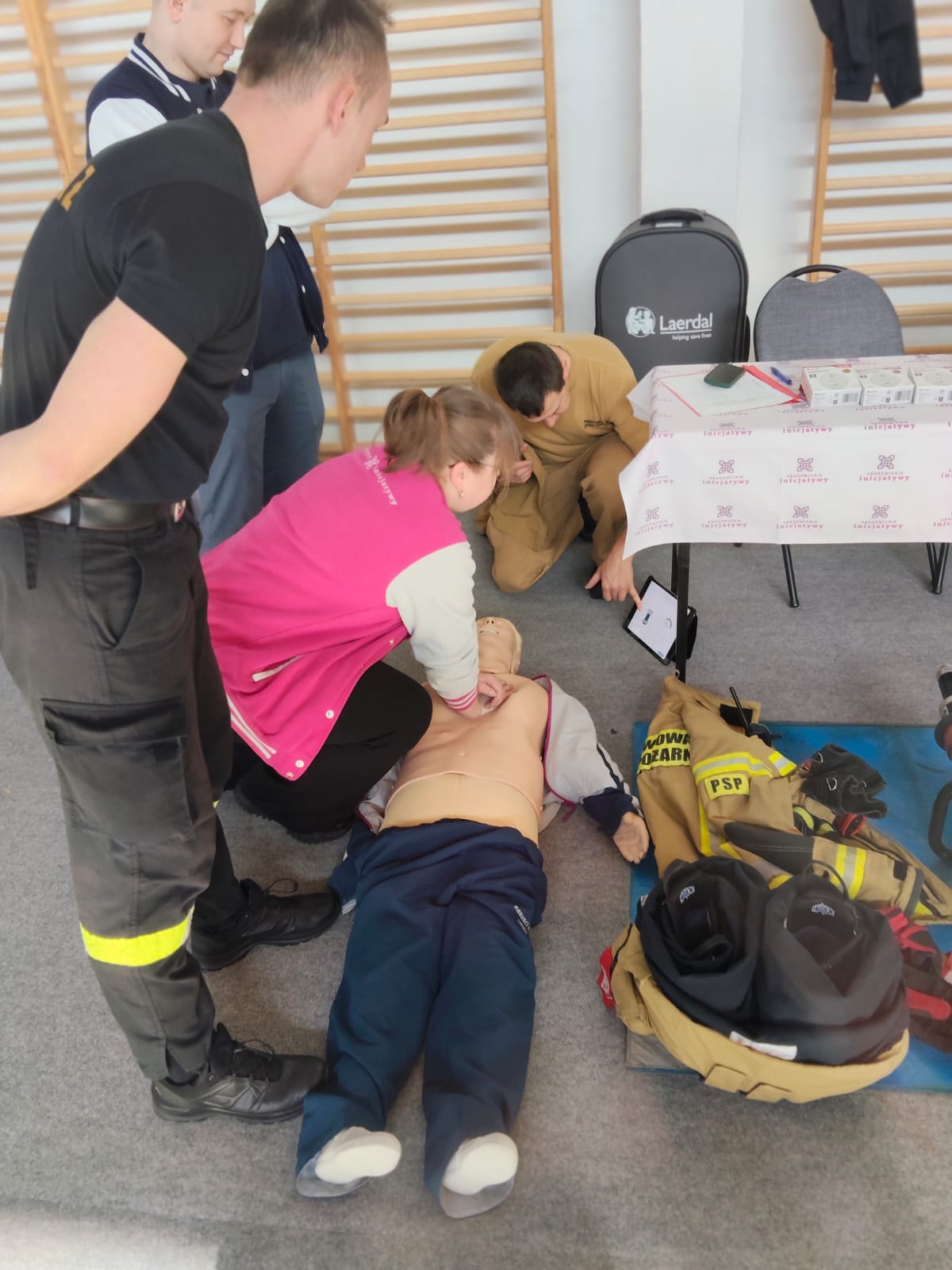 Na stoisku edukacyjnym przygotowanym przez Komendę Powiatową Państwowej Straży Pożarnej w Turku zaprezentowano niezwykle ciekawą i bogatą ofertę edukacyjną dla młodzieży. Funkcjonariusze z Jednostki Ratowniczo-Gaśniczej w Turku odpowiadając na pytania dotyczące naboru oraz warunków przyjęcia do szkół pożarniczych, zachęcali młodzież do wybrania zawodu strażaka. W trakcie trwania targów można było obejrzeć sprzęt używany podczas działań ratowniczych, w tym sprzęt do udzielania kwalifikowanej pierwszej pomocy. Ponadto strażacy tureckiej Komendy Powiatowej PSP, realizując działania prewencji społecznej zainicjowane przez Ministerstwo Spraw Wewnętrznych i Administracji oraz Komendę Główną PSP, przekazali w ramach Targów Pracy czujki dymu zakupione w ramach programu Ochrony Ludności i Obrony Cywilnej jako niezbędny element bezpieczeństwa, tak istotnego w budynkach mieszkalnych lokalnej społeczności.