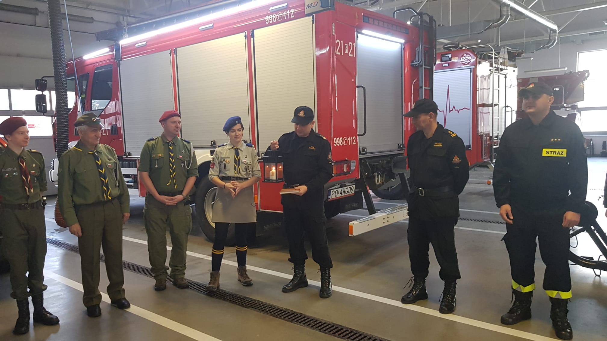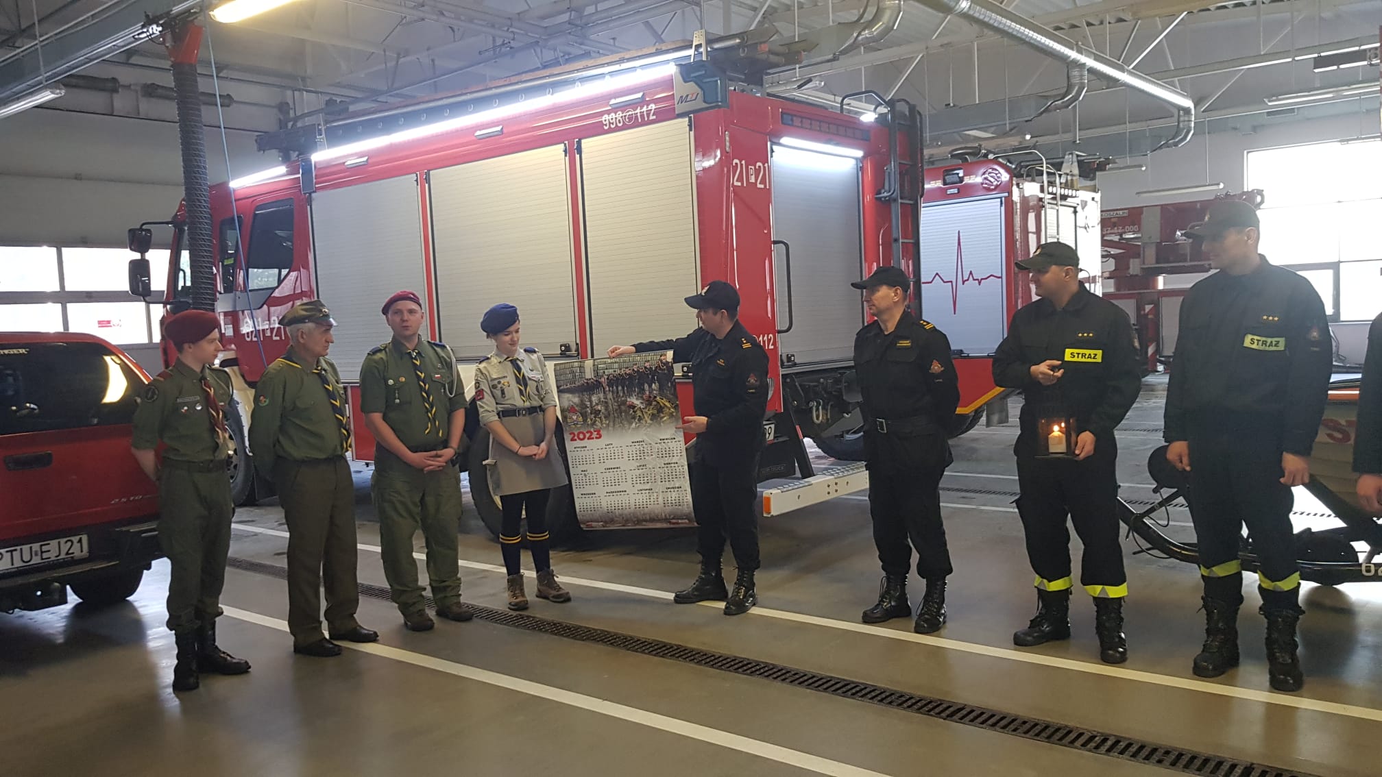 Harcerze z Hufca ZHP w Turku odwiedzili w dniu 20.12.2022 r. Komendę Powiatową Państwowej Straży Pożarnej w Turku, aby przekazać strażakom i pracownikom Komendy Betlejemskie Światło Pokoju, którego hasło towarzyszące w 2022 r. brzmi „ŚWIATŁO NADZIEI”. To właśnie dzięki harcerzom Światło dociera do naszego kraju, do różnych instytucji i domostw. W imieniu wszystkich strażaków Komendantowi Hufca Robertowi Chmielewskiemu podziękowania złożył Komendant Powiatowy PSP w Turku bryg. Piotr Pietrucha w asyście zastępcy Komendanta Powiatowego PSP w Turku bryg. Arkadiusza Janaszkiewicza. W uroczystym przekazaniu uczestniczyła zmiana służbowa Jednostki Ratowniczo-Gaśniczej w Turku.
