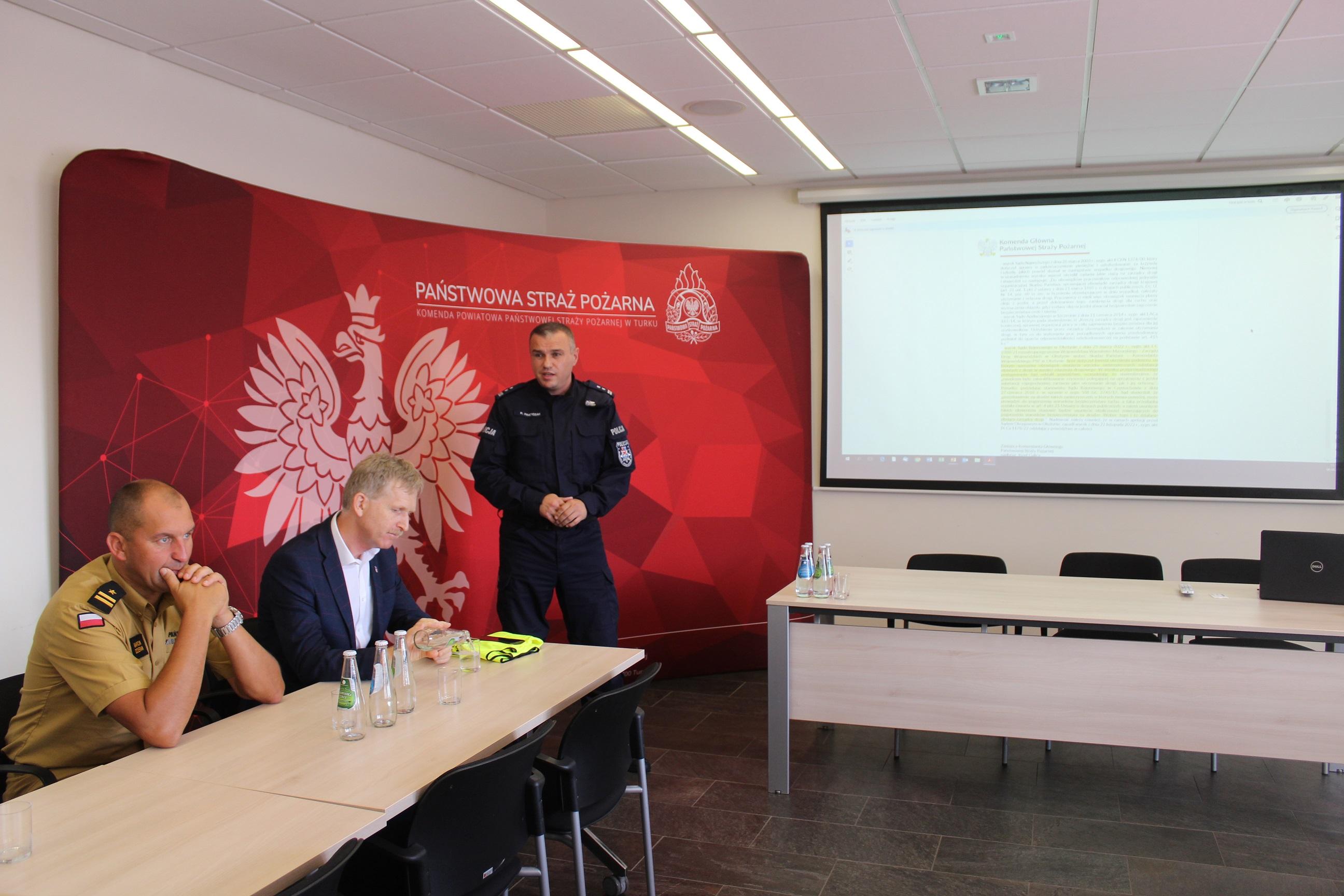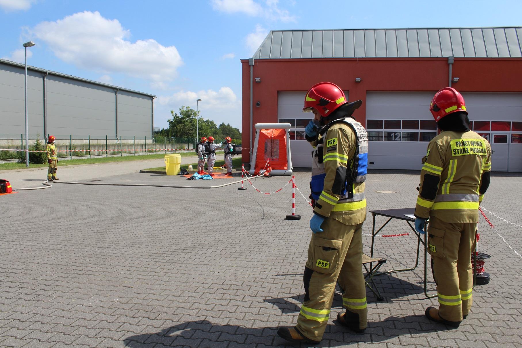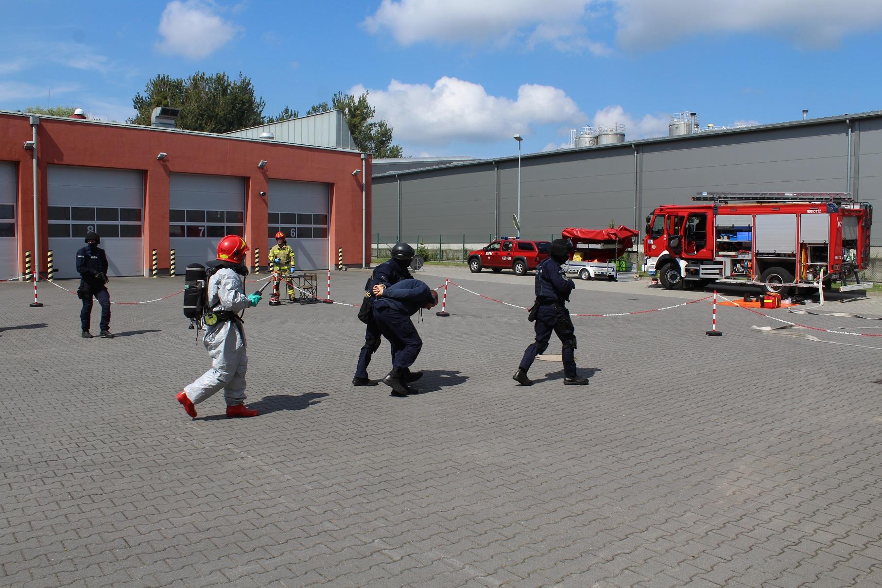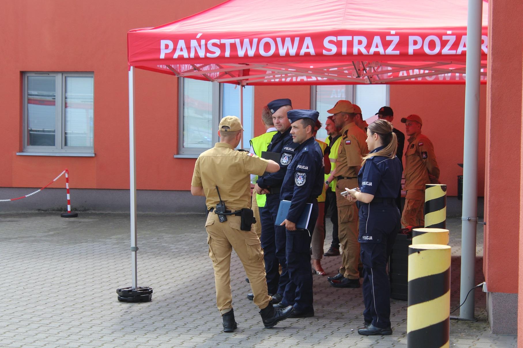 W dniu 8 sierpnia 2024 roku w siedzibie Komendy Powiatowej PSP w Turku odbyły się ćwiczenia sztabowo-praktyczne Państwowej Straży Pożarnej oraz Policji dot. współdziałania służb na miejscu zdarzeń o charakterze CBRN-E. Zagrożenia w zakresie CBRN-E (tzw. czynników chemicznych, biologicznych, radiologicznych, nuklearnych i materiałów wybuchowych) wymagają specjalistycznego podejścia ze strony służb, dlatego niezbędne jest przeprowadzanie systematycznych szkoleń i doskonalenie wzajemnej współpracy służb przewidzianych do likwidacji ww. zagrożeń. Celem ćwiczeń było zwiększenie zdolności służb do skutecznego i efektywnego reagowania na ataki terrorystyczne i zagrożenia CBRN-E. Ćwiczenia zostały zrealizowane według scenariusza zakładającego wystąpienie niezidentyfikowanej paczki w obiekcie użyteczności publicznej, która stanowi zagrożenie dla użytkowników budynku. Sprawdzono umiejętności służb w zakresie prawidłowego reagowania oraz rozpoznania zaistniałych zagrożeń, jak również ewakuacji osób. W trakcie ćwiczeń funkcjonariusze Policji oraz Państwowej Straży Pożarnej zostali poddani dekontaminacji wstępnej zgodnie z zasadami postępowania w przypadku wystąpienia ekspozycji na zagrożenia z grupy CBRN-E. Strażacy JRG Turek przeprowadzili instruktaż w zakresie odpowiedniego użytkowania ubrań typu TYCHEM chroniących przed szeroką gamą substancji niebezpiecznych i czynników wchodzących w skład grupy zagrożeń CBRN-E. Przeprowadzone ćwiczenia pozwoliły na usystematyzowanie zakresu zadań, jakie stoją przed każdą z instytucji, która bierze udział w działaniach związanych z wystąpieniem zagrożenia od niezidentyfikowanej paczki. W ćwiczenia zaangażowane były następujące służby i instytucje: Wydział Prewencji KPP Turek , Nieetatowa Grupa Realizacyjna KPP Turek, Przedstawiciele Powiatowego Centrum Zarządzania Kryzysowego w Turku wraz z v-ce Starostą Powiatu Tureckiego.