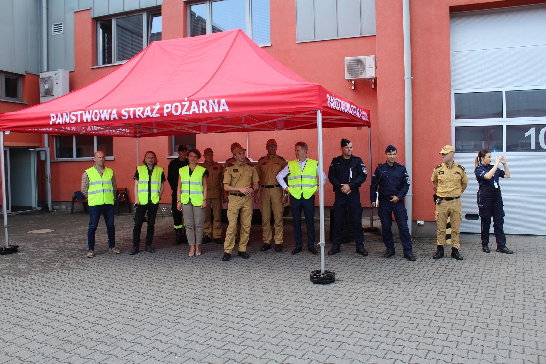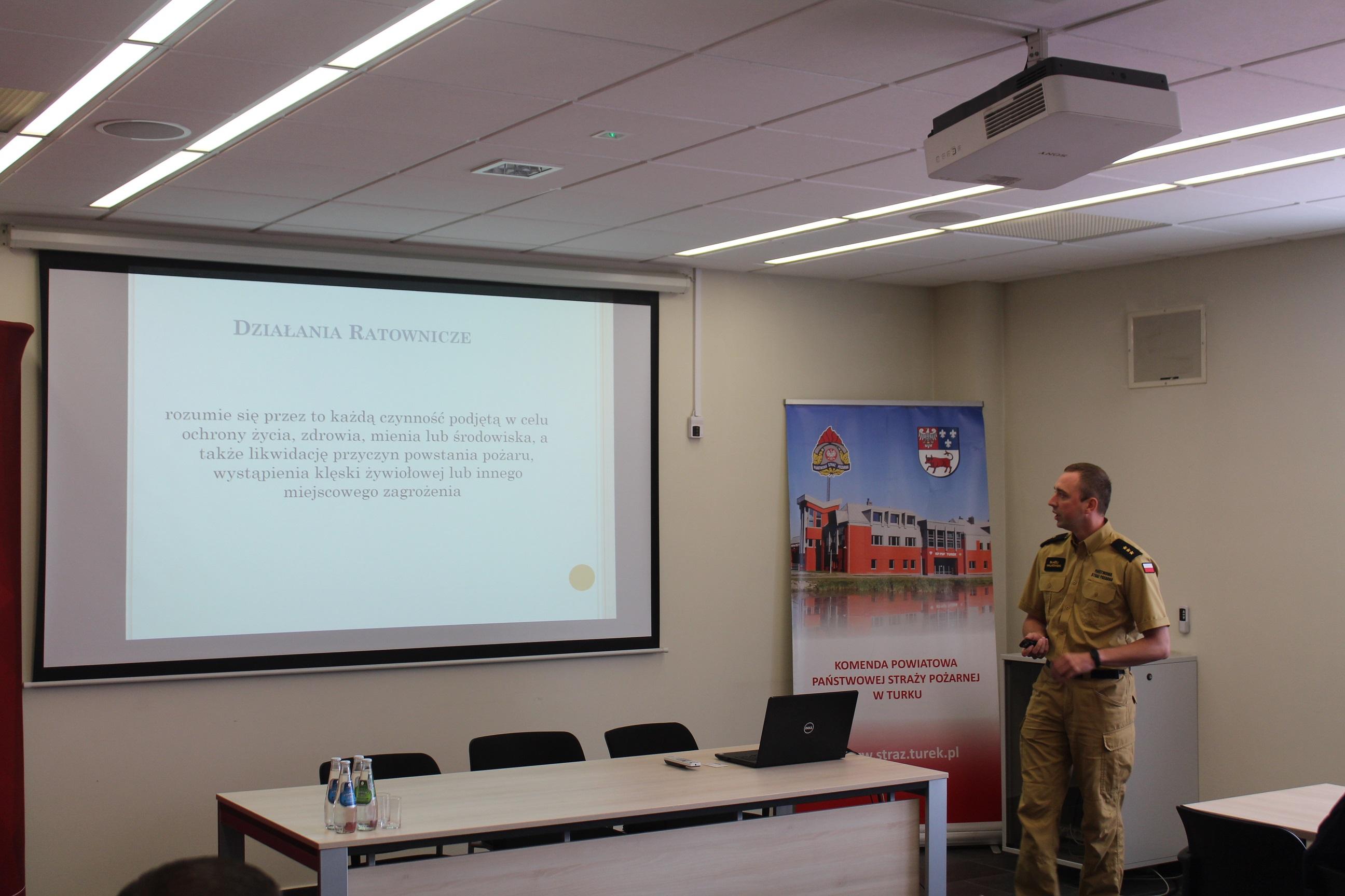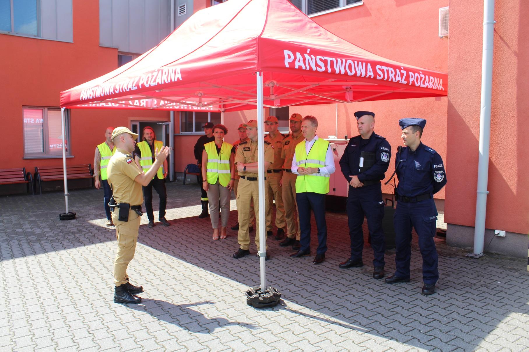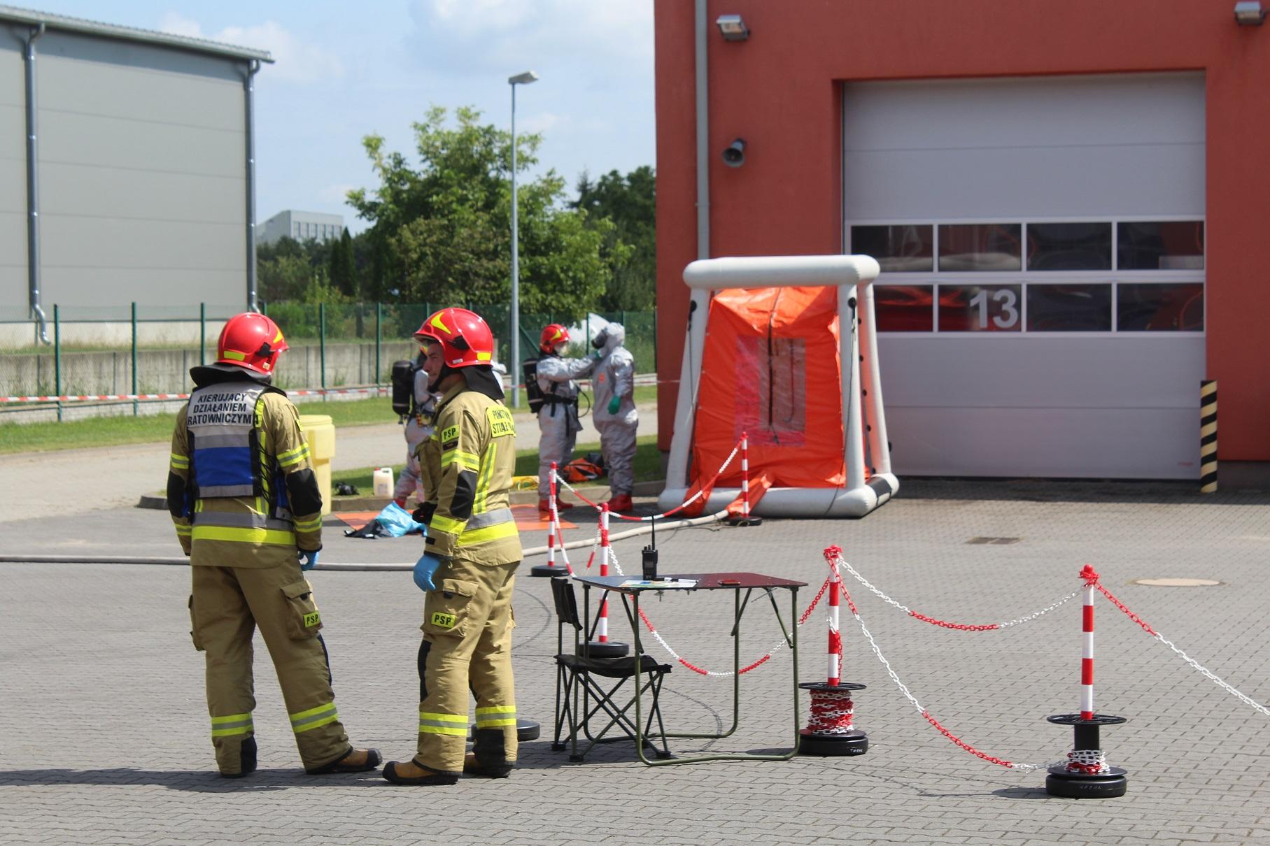 W dniu 8 sierpnia 2024 roku w siedzibie Komendy Powiatowej PSP w Turku odbyły się ćwiczenia sztabowo-praktyczne Państwowej Straży Pożarnej oraz Policji dot. współdziałania służb na miejscu zdarzeń o charakterze CBRN-E. Zagrożenia w zakresie CBRN-E (tzw. czynników chemicznych, biologicznych, radiologicznych, nuklearnych i materiałów wybuchowych) wymagają specjalistycznego podejścia ze strony służb, dlatego niezbędne jest przeprowadzanie systematycznych szkoleń i doskonalenie wzajemnej współpracy służb przewidzianych do likwidacji ww. zagrożeń. Celem ćwiczeń było zwiększenie zdolności służb do skutecznego i efektywnego reagowania na ataki terrorystyczne i zagrożenia CBRN-E. Ćwiczenia zostały zrealizowane według scenariusza zakładającego wystąpienie niezidentyfikowanej paczki w obiekcie użyteczności publicznej, która stanowi zagrożenie dla użytkowników budynku. Sprawdzono umiejętności służb w zakresie prawidłowego reagowania oraz rozpoznania zaistniałych zagrożeń, jak również ewakuacji osób. W trakcie ćwiczeń funkcjonariusze Policji oraz Państwowej Straży Pożarnej zostali poddani dekontaminacji wstępnej zgodnie z zasadami postępowania w przypadku wystąpienia ekspozycji na zagrożenia z grupy CBRN-E. Strażacy JRG Turek przeprowadzili instruktaż w zakresie odpowiedniego użytkowania ubrań typu TYCHEM chroniących przed szeroką gamą substancji niebezpiecznych i czynników wchodzących w skład grupy zagrożeń CBRN-E. Przeprowadzone ćwiczenia pozwoliły na usystematyzowanie zakresu zadań, jakie stoją przed każdą z instytucji, która bierze udział w działaniach związanych z wystąpieniem zagrożenia od niezidentyfikowanej paczki. W ćwiczenia zaangażowane były następujące służby i instytucje: Wydział Prewencji KPP Turek , Nieetatowa Grupa Realizacyjna KPP Turek, Przedstawiciele Powiatowego Centrum Zarządzania Kryzysowego w Turku wraz z v-ce Starostą Powiatu Tureckiego.