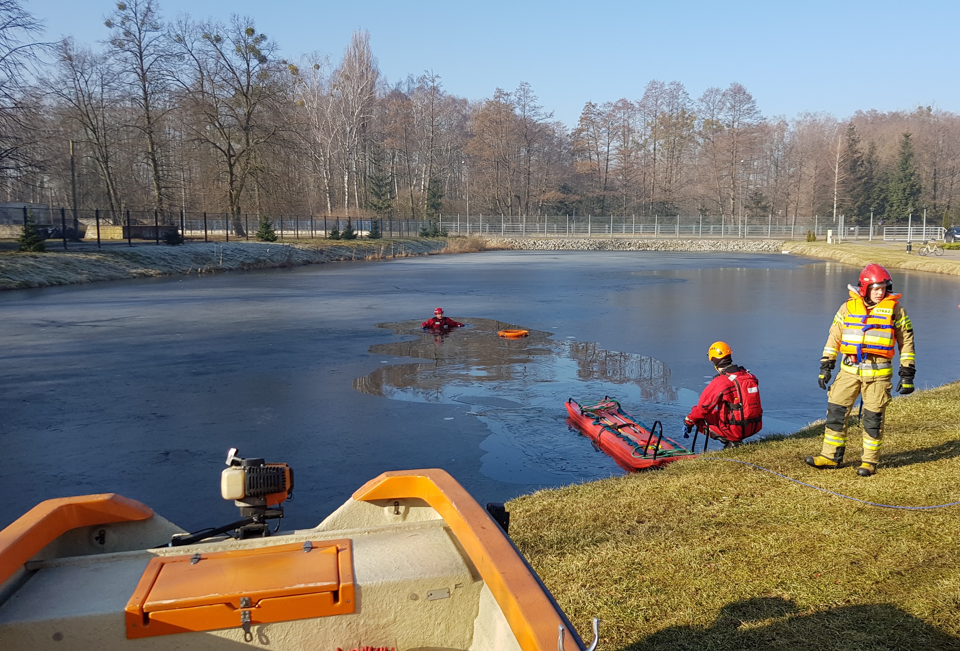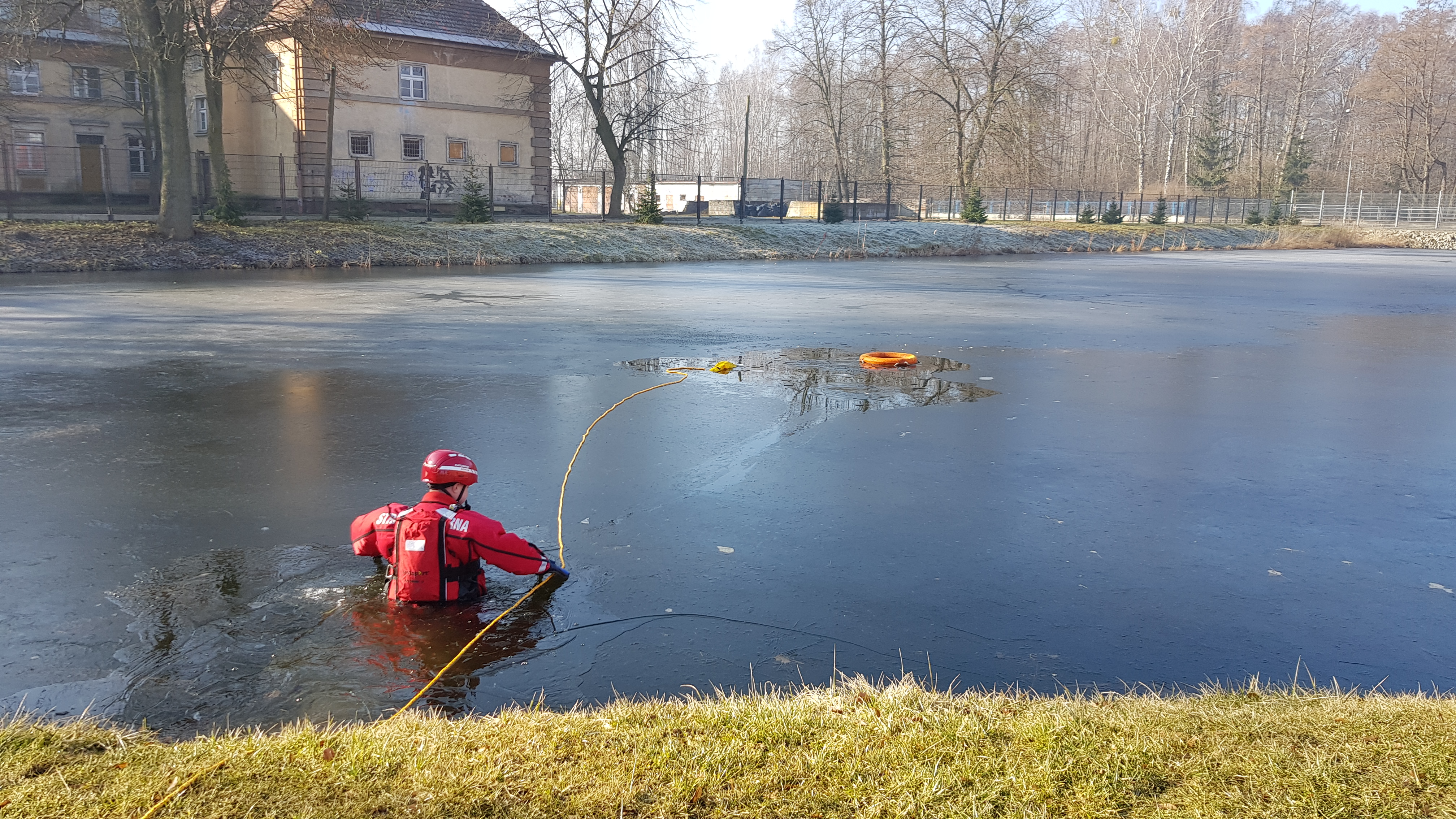 W dniach 2-3 marca br. funkcjonariusze Jednostki Ratowniczo-Gaśniczej w Turku w ramach doskonalenia zawodowego przeprowadzili ćwiczenia na osadniku wodnym zlokalizowanym na terenie Komendy Powiatowej PSP w Turku. Strażacy wyposażeni w sprzęt do ratownictwa wodno-lodowego na poziomie podstawowym doskonalili techniki podejmowania osób z wody - przerębla, pod którymi załamał się kruchy lód. To właśnie takie warunki, gdzie lód jest kruchy i nie można się po nim poruszać, nawet za pomocą sań wodno - lodowych odzwierciedlają realne sytuacje, w których najczęściej dochodzi do wypadków. Choć zima nieuchronnie zbliża się do końca, to wciąż mogą pojawić jeszcze ujemne temperatury powietrza, a miejscami może zalegać coraz cieńsza pokrywa lodowa. W przypadku, gdy pod kimś załamie się lód, strażacy zalecają natychmiast zaalarmować służby ratownicze. Potem ewentualnie można z brzegu starać się pomóc poszkodowanym, podając coś, czego mogą się uchwycić. – Jeśli jednak tonący jest dalej, nie podejmujmy się samodzielnego ratowania, bo sami możemy się znaleźć w niebezpiecznej sytuacji.