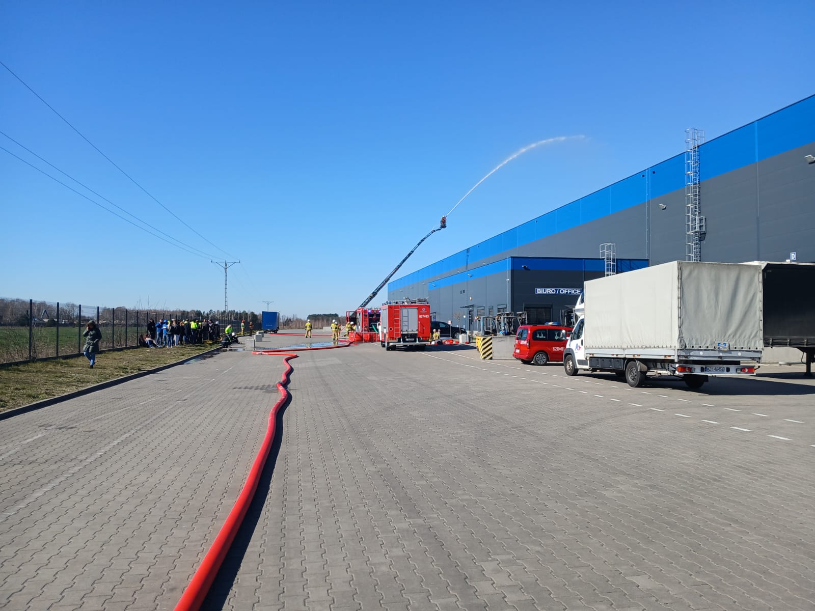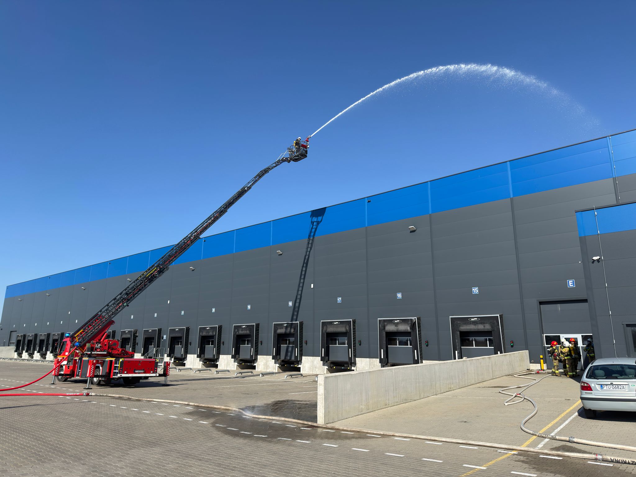 Podczas ćwiczeń sprawdzono różne sposoby dostarczania wody do zewnętrznego gaszenia pożaru: