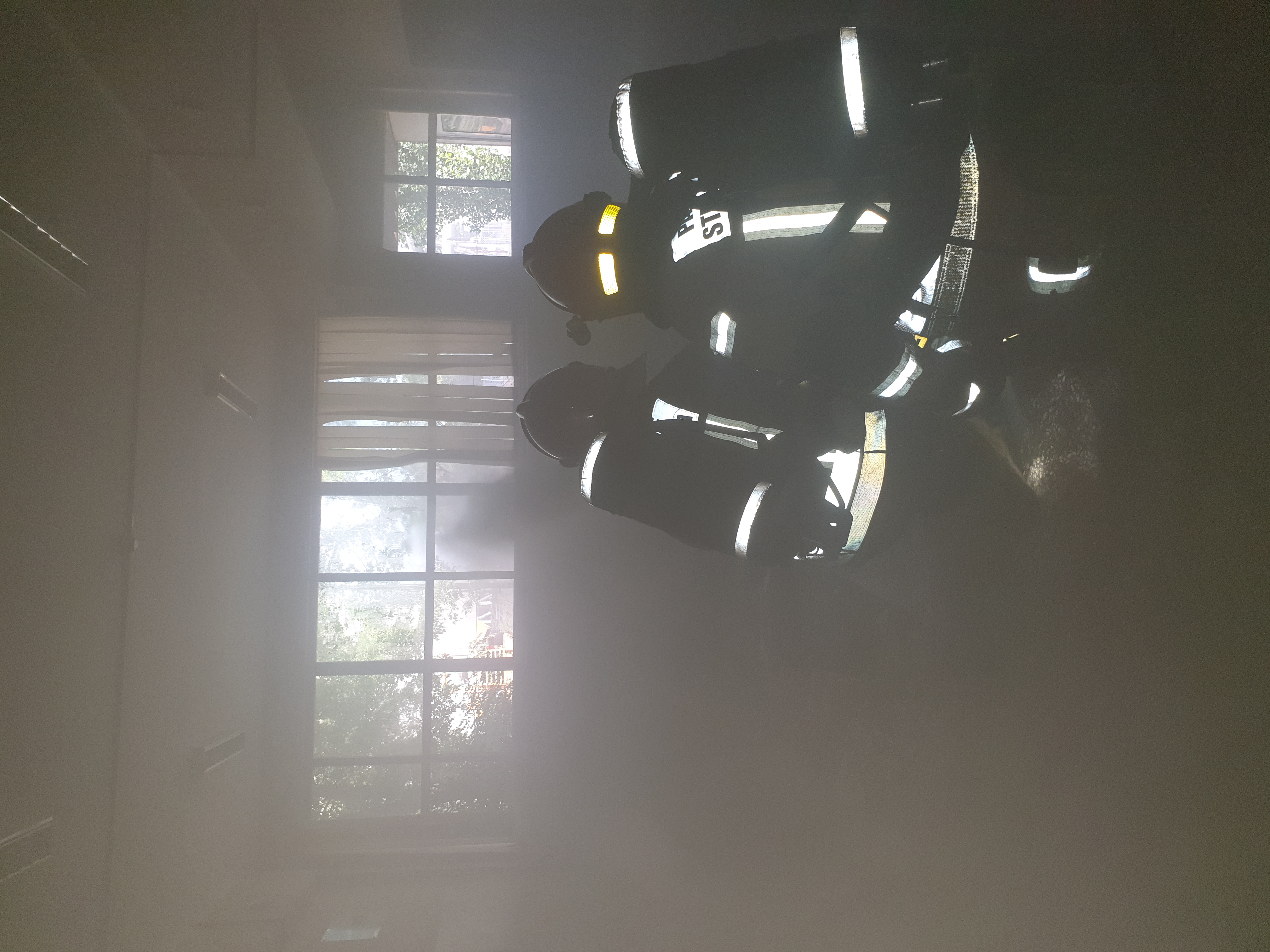 Ostatnim punktem szkolenia było przeprowadzenie skutecznej wentylacji nadciśnieniowej przy użyciu turbowentylatorów, oraz prawidłowy sposób zdejmowania się ubrań po wyjściu ze strefy zadymienia. Ratownicy wchodzili w pełnym umundurowaniu bojowym z zachowaniem warunków BHP do pomieszczeń w których odbywało się tzw. "palenie".